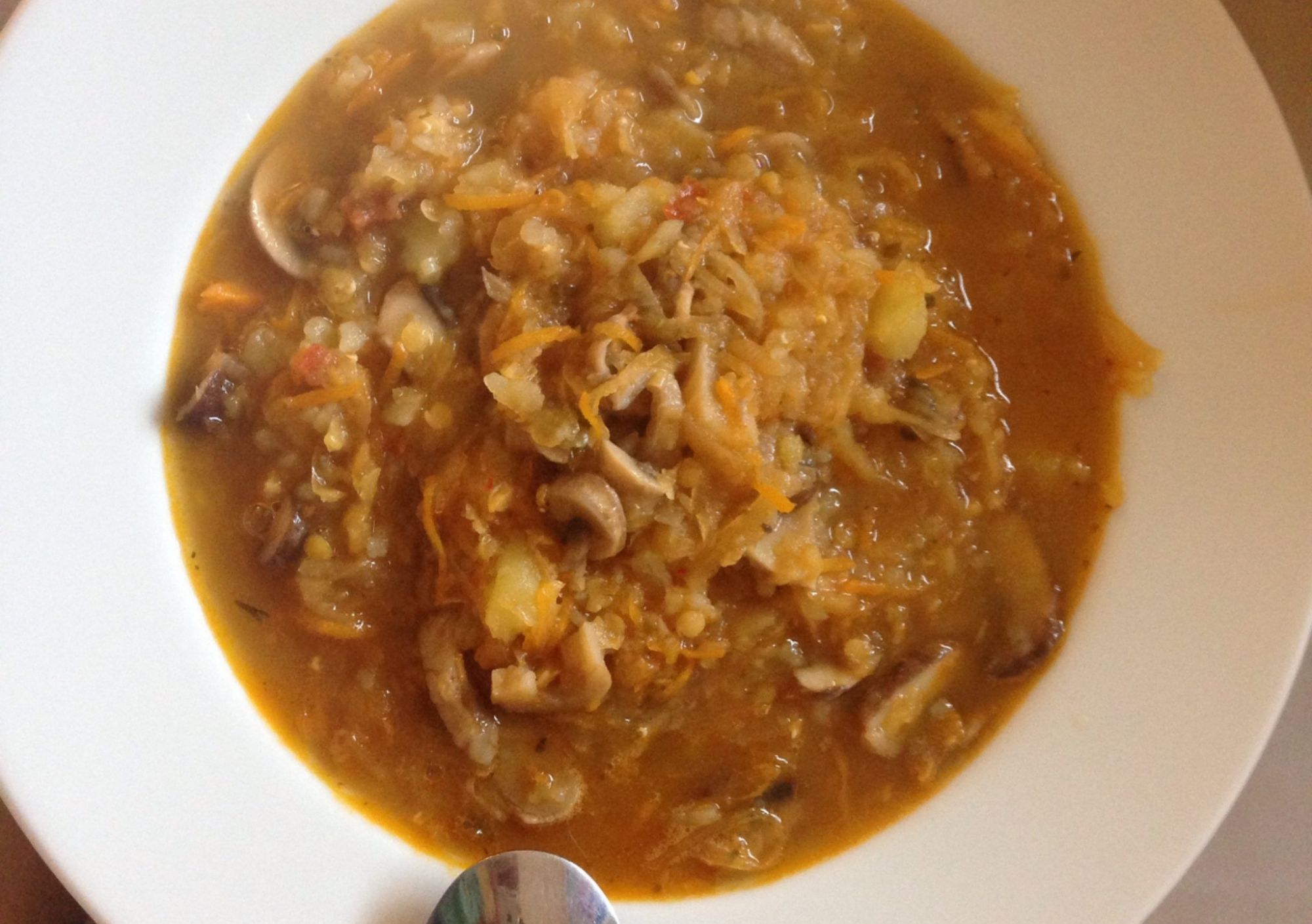 я просто обожаю супы, особенно в холодное время года,  как раз на днях мне удалось приготовить этот суп, в доме оказались и капуста и грибы)