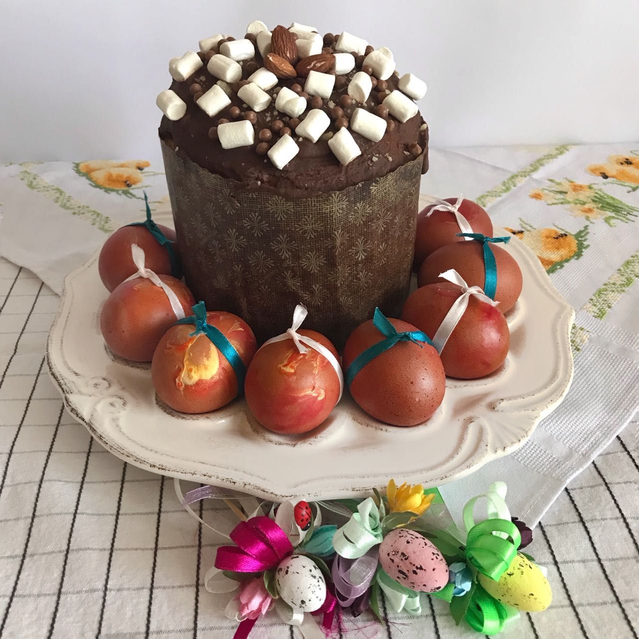 Еще можно растопить на водяной бане шоколадку, добавить в нее кусочек слив.масла и помазать куличи и такой намазкой - сверху маршмеллоу - он белый, будет красиво на темном, тут уже, как подскажет фантазия.
