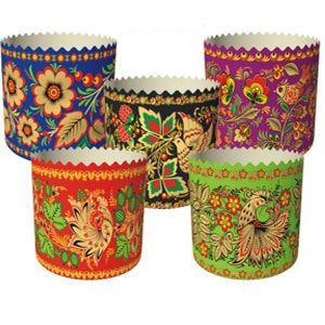Формы, у меня такие hohloma8.thumb.jpg.e53d07b929373684356e3d6472af2647.jpg , смазываем растительным маслом и раскладываем тесто по формам на 1/3 в каждую, даем постоять еще минут 30, тесто увеличится и дойдет примерно до верха формы. В предварительно разогретую духовку до 180 гр. ставим выпекаться куличи на 30 мин, потом температуру уменьшаем до 160 и выпекаем еще столько же. У всех духовки работают по-разному, поэтому ориентируйтесь, проверяя готовность, деревянной палочкой.