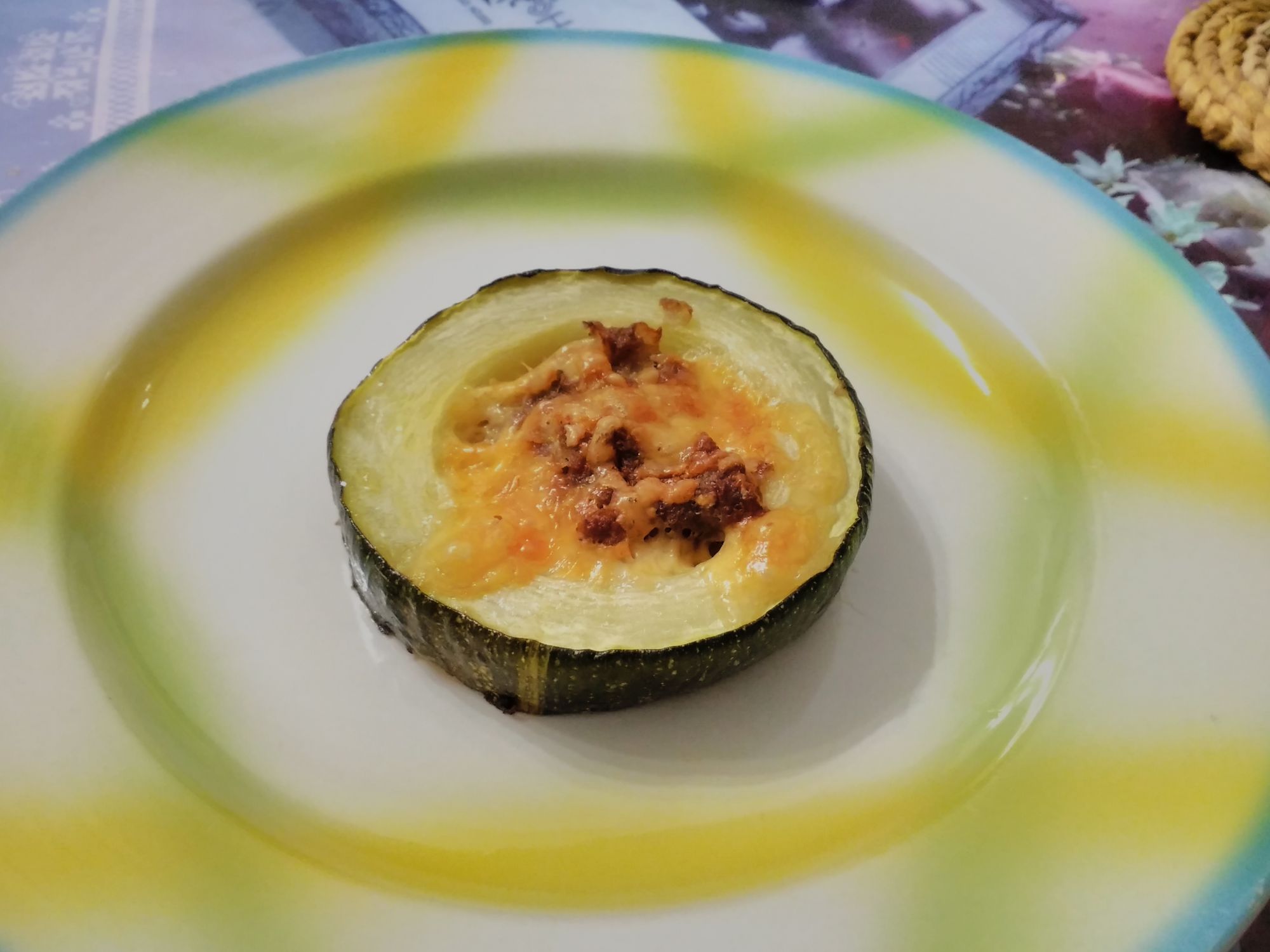 Приготовила фаршированные кабачки. Доча даже форель есть отказалась.
