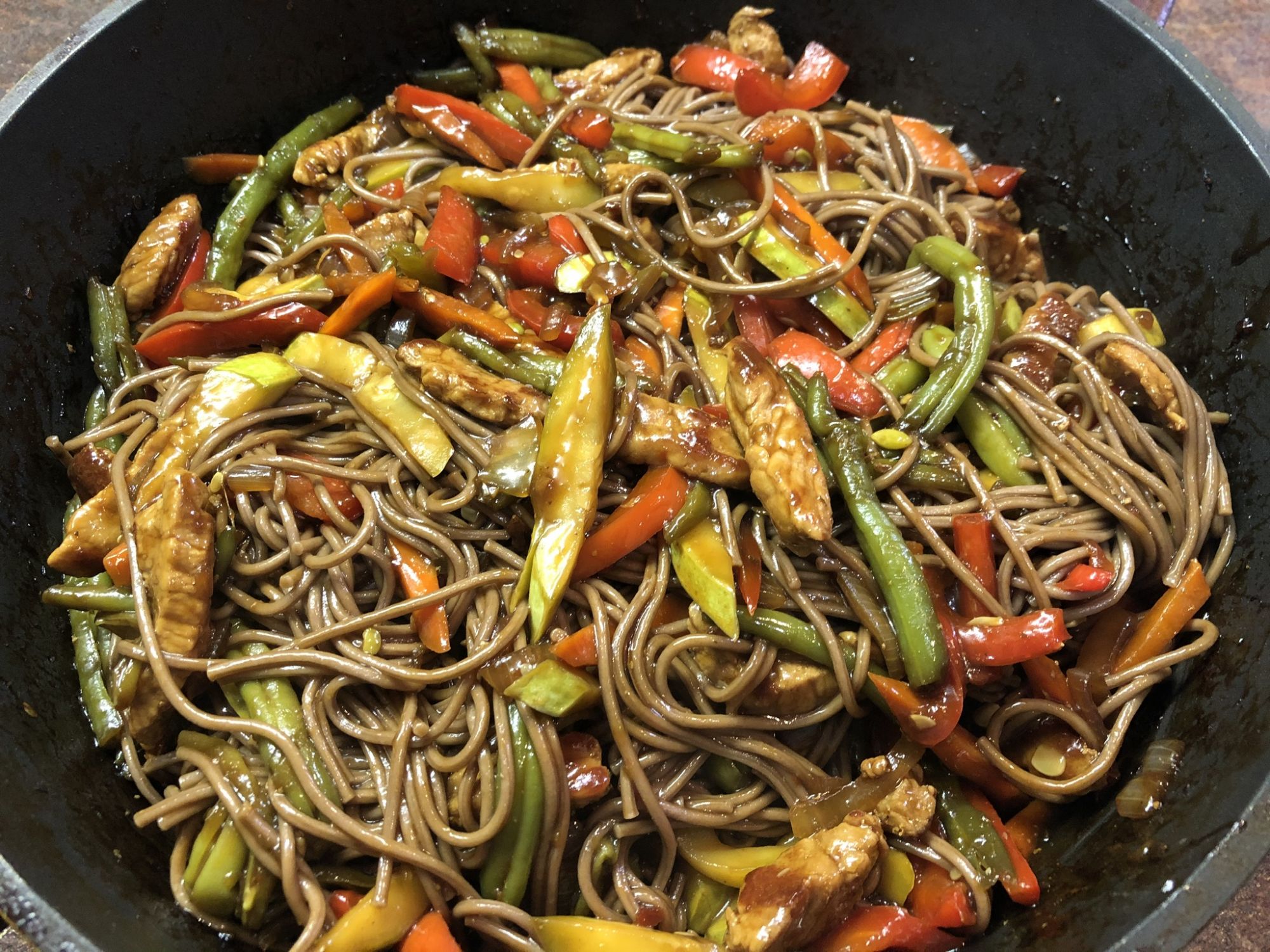 А я тоже люблю, как и Света, готовить собу (гречневая лапша) и ещё удон (пшеничная лапша), но только с куриной грудкой, по мне она нежнее и жарится ещё быстрее!