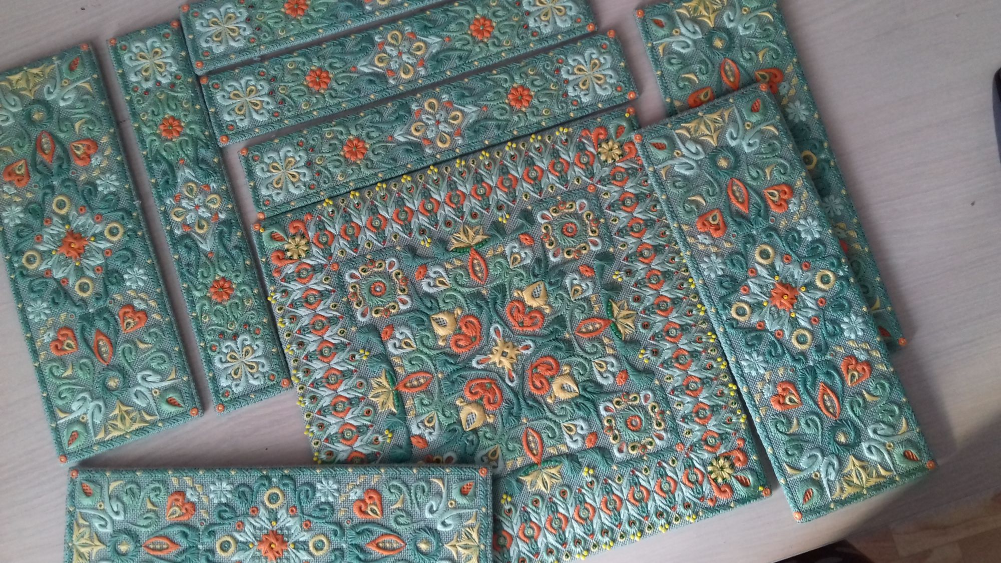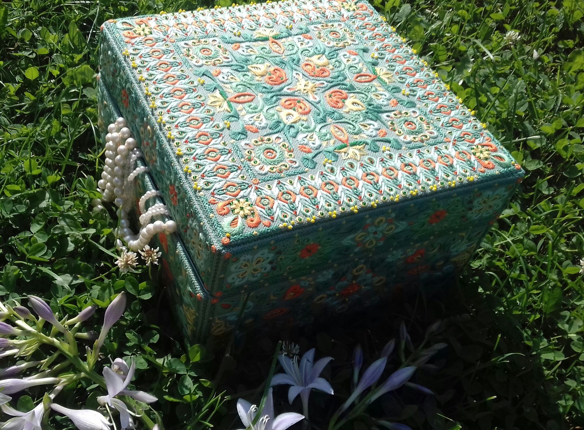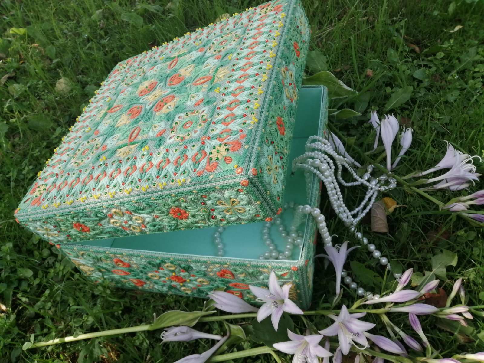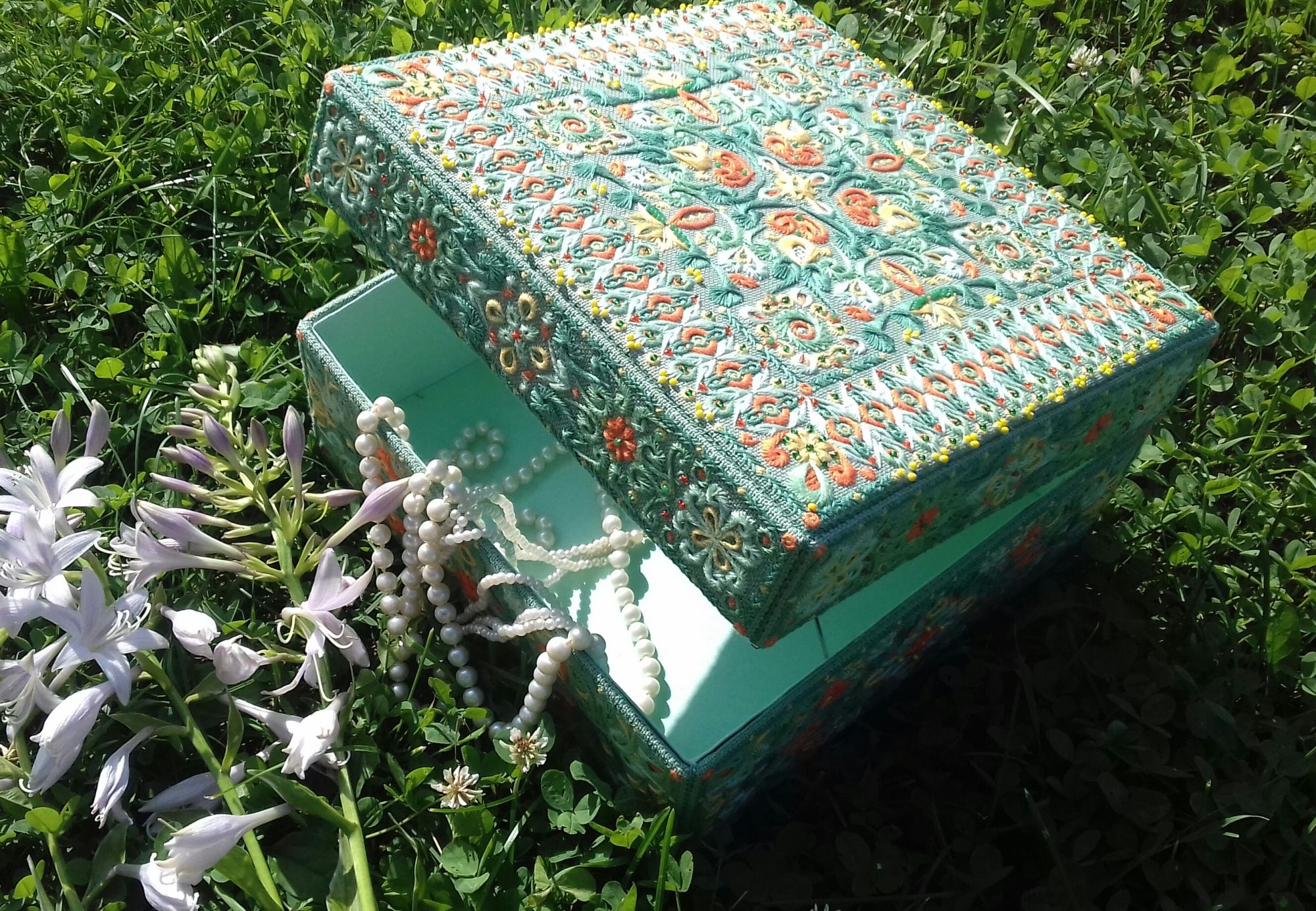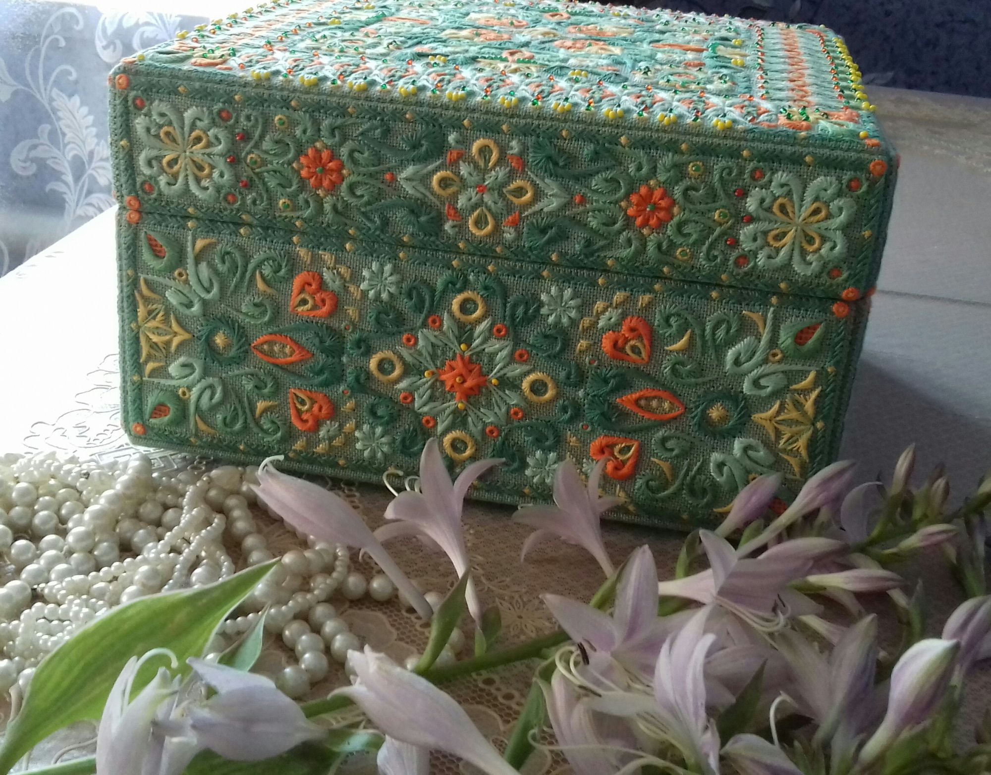 20 июля 2021 12.07.2021 в 22:30, Egelia сказал(а): Какая невероятно красивая шкатулка. Шикарно получилось. Валюша, благодарю! 09.07.2021 в 23:03, Juliay сказал(а): Боже, Надюша, какая красота твоя шкатулка шедевр просто! Вышитые детали приклеены на картон? Может расскажешь в кратце процесс сборки, очень интересно, хотя я за такое в жизни не возьмусь, но это из разряда "никогда не говори никогда", но очень хочется понять. Какие интересные стежки, орнамент, это очень круто А размер какой получился? Юля, спасибо! Вышитые детали натягивала на картон плотный, внутренняя сторона-тонкий картон, обклеенный тканью, потом эти кусочки склеивала друг с другом ( можно было и сшить аккуратно, но уже стало лень, поэтому склеила). Затем все детали сшила бискорнюшным швом по контурам. Вот и всё. Размер крышки вышел 23*23 см, большая получилась. Juliay и Egelia сказали спасибо Поделиться сообщением Ссылка на сообщение