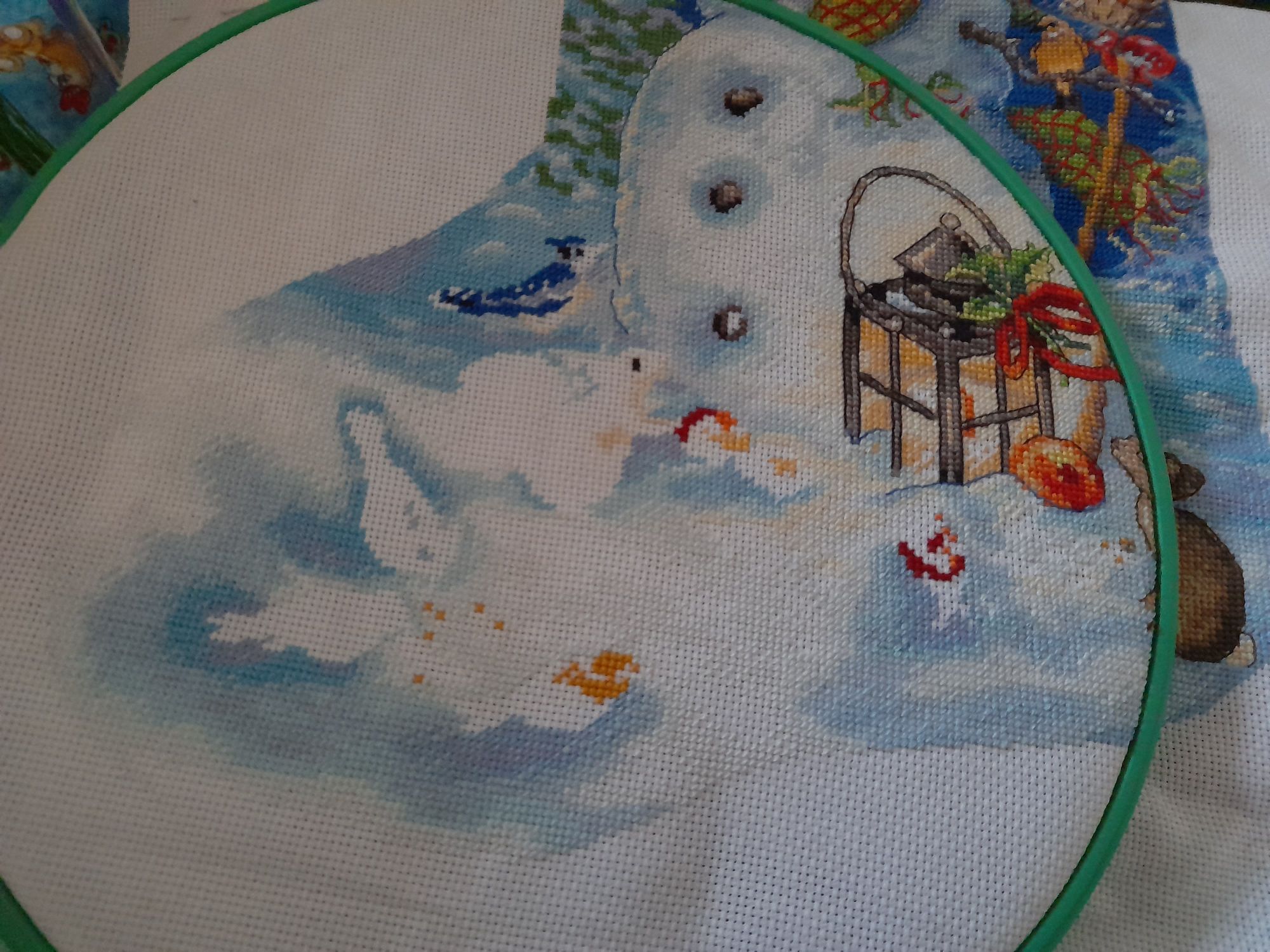 7 ноября 2021 Всем привет! Давно не писала, то работа, то дети болеют... 1. Носок, Дим, финиш Ура, закончен! И самое главное, в моем случае, собран! А то есть у меня проблема до конца не доводить вышивку, особенно прикладную) 2. Карапузики Думала я, что закончился проект, но нет, придумали второй сезон....и мне опять всё надо.. Карапуз-пингвиненок, карапуз-динозаврик и карапуз-пандочка готовы. 3. Весны прекрасное мгновенье по схеме О.Куликовой Шовчики идут туго, как-будто бы и надоели, поэтому по чуть-чуть для отчётов вышиваю 4. Подушка Красная машинка, Панна Старт. На этом с процессами все. Ещё тут случился у меня казус. Приобрела 2 фонарика от Милл Хилл, сразу же взялась вышивать один из них, почти собрала...и на тебе, пока ходила грела суп, один из двойняшек дорвался до маминой работы...почикал ножницами всю красоту((....ну что делать....поругала, но не сильно , выпорола весь бисер, решила вышивать на пластике, но....теперь как бабушка отговорила и подступиться не могу ( На этом всем пока! Тянет меня вышивать теперь новогодние игрушки. Так что текущие процессы будут нести потери в крестиках) Дикая белочка, TheSunniestDay, Juliay и 6 других сказали спасибо Поделиться сообщением Ссылка на сообщение