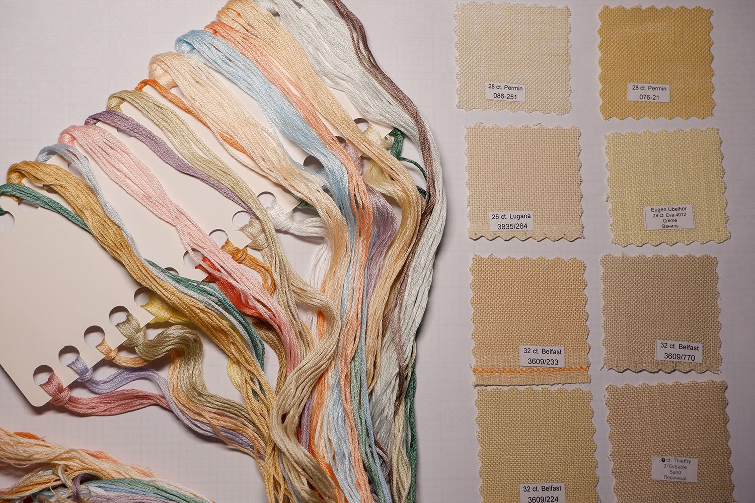 1 августа 2018 Помогите нехочухе определиться с цветом основы. Имеется дизайн Lanarte 33967 (в базе сайта его нет). В единственном найденном мной отшиве есть вот такие фото набора и готовой работы (все отсюда): Я подозреваю, что вложена Линда в цвете айвори (264). Но сложности начались, когда я решила изучить весь ассортимент подобных оттенков 30-27 каунта. Итак, имеем следующее: Пермин 086-251 слишком бледный Пермин 076-21 темноват и уходит в оранжевый Линда 264 (вместо которой лежит Лугана, т.к. образцов Линды у меня нет) по сравнению с другими кажется розоватым и не очень похож на цвет песка Ева 4012 желтый. Вообще все бледный и кремовые оттенки австрийском равномерки - это разбавленный желтый (у Цвайгарт это все же бежевый) Кашель 233 (опять же за неимением образцов Кашеля, использую Белфаст) - чуть более темный вариант 264 Кашель 770 слишком серый Белфаст 224 нравится мне больше всего, но по закону подлости в Кашеле такого оттенка нет. Тиефри 316 похож на 770 от Цвайгарт - многовато серого. Ну в общем вы поняли... Хочется солнечного и золотистого песка, а имеем либо солнечно-желтое, либо серовато-песочное. Как самый крайний вариант рассматриваю взять Еву 4011 (тоже желтая, но еще бледней) и пройтись по ней сильно разбавленной коричневой краской. Но если вы меня ткнете носом и скажете "вышивай вот на этом оттенке и не выделывайся", буду рада. карменсита сказал(а) спасибо Поделиться сообщением Ссылка на сообщение