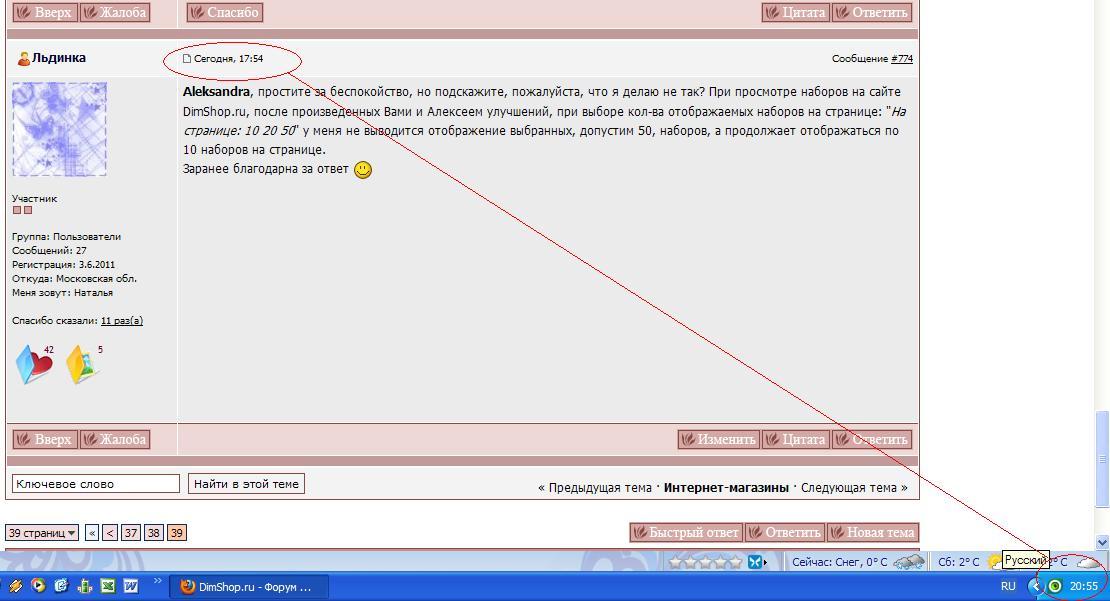 14 ноября 2011 Александра, я с очередным вопросом... Давно заметила, что когда пишу сообщения на этом форуме, время создания сообщения отстает от московского на 3 часа. Я даже на всякий случай проверила, что в Ростовской и Московской области одинаковый часовой пояс Может быть Вы любезно подскажете в чём причина, что не так в моих настройках? Для подтверждения я даже скриншот сделала сразу же после написания очередного сообщения на форуме: Поделиться сообщением Ссылка на сообщение