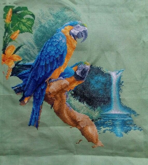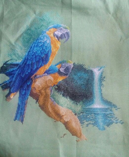 10 сентября 2019 Привет всем. Работа, работа... почти нет времени ни на что, хотя повышивать урывками все же удается и этому я несказанно рада! Ночной город я решила пока отложить (устала от черной канвы). Поэтому я яро взялась за попугаев "В бразильском лесу" сами птицы у меня вышиты и остался фон. Водопад получился реалистичным прям таким))) И цветы очень яркие приятно вышивать. Вообще отшив легкий и радует. Хотя блендов очень много используется. AssOlka, Egelia, maui и 2 других сказали спасибо Поделиться сообщением Ссылка на сообщение