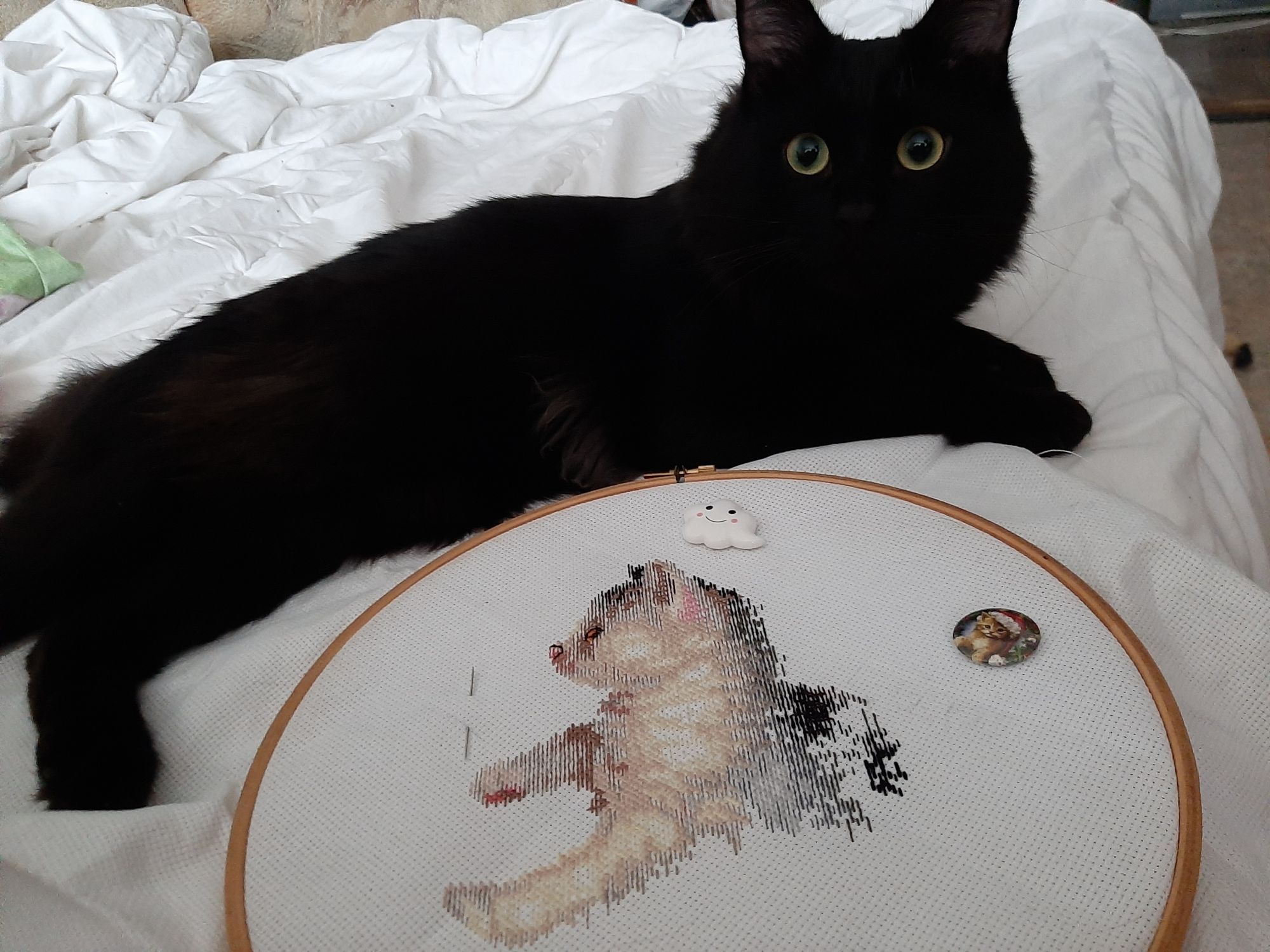 8 сентября 2021 Ну и фото сегодняшнего фото-отчета это Кот с котом Это, кстати, почти единственная работа на которую Василий без зазрения совести может залезть несмотря на хорошо натянутую канву в пальцах. Сибирская Кошка, Кисуля, AssOlka и 2 других сказали спасибо Поделиться сообщением Ссылка на сообщение