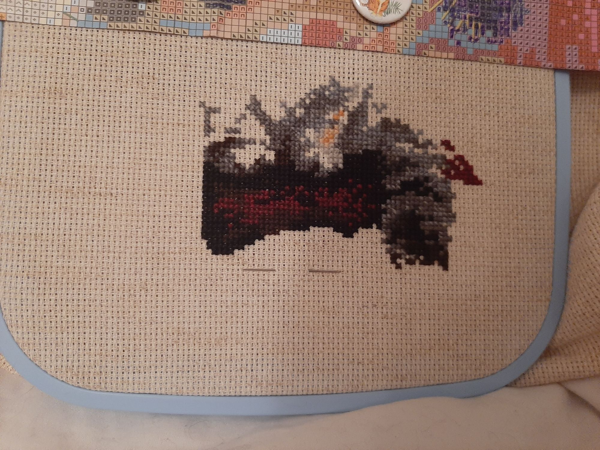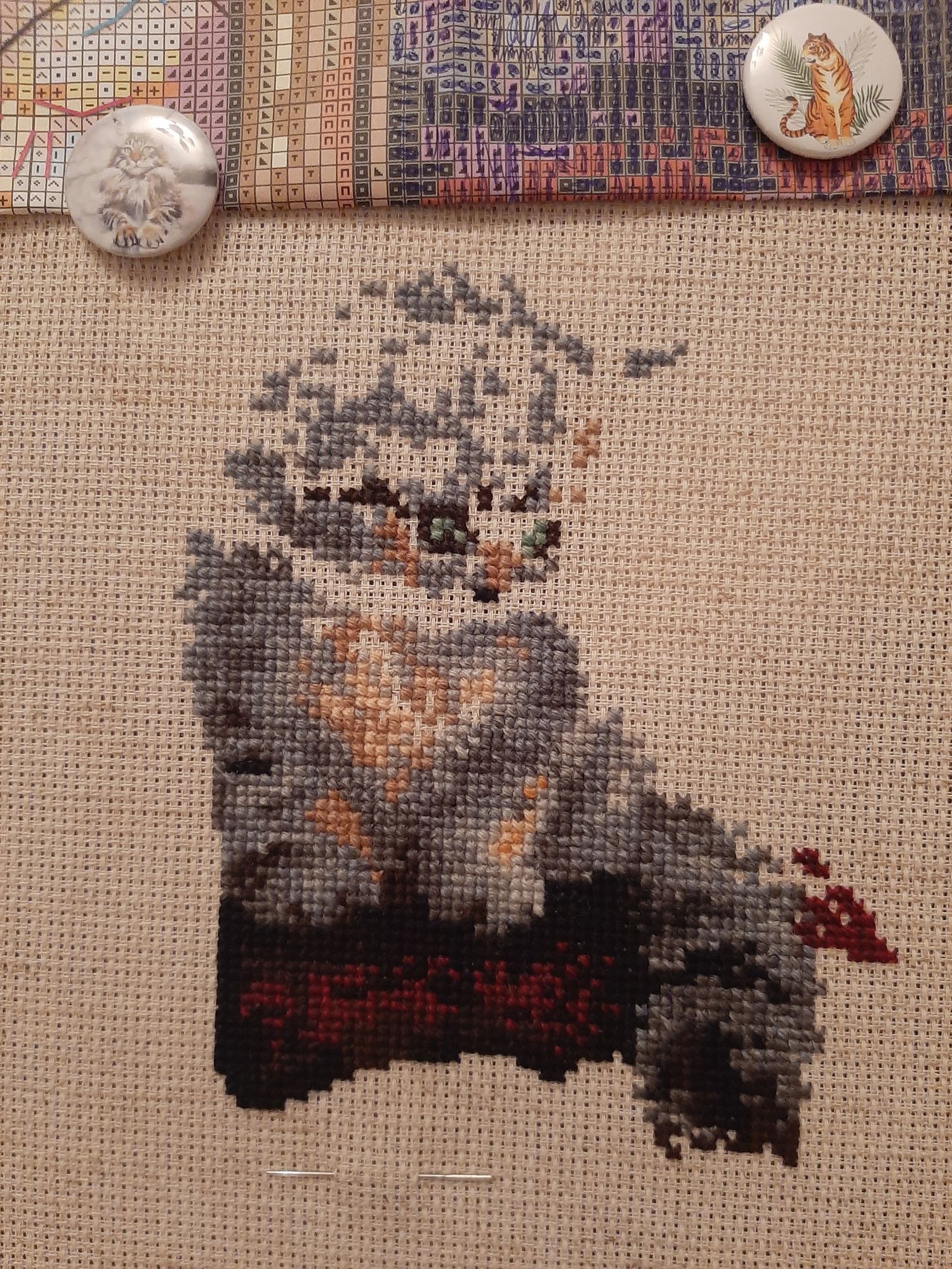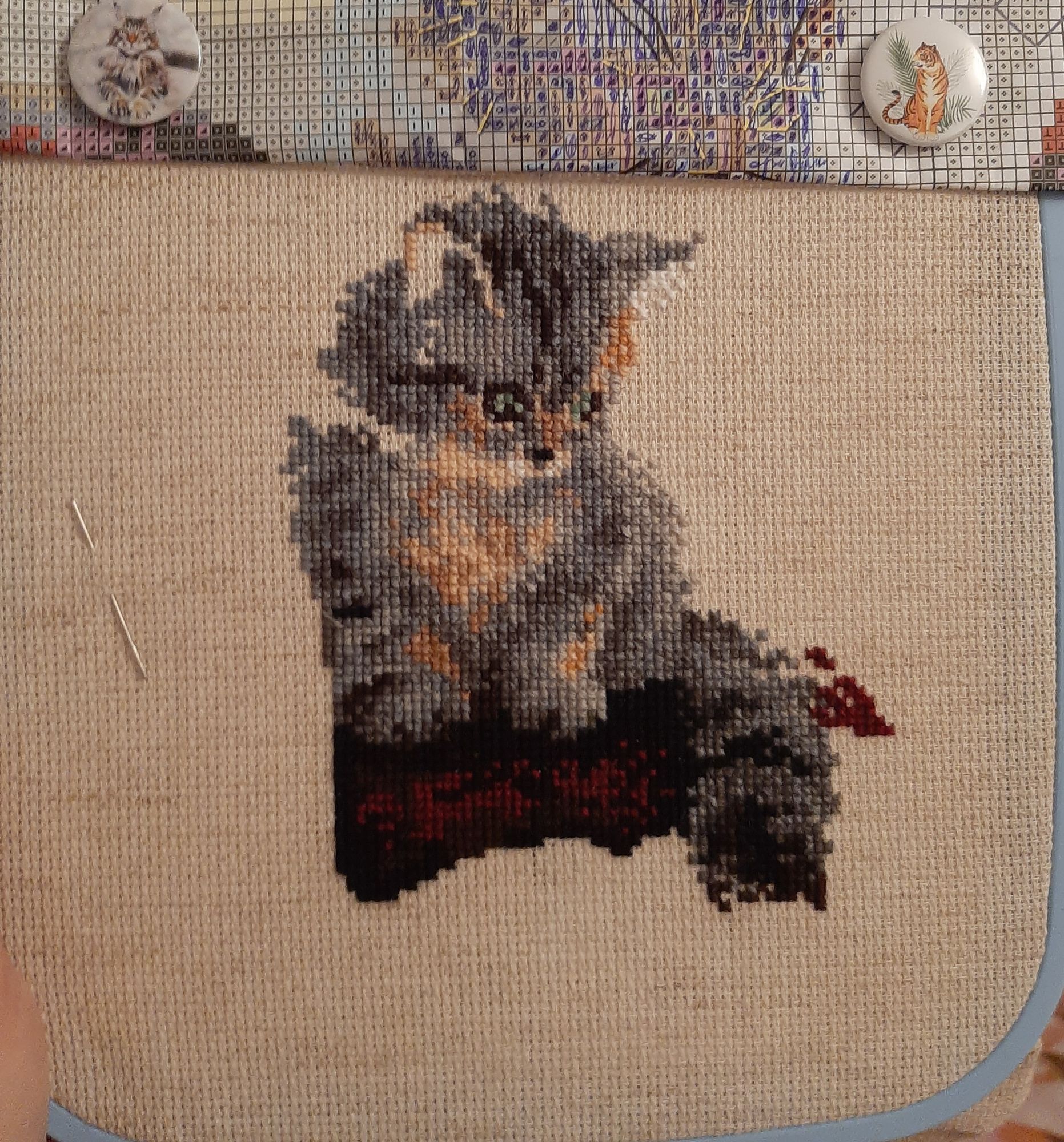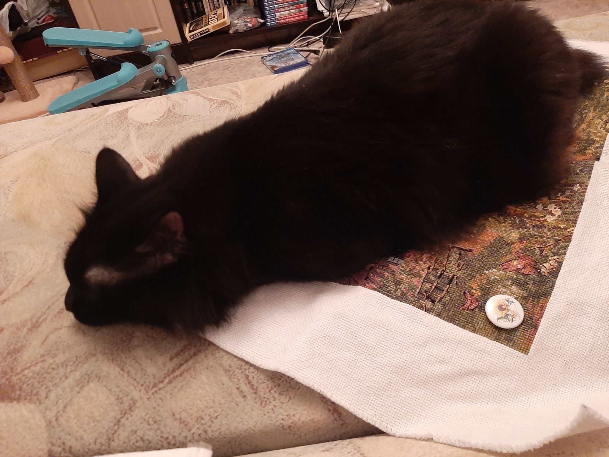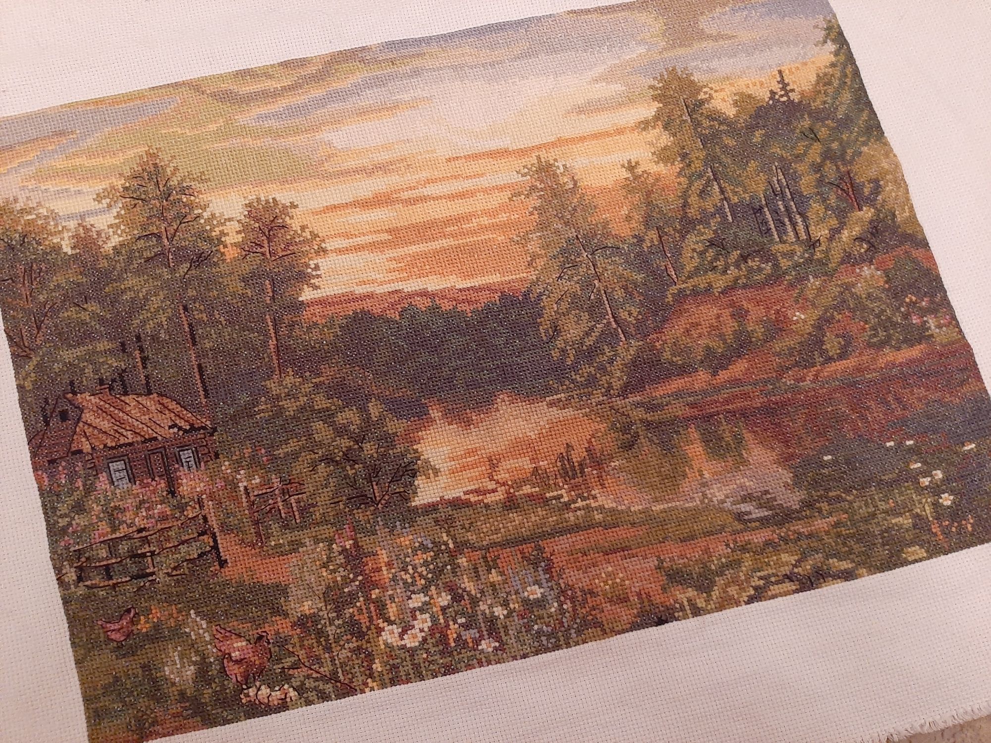 7 февраля 2023 Всем привет! Спустя месяц я вновь заглянула в тему. И заглянула с новостью! Я завершила свою картину от Панны "Летний вечер". Мне не верится, от слова совсем. С 2016 года я её потихоньку вышивала. Результат, конечно, красив. Но бэк каким-то образом оказался несчетным. У панны я такой видела впервые. Поэтому весь бэк делать я не стала, не хватило терпения. Фрузелки правда накрутила. Ну и помощник мой, без него никак. Стоило мне только погладить работу и вот он уже на канве))) Елизарочка, Хозяйка смешных зверей, Забава_ и 5 других сказали спасибо Поделиться сообщением Ссылка на сообщение