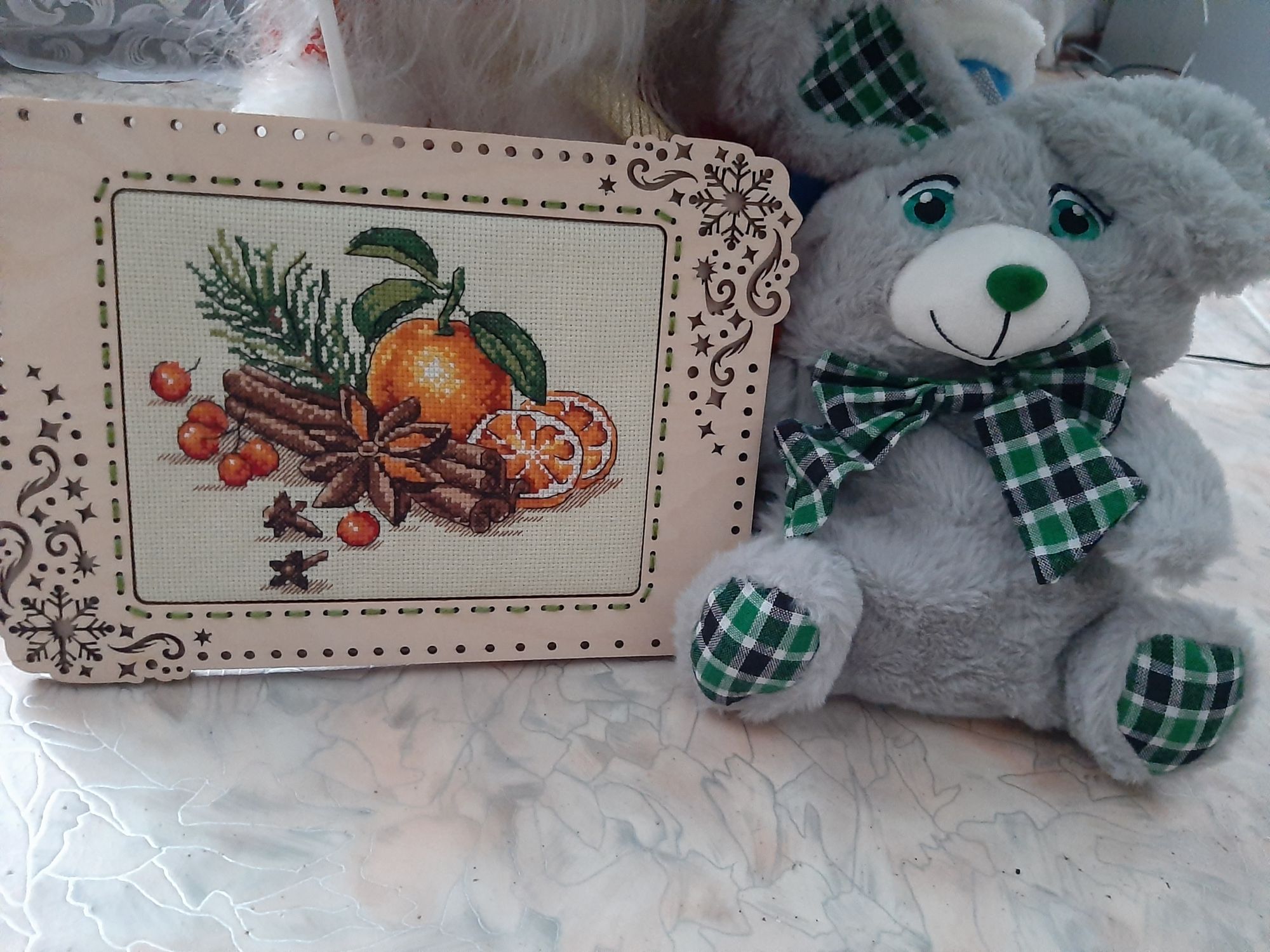 29 декабря 2022 Всем привет! Решила я обзавестись хоть одним новогодним процессом неделю назад...а знаю свою скорость вышивания, решила я что процесс этот должен быть маленький и простенький Вот так и привела меня моя голова к процессу от Жар-птицы "Восточная услада". Очень конечно хочется вышить работу к Новому году. Я ведь уже и рамку заказала тематическую на WB, и даже уже получила ее) Вышивается, кстати, легко. Канву я естественно заменила на Гамму зелёного цвета (на белом фоне как-то скучновато показалось ) каунт канвы сохранила -14. AssOlka, 19199707770, Кисуля и 1 другой сказали спасибо Поделиться сообщением Ссылка на сообщение
