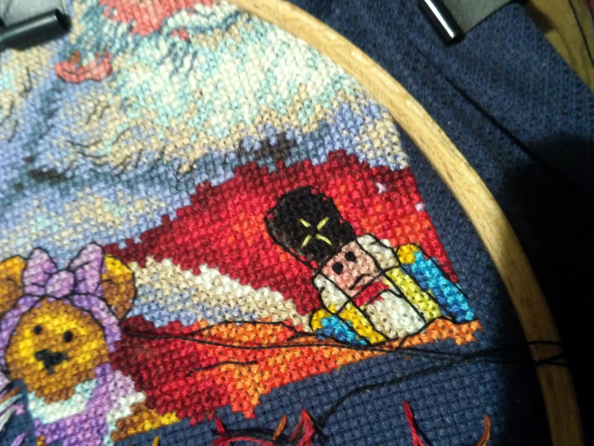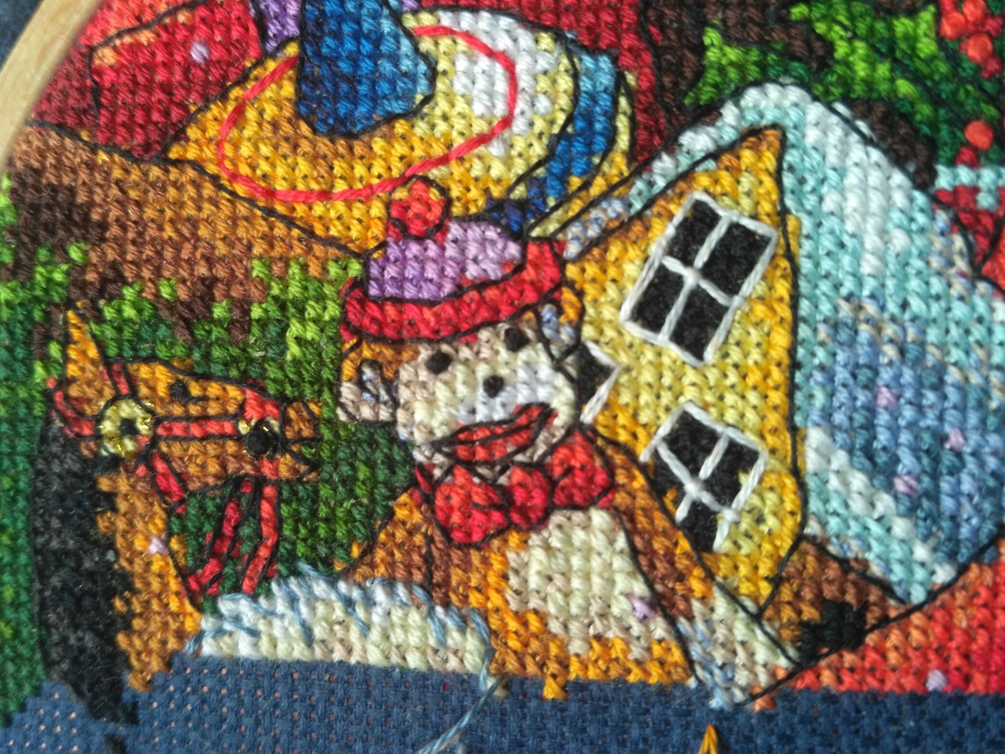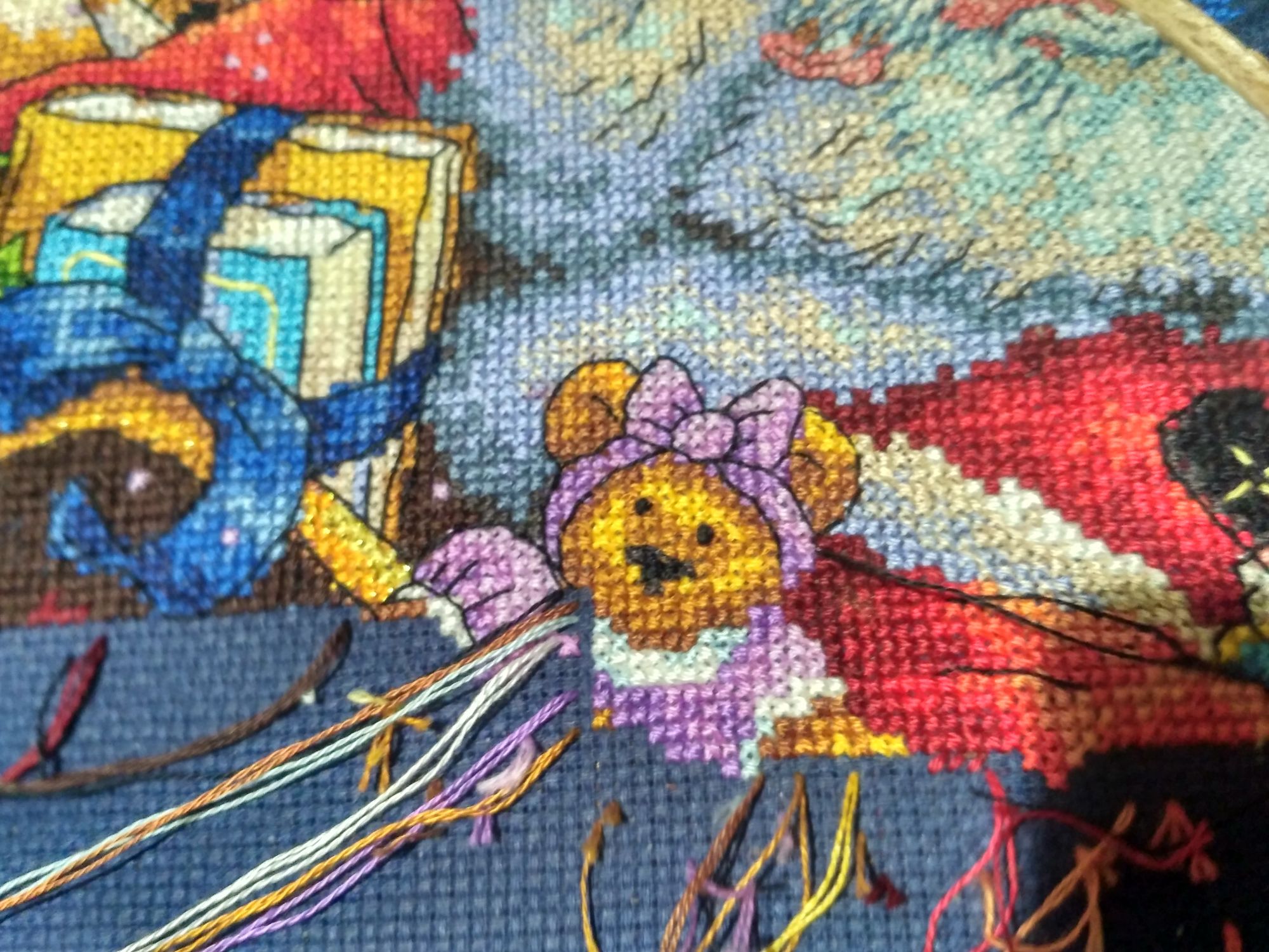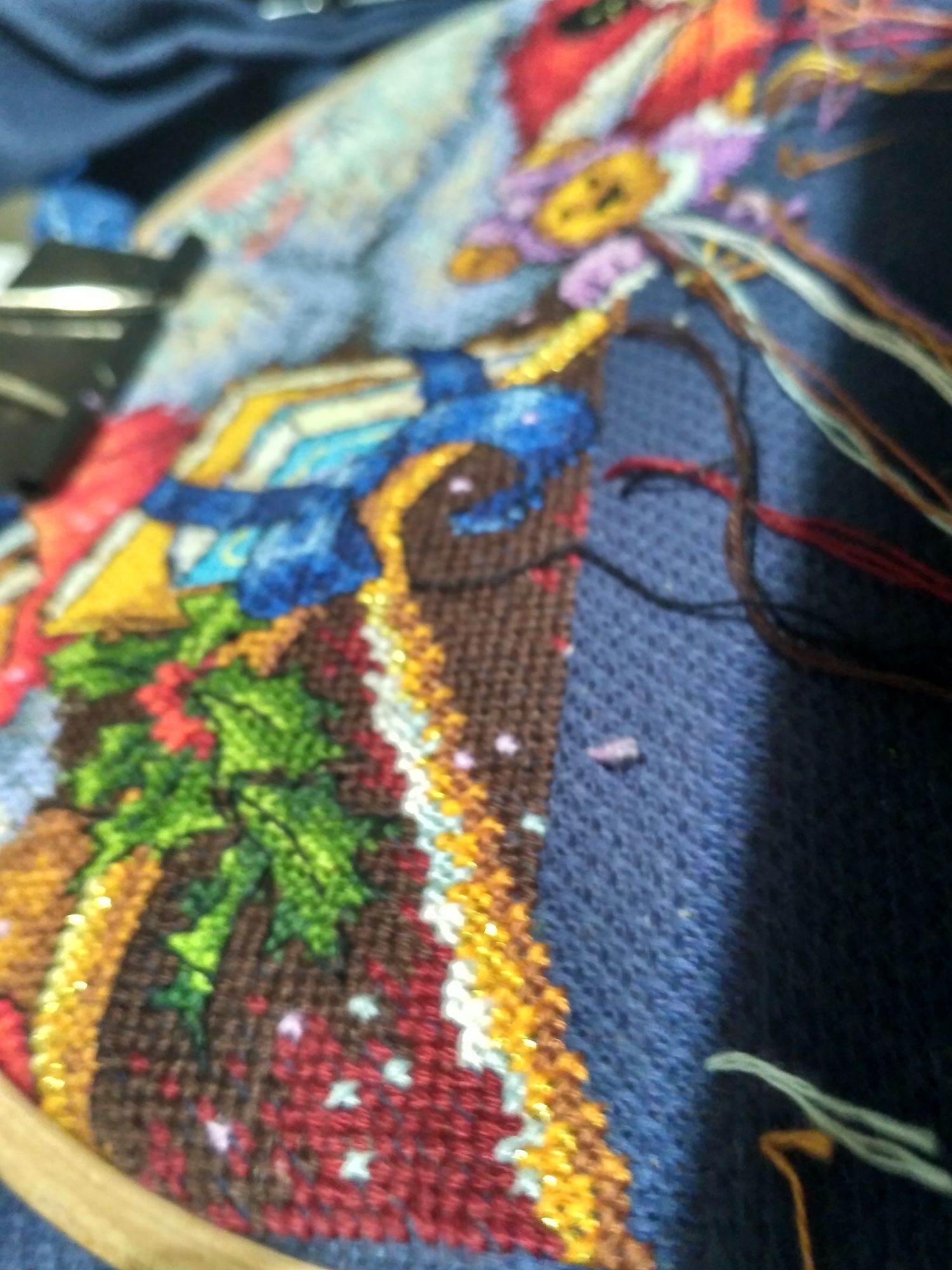 9 мая 2018 День выдался продуктивный! Всех с праздником Великой победы!! У меня появились подарки. Окошки дома это выкладная нить белая, в сбруе лошади уже пошел металлик и узелки. А вот носик обезьяне я переделала, по схеме он состоит просто из двух узелков, как и глаза, но мне очень не нравился такой нос, сделала стандарт - один узел)) Так же появляется лицо Дедушки и волшебный голубой глаз!!! ( как у брата Дамблдора в осколке зеркала). Над беком глаза и лица пришлось попыхтеть, напомню, 18 канва, и рисонок беру в одну клеточку. Но результат как всегда шикарный. И мне очень нравится как смотрится зеленая ветвь на фоне меха шапки (кстати, сюда очень просится мохер для распушки) CherepOlka, татьяна0674, СветланаЛФ и 17 других сказали спасибо Поделиться сообщением Ссылка на сообщение