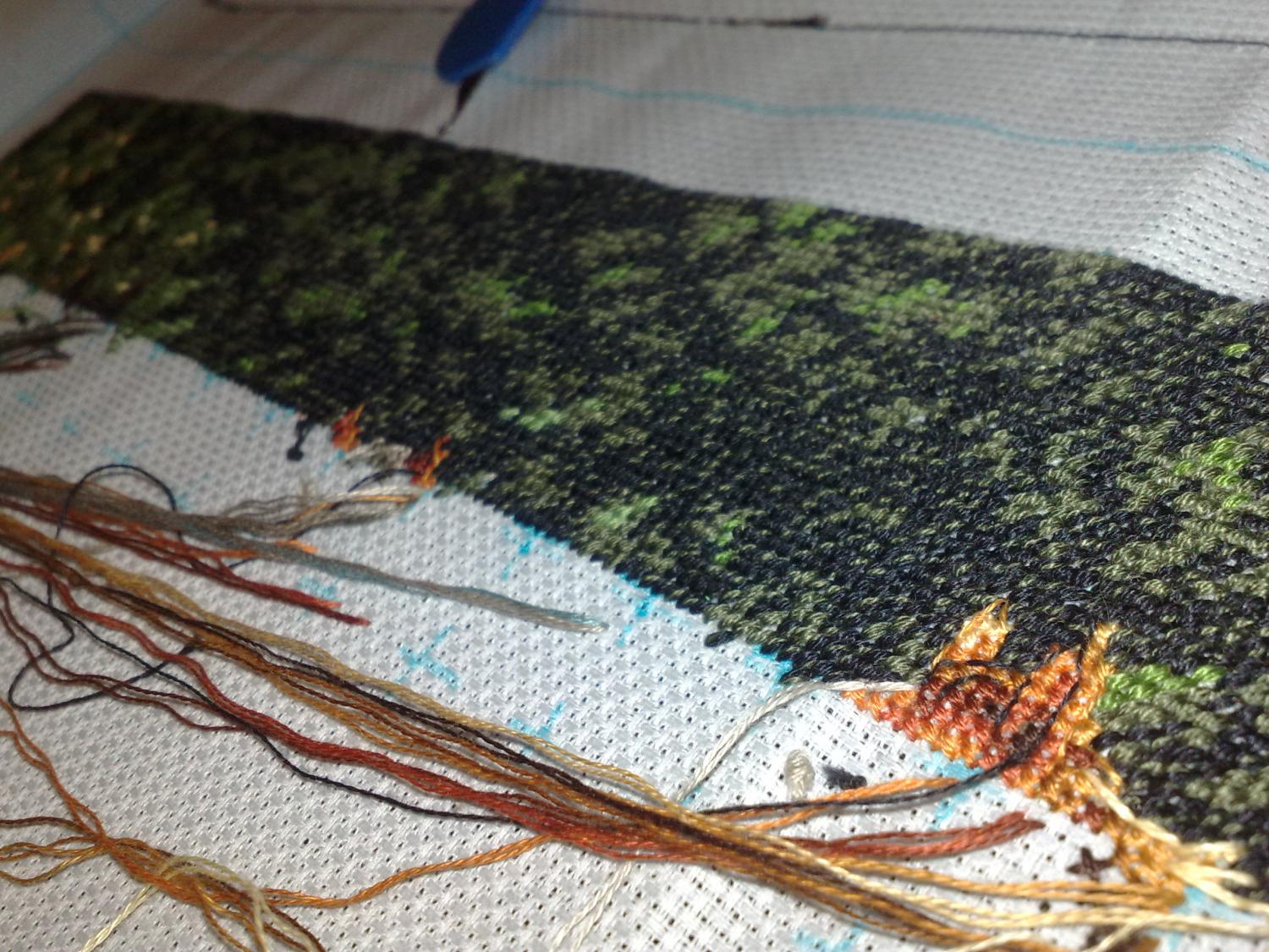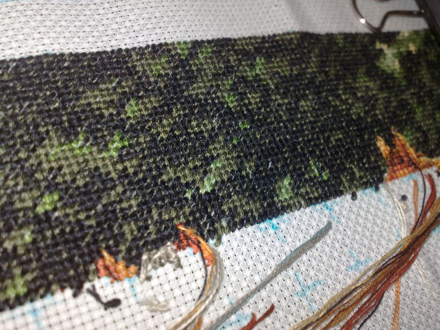 19 октября 2014 Девочки, спасибо за поддержку! ночь с пт на сб и сама суббота выдались нелегкие--не спали, капризничали, плакали "ой мой носик" (заложеный был), и все остальное. Но в вс стало лучше и папа приехал как раз и я после оттирания квартиры за неделю наконец-то села! и вот чего насидела: Огромное удовольствие от процесса! в моей памяти такое соизмеримо с Сиянием, где я просто балдела от каждого стежка)) Зеленые цвета очень насыщенные, глубокие. Правда, вместо 6ти ниток беру 5, я вообще против таких изменений, но ниток тут не хватает, к тому же, скажу, что разница между 5 и 6 совершенно невидна)) zoarka, Tanya_RTK, terezka и 7 других сказали спасибо Поделиться сообщением Ссылка на сообщение