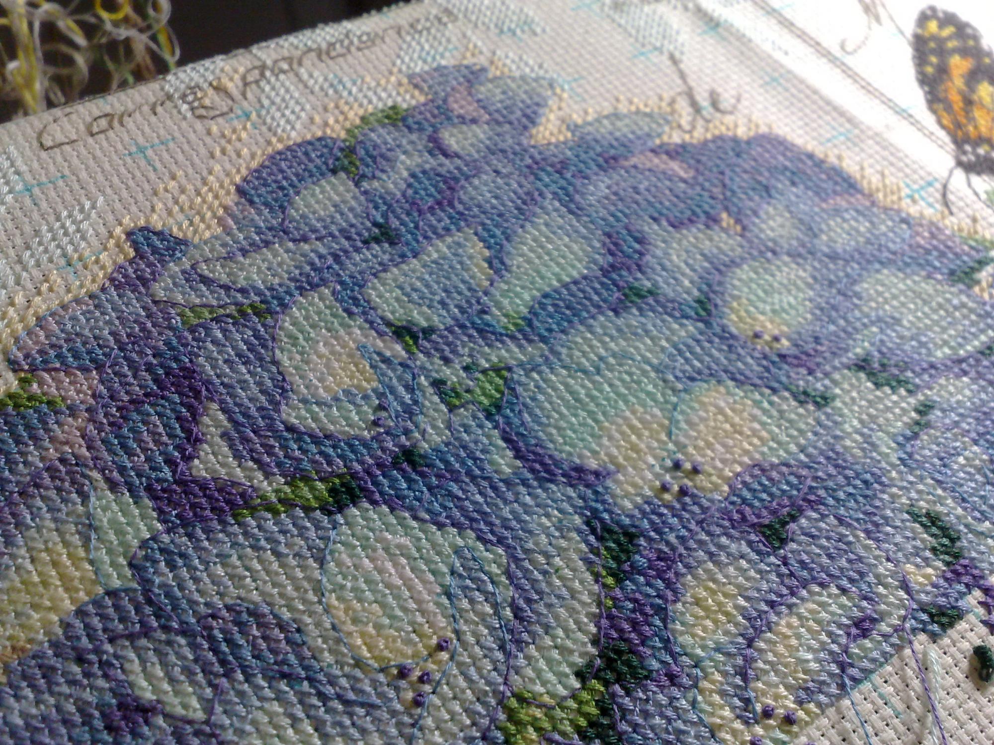 15 ноября 2015 Растет моя красота)) Вообще ну такая приятная работа, канва крупная нитки укладываются ровно, оттенки эти фиолетово-синие. Я прямо порой чувствую аромат цветков, лепестки в реальности очень изящные и вообще, такое ощущение, что элементы идут в натуральную величину. У меня шары гортензии под пальцами просто как настоящие! Я нечасто что-то рекомендую к отшиву, но именно эту работу я очень рекомендую. Она просто потрясающая. Еще появилась симпатичная желтая бабочка с кучей фрузелочков, которые ей очень идут)) НатальяП, mushta, sunny981 и 15 других сказали спасибо Поделиться сообщением Ссылка на сообщение