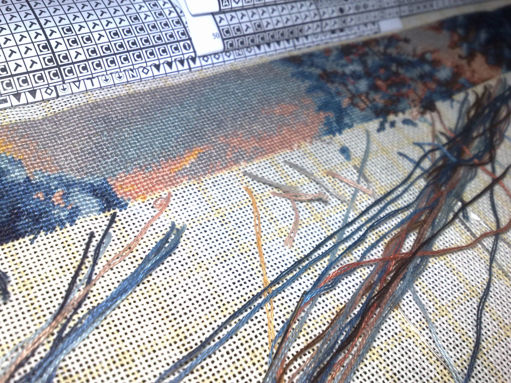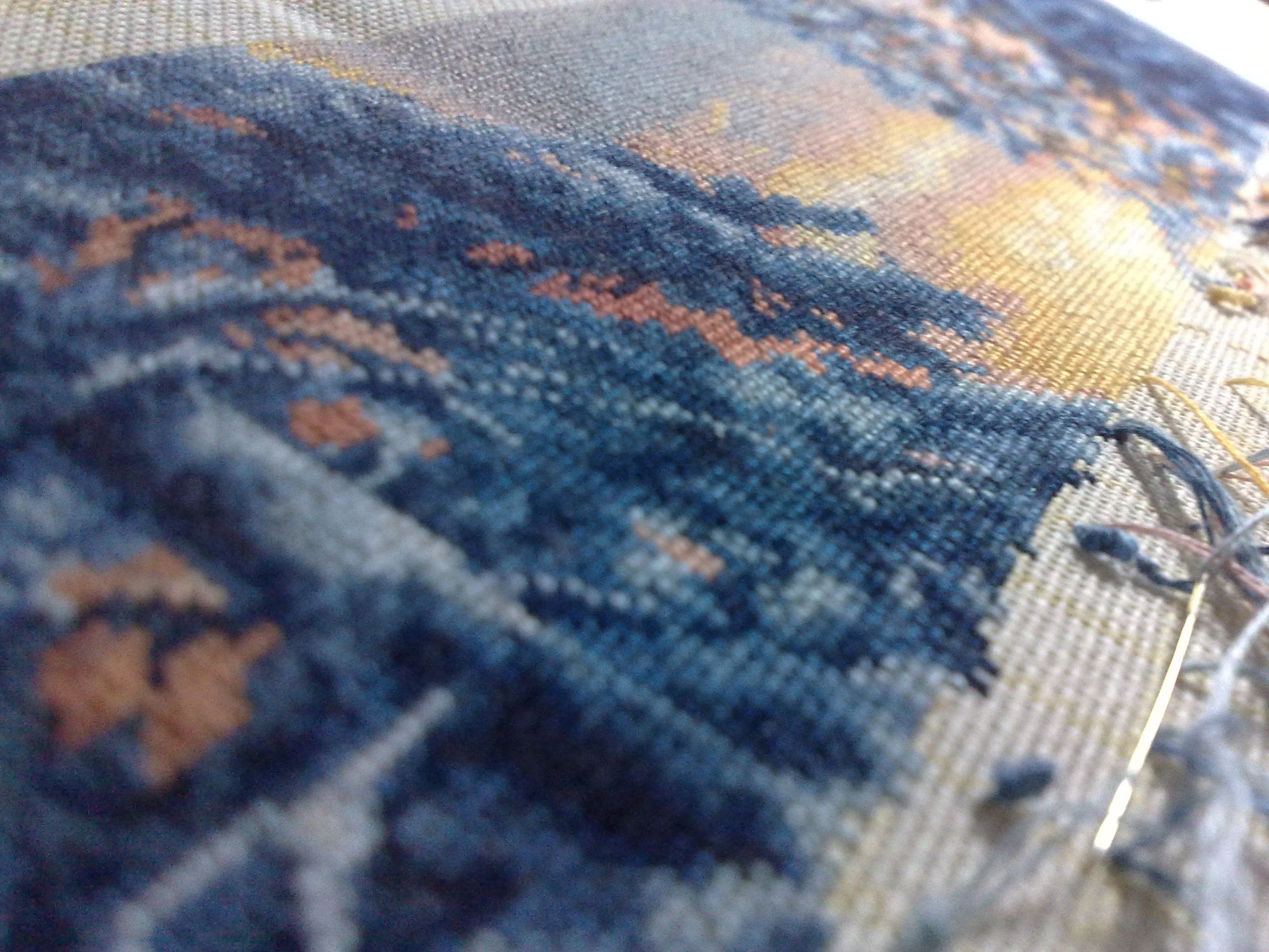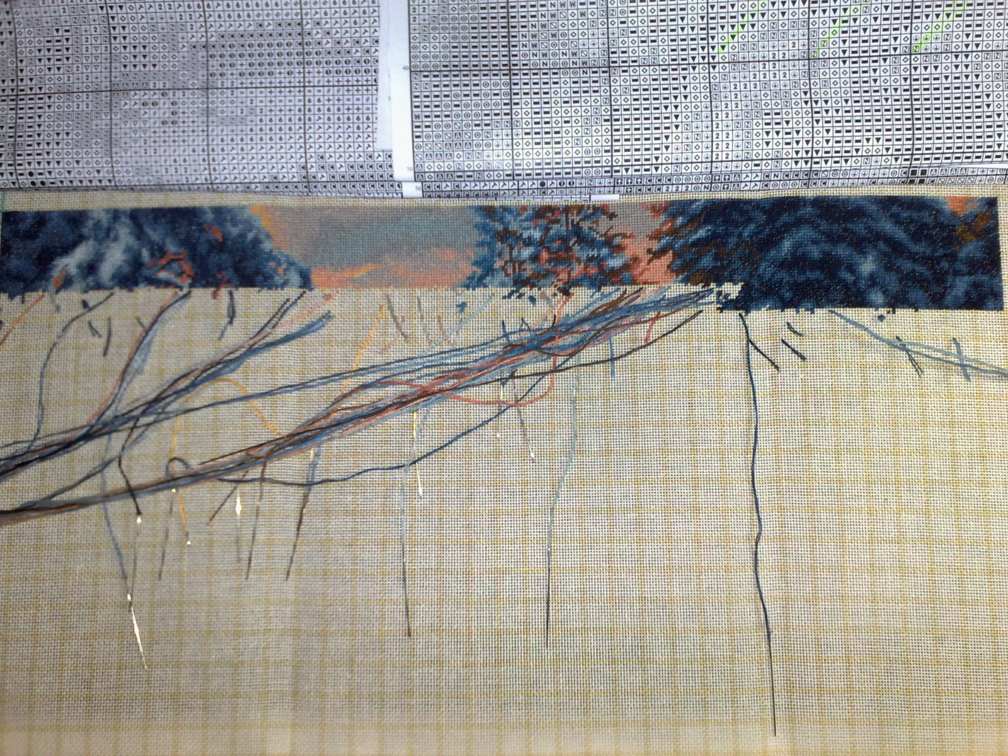 10 января 2016 пока показаться) вот такое у меня "телодвижение". Справа видно верхушку нижней елочки, еще чуть и дойду до домика (самое желанное в этой картине), Небо идет очень легко и красиво - желто-розовое приятное для глаз. Левые елочки тоже немного подросли. Приятно вышивать, но нелегко. Впрочем как и Роща в свое время, одинаковые оттенки конечно накладывают сложность. А вообще очень красиво. Мне нравится. Но после этого пейзажа - никаких синих оттенков)) СветланаЛФ, kreolka, Хозяйка смешных зверей и 13 других сказали спасибо Поделиться сообщением Ссылка на сообщение