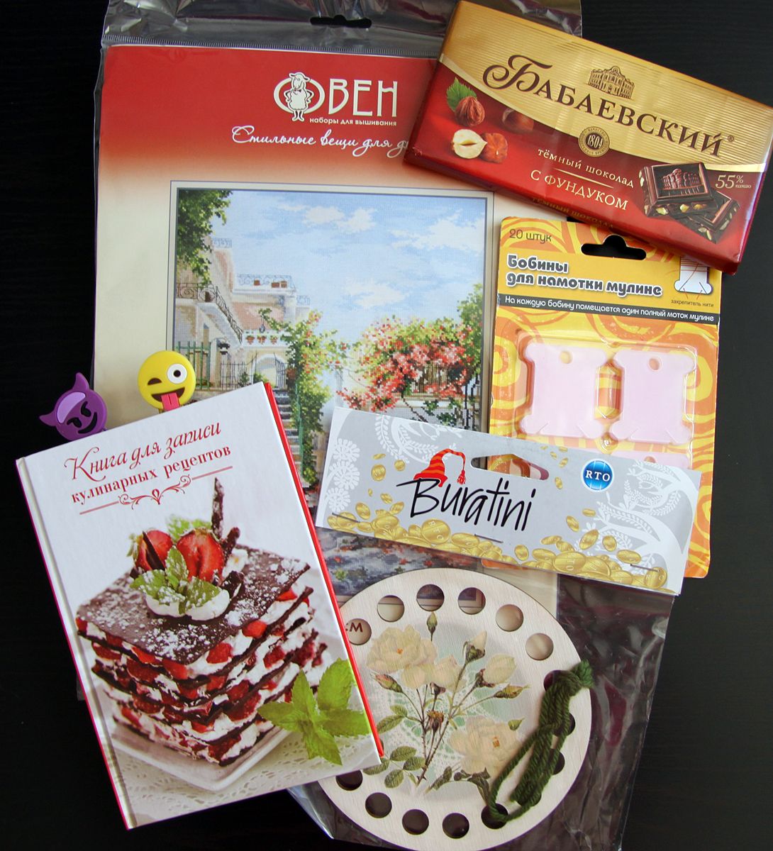16 апреля 2017 Всем привет! У меня сегодня отчет в 3х частях )) Часть первая. Подарочная. Большое спасибо Наташеньке (Наталья2013) за подаренную радость! Очень душевная посылочка приехала ко мне накануне ДР. Чудесный наборчик от Овен с городским пейзажем понравился не только мне, но и мужу )) Замечательная книжечка для рецептов обязательно будет использоваться по назначению. Бобинки и органайзер всегда нужны. Ну а шоколадка с трудом дожила до фотосессии )) Вот такое чудо Спасибо фея Наташа Еще одна посылочка добралась ко мне как раз перед ДР, хоть и никак с ним не связана. Ко мне приехали два подарочных набора от магазина "Мир вышивки". Не совсем безвозмездно конечно, а с условием, что я сниму видео-обзоры на них и прорекламирую магазин )) Один набор до 1500р мне предложили выбрать любой из ассортимента магазина, а второй нужно было выбрать из нескольких предложенных. Первым я выбрала странные избушки от Нова Слободы, вторым оказались Шары желаний от ССР. Часть вторая. Начинательная )) Закончив на прошлой неделе сразу три процесса, я почувствовала, что имею полное право что-то начать )) Наборы были выбраны довольно быстро... и хоть здравый смысл мне подсказывал, что начинать два больших процесса это очень не разумно.... но так хотелось... а посему, вот ЗР "Осенний вечер". размер 28,5х37,8, 16 аида, 58 цветов. Схема на 6 листах, 4 полных и 2 половинки. Цвета шикарные, канва и ниточки приятные. Пока все нравится, хоть и вышел у меня казус в самом начале )) Начать мне приспичило вечером уже ближе к полуночи и каким-то образом я взяла не тот лист... Начала как обычно с левого нижнего угла, который там довольно темный. Сижу вышиваю и удивляюсь, надо же ниточки не такие уж темные, даже яркие... так красиво получается... Дошло до меня, что я ошиблась, когда вышила около сотни крестиков семью цветами... Сразу все распорола, а на следующий день начала заново )) Вышито пока немного, но процесс нравится. На этом этапе обнаружила, что в схеме есть значок, которого нет в ключе. А в ключе соответственно значок, которого нет в схеме. Думаю это просто опечатка, значки довольно похожи, но все же разные. Напишу в фирму, уточню. ССР "Ночной город". Этот набор давно просился в руки и вот его время пришло )) размер 95х45см, аида 14, 51 цвет. Но я канву решила заменить на 18 аиду, поэтому размерчик у меня значительно уменьшится. Соответственно крестик буду вышивать в две нити вместо трех, а вот с полукрестом еще не определилась... логично было бы наверное в одну. Начала вышивать из центра... крестики почему-то очень кривые... Раскраска. Давно у меня лежала в запасах раскраска от фирмы Шиппер и так давно, что некоторые краски совсем засохли и восстановлению не подлежат. Я расстроилась и отложила ее, выкинуть рука не поднималась... И вот нашлась добрая девушка Оля, которая рисовала точно такую раскраску и красок у нее много осталось. Она прислала мне свои красочки, а это значит, что у меня теперь будет свое персональное Ночное кафе Ван Гога )) Не перестаю удивляться и радоваться тому сколько прекрасных людей мне встречается! Часть третья. Продолжательная )) Покровка. В целом сейчас хорошо вышивается, возможно потому что вышивать лошадок интереснее, чем мостовую )) было стало Осенний лист. Настоящая отдыхалочка, очень все нравится. было стало Вот сколько много новостей получилось! Всех поздравляю с праздником! Мира всем и