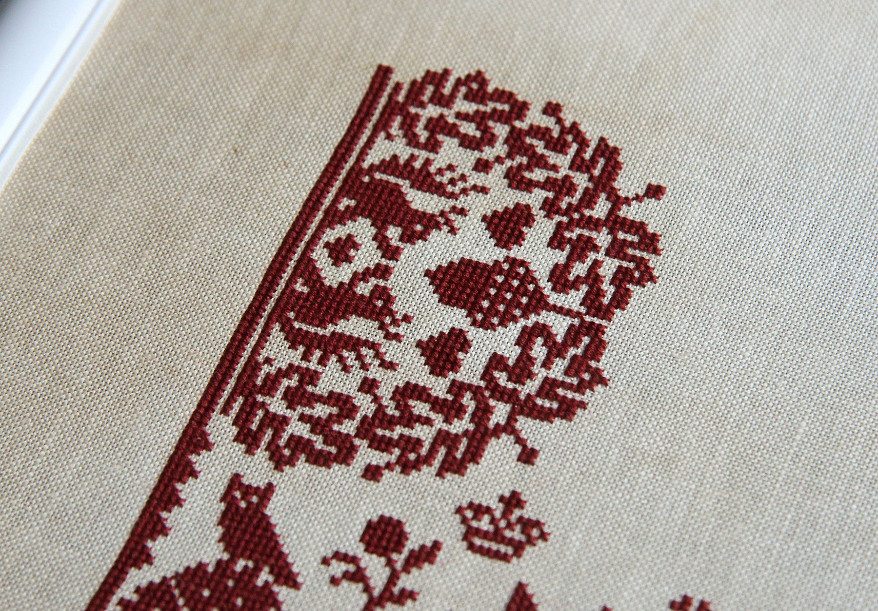 1 июля 2018 Всем привет! Решила я не тянуть с отчетом, тем более, что все фотографии сделаны, время есть, а до вечера вряд ли что-то особо изменится. Итак, зеленим очередную гаечку! РТО. Виноградное вино. Размер заявленный производителем на аиде 14 26х32см. У меня на Brittney Lugana 28 размер получился чуть меньше 25х31см. Вроде каунт совпадает, но возможно, производитель указал размер с небольшими отступами от рисунка, я же мерила именно по крестикам. В любом случае рада, что заменила основу на равномерку, все же очень уж много здесь незашитого пространства. Процесс был приятен от начала и до конца, бэка здесь не особо много, он не весь по клеточкам, но на равномерке это не напрягает. Единственное, что иногда немного утомляло, вышивка крестом в одну нить, я это как-то не очень люблю. Результат хорош, я довольна и все больше влюбляюсь в РТО. Стрелка Васильевского острова. В принципе шьется хорошо, но мне кажется мост шел еще легче. Может потому что здесь больше вышивается крестом, а может из-за меньшей понятности вышиваемого)) Мост как-то сразу хорошо угадывался, а здесь пока трудно что-то различить. было стало Ну и обещанный новый процесс, мой монохромный монохром)) Ну а как еще назвать работу, которая полностью вышивается одним цветом) Long Dog Samplers "Scarlet Ribands". Размер 314х321 крестик, вышиваю на льне Лейнен от Ubelhor 35 каунта. Лён покрасила сама с помощью кофе и корицы. Нитки взяла Гамма, потому как в наших магазинах нет DMC в нужном количестве. Но в принципе мне Гамма нравятся и на мой взгляд этот цвет отлично сочетается с основой. Схема на 12 листах, я пока вышиваю 1й, в нем осталось уже немного. Вышитая рамочка как раз показывает длину и ширину этого листа. Ну что сказать, мне нравится) Боялась, что будет скучно, но опасения не оправдались и это радует) Подготовка начало сейчас Слишком торопиться с ним не планирую, если будет прибавляться в месяц по одному листу, то хорошо) Вот и все новости. Пойду дошивать первый лист сэмплера) ОлюшКа, Океан, tavenir и 43 других сказали спасибо Поделиться сообщением Ссылка на сообщение