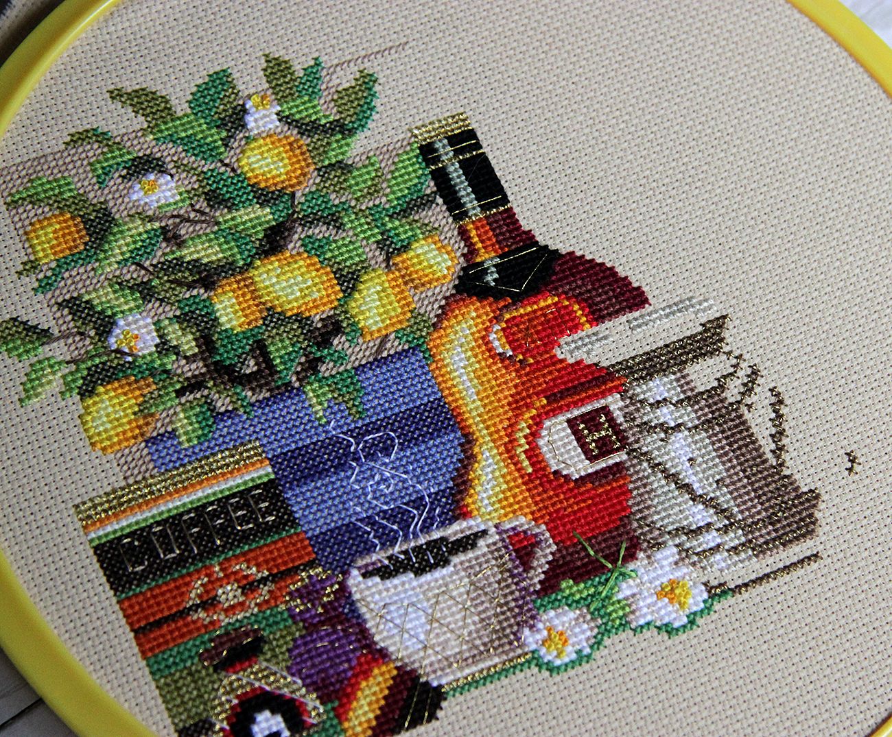 1 июля 2019 Всем привет! Сегодня я с настоящим отчетом многопроцессницы)) И для начала финиш. Овечки от Анкор. Как и ожидалось, верх работы был намного проще, чем низ, а потому вышивался значительно быстрее. Полукрестиковые горы и небо вообще вышились на одном дыхании. Результат радует, красивый пейзаж, нежные оттенки, милейшие овечки... Размер работы 32х14см на 16 аиде. Ниток осталось с запасом. Хорошо, что я заранее узнала о том, что в ключе перепутаны два бленда и овечки у меня получились нормального овечекового цвета) еще одна фоточка процесса и готовая Яблочки. Это еще не финиш, но второе яблоко из четырех готово. По-прежнему все в них нравится, но чувствую, что у первого яблока есть все шансы остаться любимым)) Изумрудный город. Вышила 5й этап. Он был очень легким, но я умудрилась ошибиться. Пришлось распороть приличный кусочек и перешивать. Нравится как легли нитки, кое-где специально подгоняю переходы и самый светлый зеленый в нитках с переходами начала вырезать. Добавила темно-зеленый металлик, он не очень ловится на фото, но смотрится красиво. ЗР Кофе. Вышились лимончики и половина турки. Очень все нравится, с обложкой даже сравнивать не стоит. было стало Лунная ночь. Здесь добавила еще немного черного. Теперь буду на этом участке вышивать все остальные цвета и буду надеяться, что эта сказочность и загадочность не пропадут)) было стало Вот и всё. Кажется пора уже начать что-нибудь новенькое)) Хозяйка смешных зверей, nadyusha, Selinta и 39 других сказали спасибо Поделиться сообщением Ссылка на сообщение