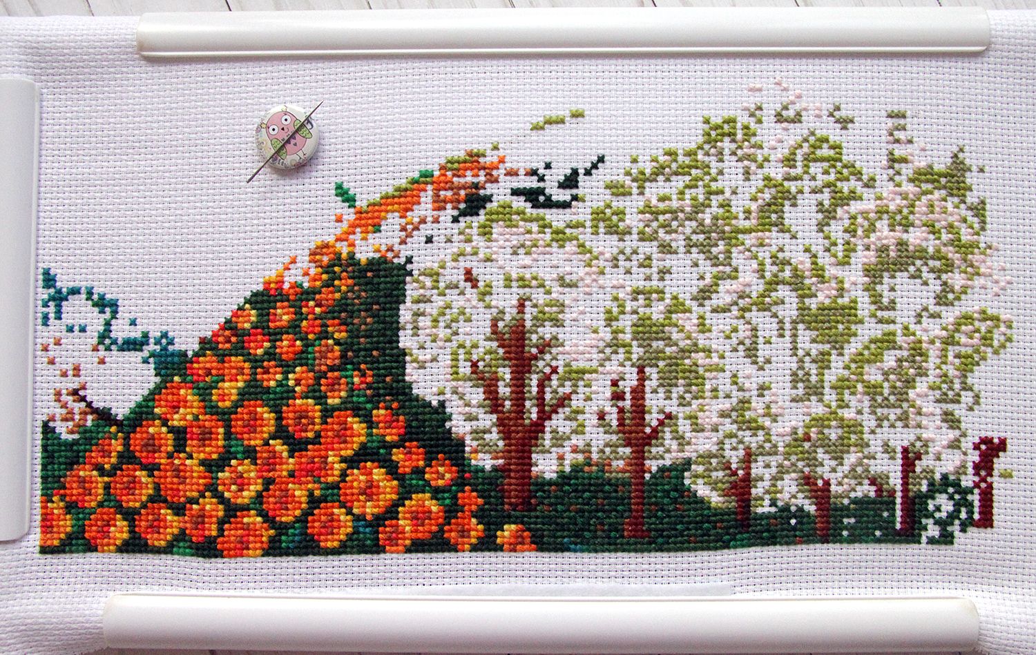 17 мая 2021 Всем привет. Сегодня отчет за две недели. На стабильные еженедельные отчеты я пока не вышла, но стараюсь)) Завершенных работ сегодня нет, но есть маленький промежуточный итог. Цветы от Жар птицы. Готов первый цветочек. В целом вышивается легко, но не очень быстро. Часто приходилось менять ниточку, особенно в верхней части. Но думаю, что я вышила самый сложный элемент из четырех. В нем самая плотная зашивка и больше всего оттенков используется. Значит дальше будет проще и быстрее. было стало Алиса. Завершен первый этап. Очень довольна сочетанием цветом, кроме яркой полоски внизу. С ней не могу определиться, то она мне нравится, то нет. было стало Риолис панелька. Растет довольно быстро. Цветущий лук вымотал мне все нервы, но получился хорош. Отдыхала на розовых лепестках. было стало Сказочная долина. Деревья становятся более пушистыми, распускают листочки... Весна)) было стало Кот шаман. Хорошеет, я считаю) Бэк шьется неожиданно легко, я готовилась к худшему. было стало В лучах заката. Подросли на пару тысяч крестиков. После обновления саги у меня в статистике появилась строчка корректировка, где приплюсовалось примерно 300 крестиков. Оказалось это отметился вышитым весь бисер, пришлось убирать. было стало Птички. Одна птаха готова и по-моему она очаровательна) было стало Вроде всё. Очень надеюсь в следующий раз принести финиш. Katrin2511, Дикая белочка, Tatiana Ch. и 31 других сказали спасибо Поделиться сообщением Ссылка на сообщение