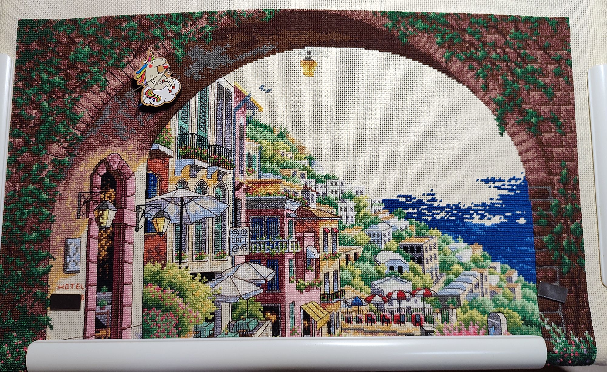 9 апреля 2022 Всем привет) Начать наверное стоит с тех работ, которые висят красными гаечками, хоть и давно уже завершены) Совиный лес. Алиса в стране чудес. Показано было всего пару этапов из вроде бы 17ти. Вышивала я своим подбором. Ниточки ручного окрашивания гамма по большей части, основа мурано какого-то интересного цвета, название не помню. Получилось слегка припыленно, но мне нравится этот эффект. Нечто среднее между теми двумя вариантами, которые предлагали дизайнеры. Процесс шел по-разному, до бодро, то вяло. Очень выбил из колеи тот самый спорный этап с огромной ногой Алисы. В итоге я не стала ее вышивать и заменила цветочками. Когда развернула полностью готовый вариант, то ахнула от удивления, насколько же здорово это смотрится) Тем не менее, решила, что ввязываться в авантюры надо с очень большой осторожностью, а лучше не надо совсем)) Промежуточные этапы опущу, сразу готовая работа Яна Минасян. Русалка. Для меня она просто девочка с синими волосами, не в смысле Мальвина, а просто волосы покрасила)) В целом работа была не особо сложной, хотя здесь 44 цвета + бленды. Самое убийственной это конечно невероятное количество бэка в волосах. К тому же было несколько жаль загромождать бэком эти невероятно прекрасные цветовые переходы. Итог нравится, но очень рада, что не стала скупать сразу половину серии. Немного процесса Итог Лансвит. Подсолнухи. Оказывается я показывала только самое начало. В наборе идет 16 аида, но я заменила на Линду окрашенную чаем. Когда меняла, была уверена, что это мурано)) Благо ниток хватило) Крестики вышивались просто прекрасно. Плавные переходы завораживали на протяжении всего процесса. Сделаны они за счет большого количества блендов, но я с блендами дружу, поэтому их наличие меня не расстраивает. В наборе всего 17 цветов мулине, но плюс к ним 16 блендов) А вот бэк здесь сложный, многоцветный и мало где вышиваешь хоть сколько-нибудь продолжительную линию одного цвета. В общем повозиться пришлось, но результат шикарный! Я в восторге от листьев и серединок подсолнухов. Процесс Итог Classic Design. Рождественские мишки. Мишек я дошила и оформила, хотела сфотографировать на улице в снегу, но не случилось) Поэтому просто фоточки мишек без антуража. Вышивались прекрасно. Пластиковая основа Darice была в наборе. Пара минусов: В одном медведе один значок был неверный. Именно в схеме, я сначала грешила на перенабор. И не хватило черных ниток. Ну и Dimensions. Прибрежный вид. Одна из самых долгих моих работ. Начат был в ноябре 2019, закончен в январе 2022 Почти всю дорогу вышивался без энтузиазма. Я вообще поняла, что у меня сложные взаимоотношения с Димом. Дошился только когда я взяла себя в руки и сказала надо) Работа большая 38х30см на 18 аиде. Удивительно, что темная арка вышивалась пожалуй легче, чем все остальное) Тоже добавим фоточек процесса И итог Не просто оказалось искать, собирать фотографии за полгода. А на некоторые работы у меня даже не было итоговых фоточек. Вот что значит не писать отчеты на стиче) Постараюсь постепенно разгребать свои фото-завалы и покажу, что вышивалось и вышивается сейчас. Всем спасибо, кто заглянул! Буду рада видеть и стареньких и новеньких участников форума Dragonfly37, Хозяйка смешных зверей, Путешественница и 35 других сказали спасибо Поделиться сообщением Ссылка на сообщение