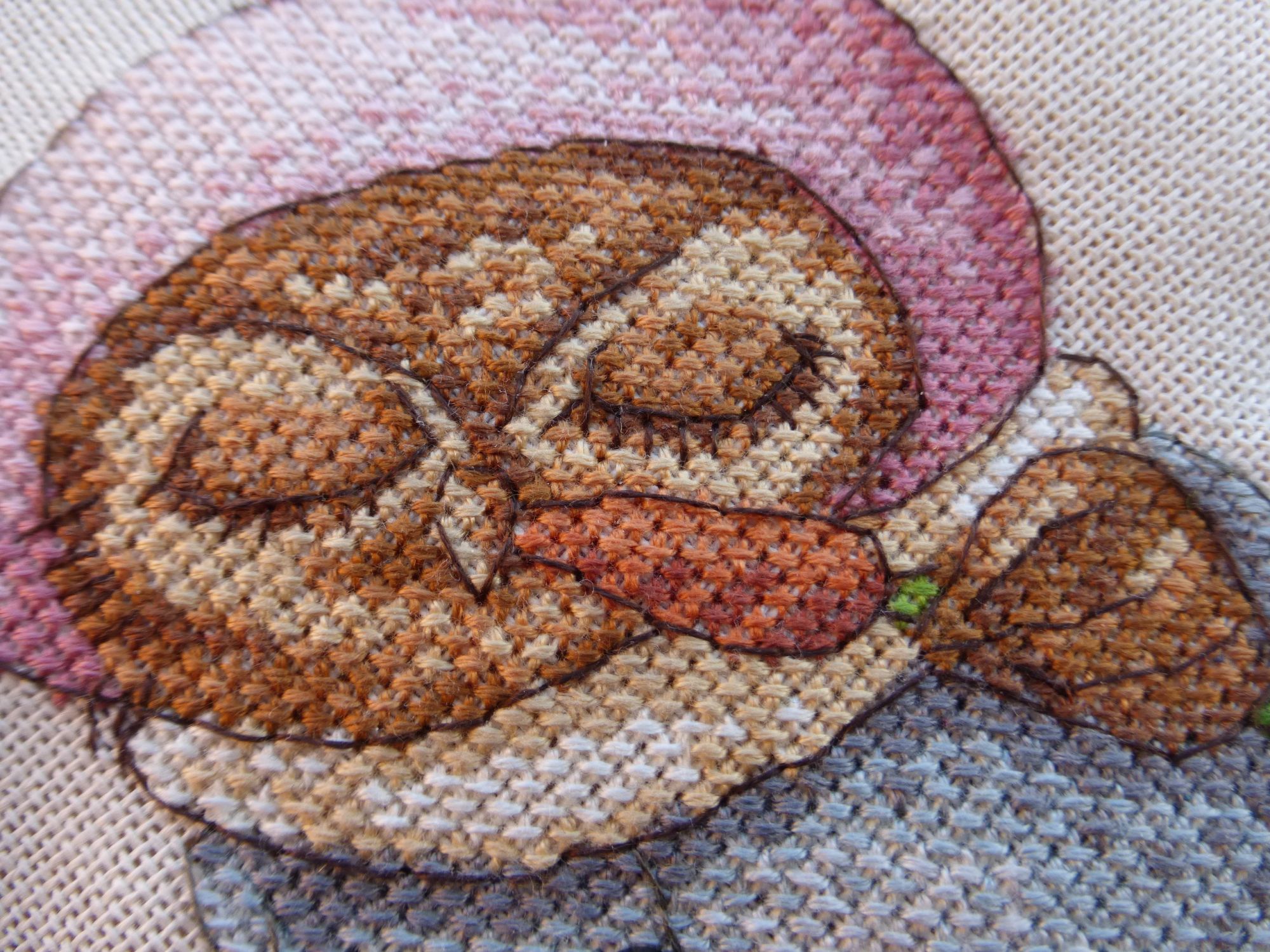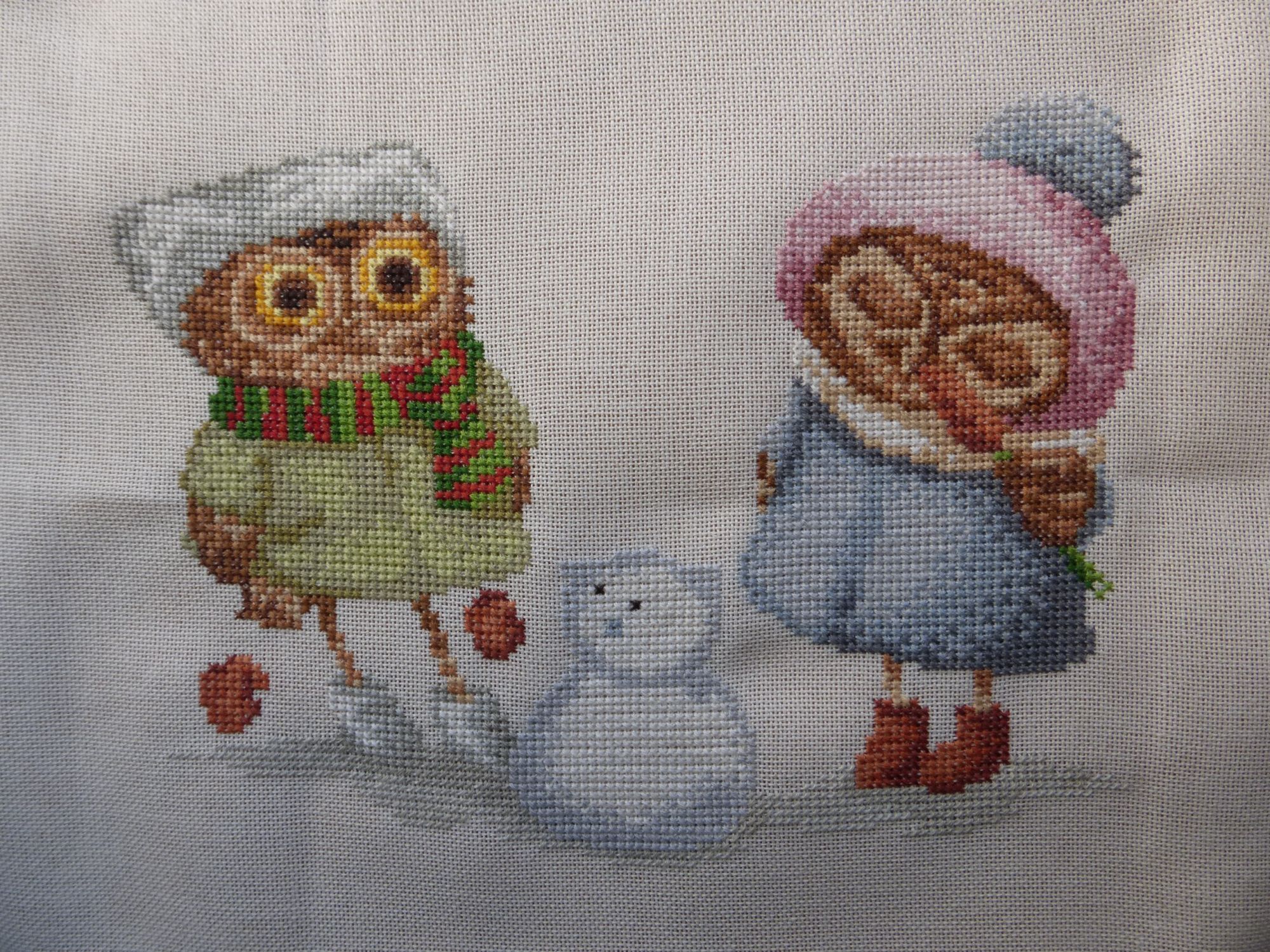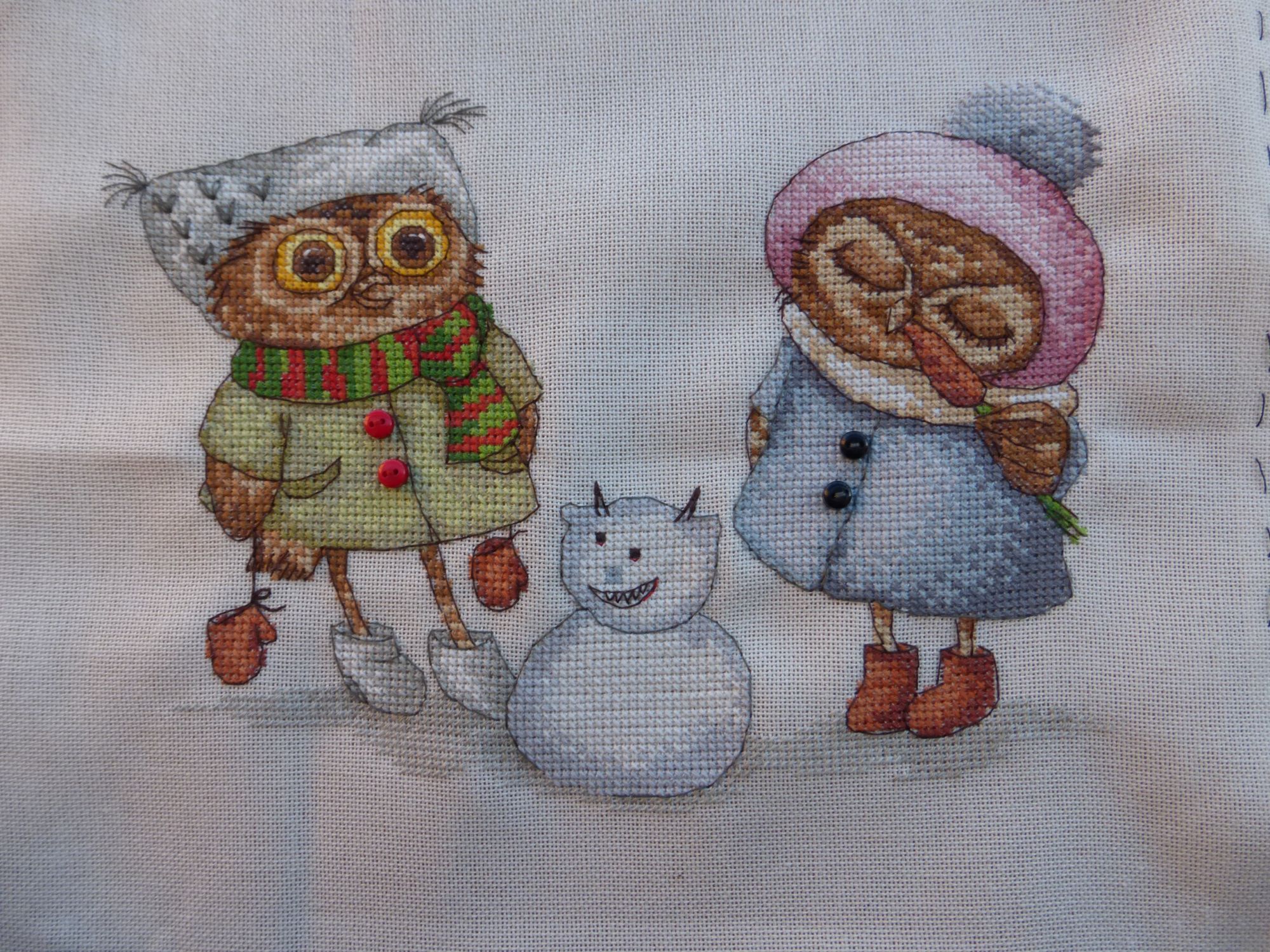 17 марта 2016 Всем привет! А к нам неожиданно нагрянула весна, наконец-то светит солнце. Пусть еще не цветут деревья, а почки только наклевываются, да и за окном минус, но зима уже отступает, это чувствуется в воздухе. И настроение отличное. Пионы и колокольчики Очередной этап пройден, опять же не до конца успели сделать то, что задумали - небольшой пион остался не вышитым. а еще обнаружили забавную вещь: я не дружу с колокольчиками, совсем не дружу, а Сережка с пионами. Колокольчики мелкие, в них всего 3 синих цвета, но 2 из них я все время путаю, забываю вышить этими цветами стабильно 1-2 крестика - просто мистика какая-то. А у Сережки в пионах крестики ровно не ложатся. Так что получается, что у нас с ним здесь четкое разделение работы. Совы-оборотни и снеговик из зАда Сережка решил не затягивать наш триллер, и сегодня вы узнаете, чем же закончилась история маленького напуганного совенка. Всем известно, что совы не питаются овощами, а тут на лицо удовольствие от поедания моркови. Все потому, что это сова-оборотень! Она пришла не одна, а привела своего прихвостня - зловещего снеговика. Они вдвоем собираются захватить наш мир и надеются, что им хватит зимнего времени. Ведь они сильны, пока не растаял снег. Отважный маленький совенок, оправившись от первого испуга, издает боевой клич и собирается пустить в ход свои волшебные пуговки, которые, как говорила ему бабушка-сова, незаменимы в борьбе с нечистью. Ниток осталось еще на 1 отшив, так что, если кому-то они приглянулись, то готовы прислать. Синий кот Худо-бедно за три недели вышилась голова профессора Доуэля. Что-то пока не пойму нравится мне этот кот или нет. Пока получается нечто невнятное. Есть 2 цвета практически не отличающихся друг от друга. Рыжик был гораздо симпатичнее. И непонятные глаза, тем самым лазурным цветом. Может, когда целиком будет готов, будет лучше. Знакомый ветеринар сказал, что псевдоверсия британца. На этом все, всех обнимаю и до следующей недели. Пикусёнок, yelena, Molly21 и 65 других сказали спасибо Поделиться сообщением Ссылка на сообщение