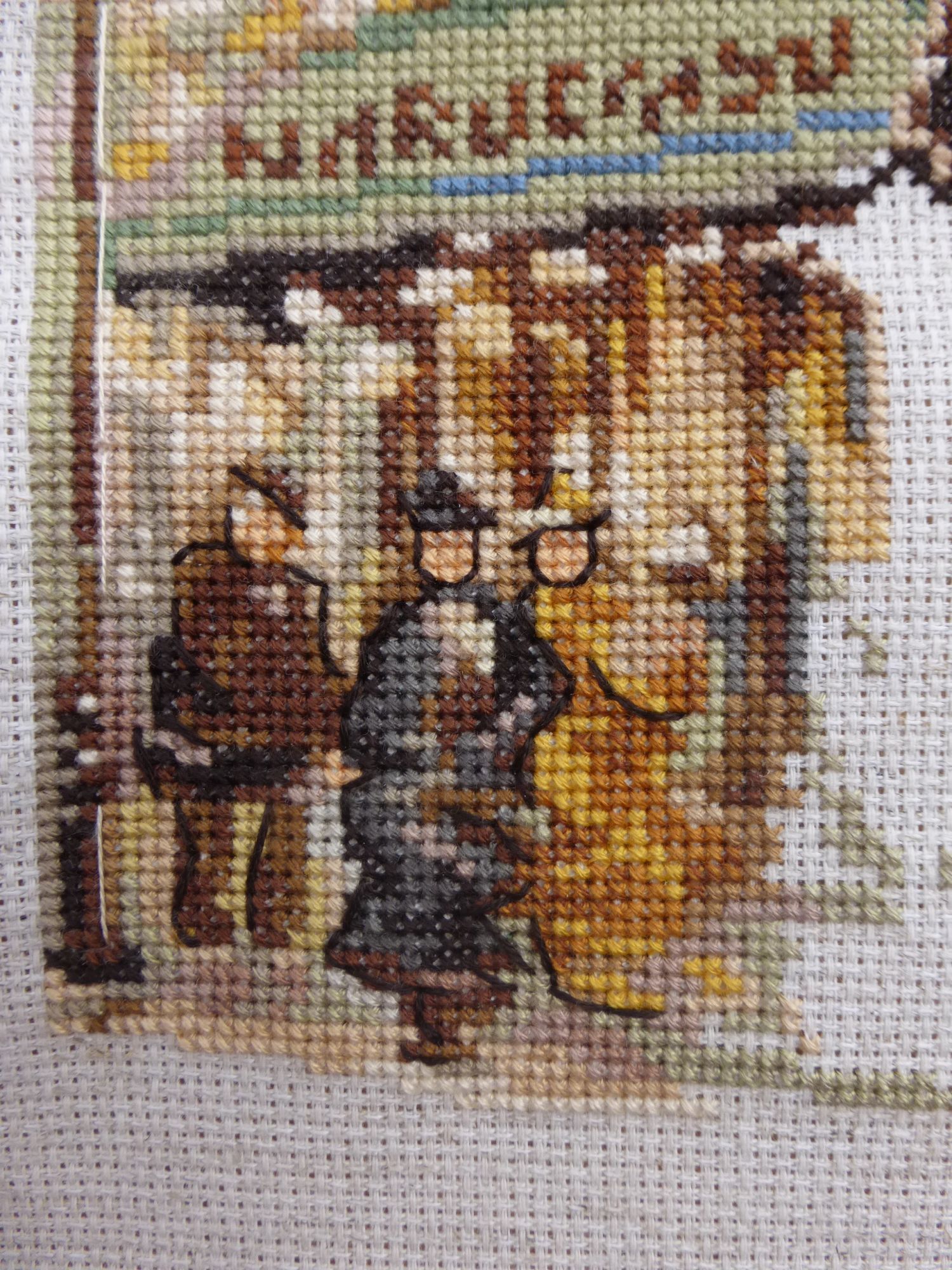 21 апреля 2016 Всем привет! Эта неделя была невероятно продуктивной и приятной во всех отношениях. Обо всем по порядку, но для начала пара фотографий разной стороны нашей нижегородской весны. Он сказал поехали, и махнул гусем (с) Мулен Руж Как же я скучала по Мулечке и с таким удовольствием окунулась в мир Парижа начала прошлого века. Цвета снова сдержанные и спокойные, но вот уже появились люди. Вышивались они, как наверное писались, мазками, небольшими группами цветов. Раз, и появился мужчина в лихо сдвинутом в котелке, два, и вот уже прогуливается пара прекрасных дам с покупками, обсуждая последние новости. Здесь впервые мне попались одиночки в количестве аж 3 штук, но они тут весьма к месту. Причал С появление дома картина замкнулась, готовы 4 угла, начинается внутренняя работа. Этот рыцкий дом был самым легким и одновременно самым трудным во всей работе. Здесь около 4 тысяч крестиков одним цветом, да еще и блендом - скукотища. Зато нитку менять не надо. Спасали маленькие детальки: самовар в окне,деревянное удобное кресло на веранде и прилетевшие порыбачить гуманоиды. Мы ржем над ними с тех пор, как увидели. Они невероятно смешные квадратноголовые существа. Сережка как мог скруглил им головы и и сделал носы, но ощущение, что их тарелка неподалеку, не покидает. Лисичка Даже не знаю, от чего получила больше удовольствия от головы с шарфиком или от платьица. Все одинаково рыжее и одинаково приятно шилось. Отличная проработка схемы, вообще никаких замечаний нет. Все очень и очень понравилось. Одиночек нет, бэк в основном по клеточкам, а который нет, логичный. Немного задержалась на кординге, боялась, что раскрутится раньше времени. В общем, кто хотел, но сомневался, то отбросьте сомнения, они замечательные. Робин Наша совиная семья укомплектовалась еще одним совом из Барнаула, этого забавного толстячка или, может, толстушку вышивала Даша Wishkers. Прошлый четверг был довольно унылым по общему настроению. Я жалела себя, вы жалели меня и вообще. И тут, образно говоря, прибегает всем известная монстрочка, с криком: "Сюрприиииииз!" достает из-за пазухи схемы кресла и замков Алисы Океанас. Что тут началось. Прям реальная внутренняя движуха. Мне срочно надо было начать что-то из этого вышивать. О замках мечтала давно, так что выбор состоялся в секунды. Дорогая, Аня, ну вот огромное тебе еще раз спасибище за поднятие моего унылого духа и за возвращение вышивального настроя. Обнимаю, целую. Замки схема Алисы Океанас по рисунку Ксении Мамаевой лен Белфаст 32, цвет 3609/5139, ДМС по ключу. У Ксении совершенно потрясающие картины, с особым настроением и романтическим флером мира фентези. Эти замки меня покорили, как только попались на глаза. Вышивать начала сразу, под основу уже давно выбрала голубой винтажный лен. Схема пока очень нравится, она без лишних заморочек, весьма логичная. На первый взгляд отсутствуют петиты, дробные крестики и не видела пока что одиночек. ДМС 32 цветов. Начав вышивать, окрестила Алису - девушка-бленд, за большое их количество. На 23 чистых цвета в крестах 23 бленда. На отшитой башенке соотношение 6 чистых к 10 блендам. Неудобств особых нет, для блендов использую Дубко. Процесс увлекает и радует то, что получается. Ну а дальше я пошла вразнос. Медведь Уильям Heritage TWW149 William In TheWindow Увидела его в теме Клейтона, девочки многие активно стали его вышивать. Со