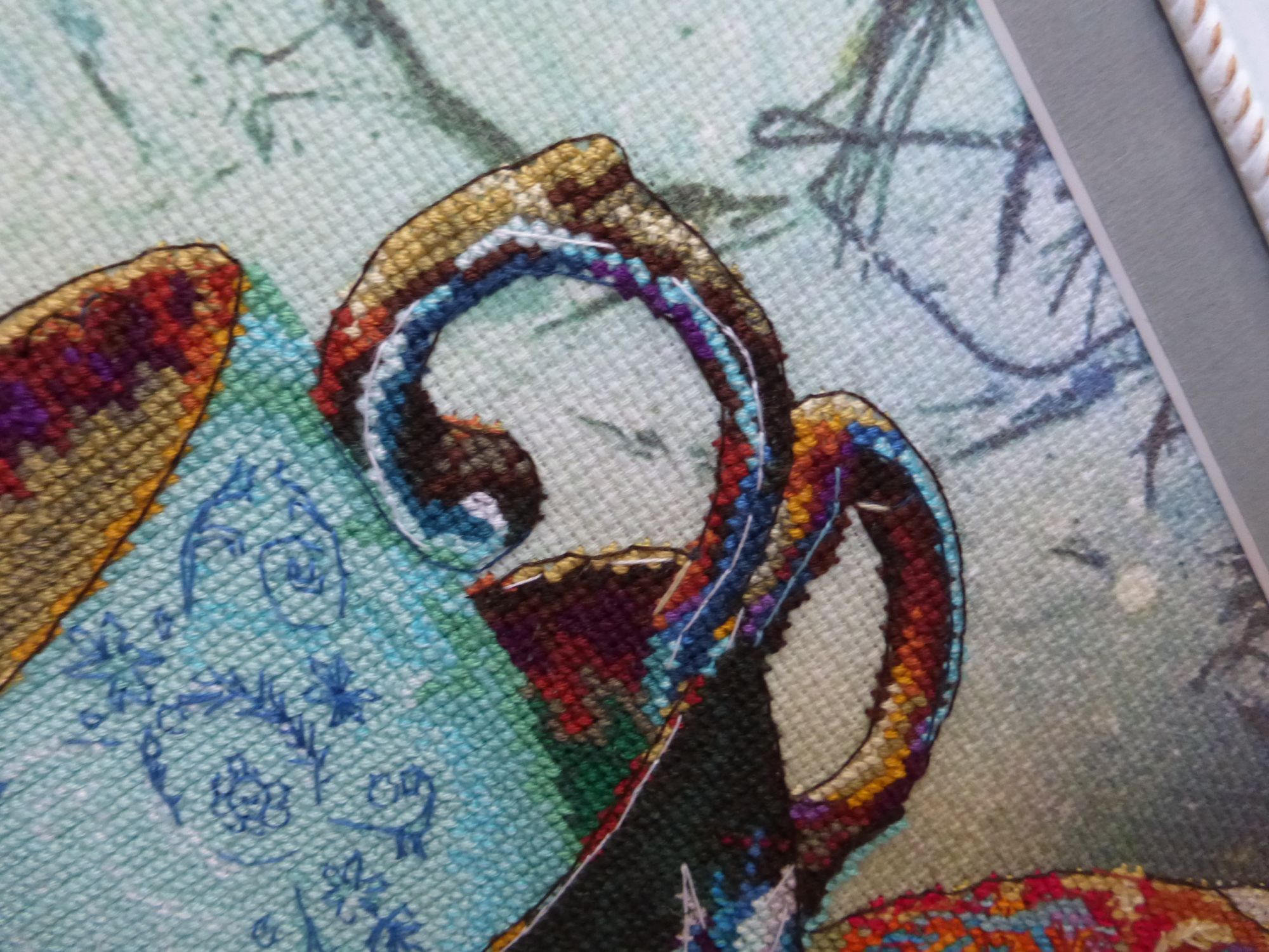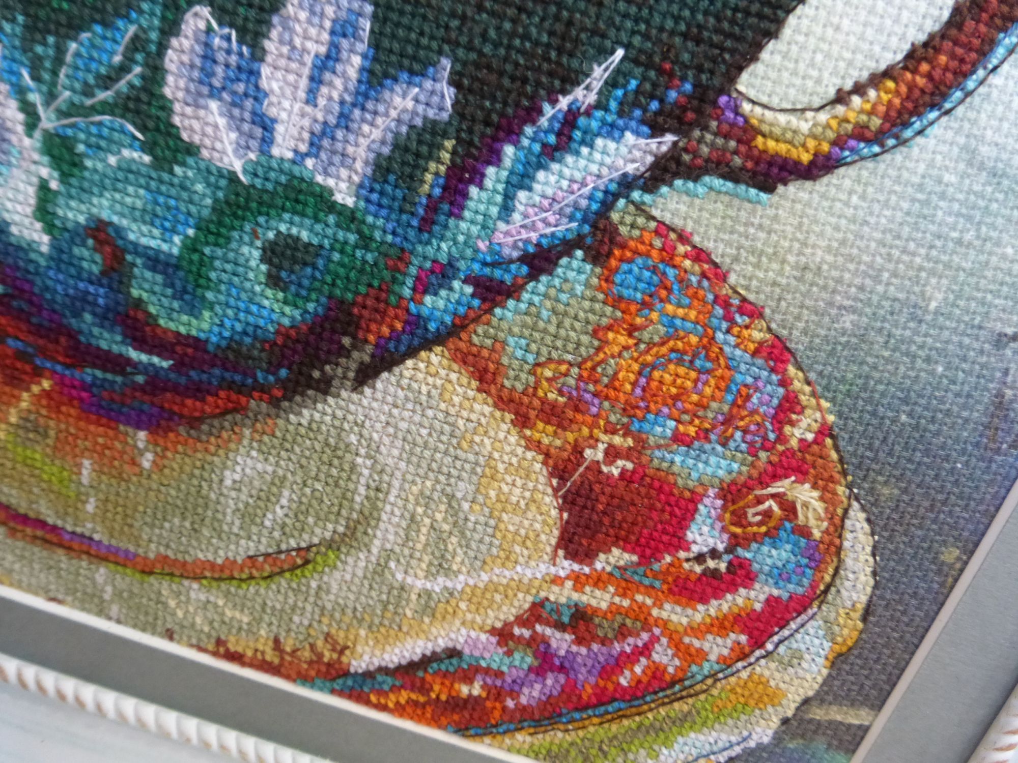 6 октября 2016 Всем привет! Часть первая: ФР Сегодняшний отчет пишется с особым настроением, ибо хороший такой заряд позитива и впечатлений я получила, скатавшись в выходные в Москву. И дело даже не в самой выставке, а скорее в отличной компании, в которой я провела эти дни. О ФР было много сказано и показано уже, так что я просто поделюсь короткими заметками о том о сем. В субботу было довольно немного народу, нам все удалось рассмотреть вблизи, что-то даже и не по одному разу, при этом не толкаясь и не работая локтями, чтобы куда-то прорваться. Сложилось впечатление, что в прошлом году народа было больше значительно. Шаталась по выставке я в основном с Олей OlkaY, приятно осматривать экспозиции не просто с человеком, который занимается вышивкой, а еще и в большей части разделяет твой вкус. Жаль, что Оля Путешественница потерялась в районе стенда с Алисой, а вот позже к нам присоединилась Света Krelina, которая веселила нас гормональными всплесками в плане покупок и желаний. Периодически встречались знакомые лица со стича. Некоторые быстро идентифицировались, некоторые не сразу. Например, встретили мы двух прекрасных девушек, которые сказали мне: "Привет, Ася, ты нас узнаешь?". Тут я начала в панике метаться, но мозг-таки выдал инфу, что это Маша с Цыпой. Естественно самый желанный стенд был РТО, и он не разочаровал совсем. Я наконец-то встретилась с моим любимым волчком и ухватила его за бочок. Очень понравились ботинки, хотя многие настроены против них, но там такие четкие шнурки. А еще хороша русалка, не понятно куда ее, но хочется. Поразил отшив кота с шариками, он очень яркий и контрастный, шарики просто светятся. Ну а сов просто должен быть в коллекции на память о прошлой ФР Приятно удивил простенький кардинал, за счет фактурности полукреста смотрится интересно. А вот чашки почему-то разочаровали, совсем не ожидала печатный фон, думала, что вся эта красота вышивается. Из пейзажиков понравился один из условного триптиха. А при взгляде на маяки возникает только одна мысль - в робин их. Многочисленные петухи оставили равнодушными, хотя домашним понравилась парочка заглядывающих в экран. Разочаровала абсолютно маленькая экспозиция от МИ. Ну как так можно, мелкий закуток, в основном подушки, весьма неплохие, если не будет в наборах замены канвы. Не было даже новинок весны. А ведь специально ехала туда посмотреть на осенний венок с шиповником и ежевикой. Обиделась я на них. Да, Маняшик, твои бутылки прекрасны, хоть и большие. На мой вкус лучше, чем книжки значительно. А Чаривна Мить вообще удивила. Сидели там три сурьезных мужика, которые заявили, что они не торгуют наборами. А зачем тогда приезжать было? Только подразнили интересными дизайнами и оставили неприятный осадок. А кролики были очень неплохи. Риолис порадовал меня только драконом, красивый принт, что называется, буду думать. Если и шить частичку, то его. А отшивы их работ продолжают удивлять в нехорошем смысле. В этот раз мы увидели такие чудовищные фрузелки, что просто челюсть отпала на пол, разве можно такое привозить и выставлять. Мы даже похихикали с Олей, что самооценка растет прямо на глазах. А еще увидела Марсаннин замок, он огромный, теперь понятно, почему такие маленькие продвижения. ))) Не поняла почему Овен раз за разом прячет свои отшивы за спины продавцов, невозможно ничего рассмотрет