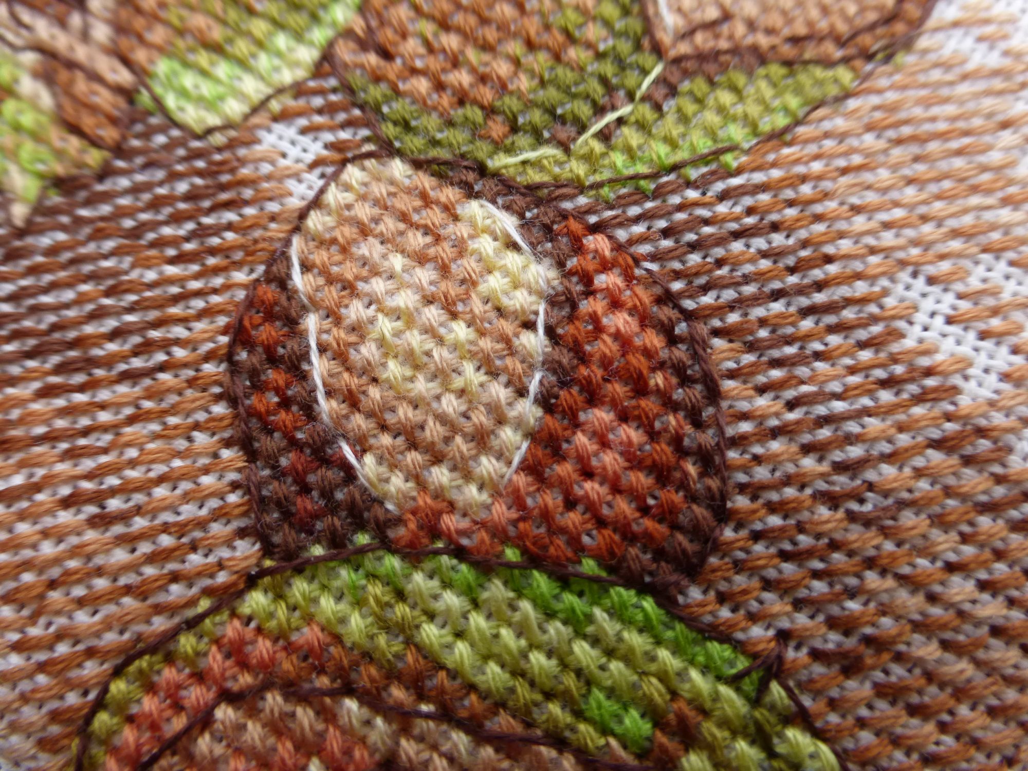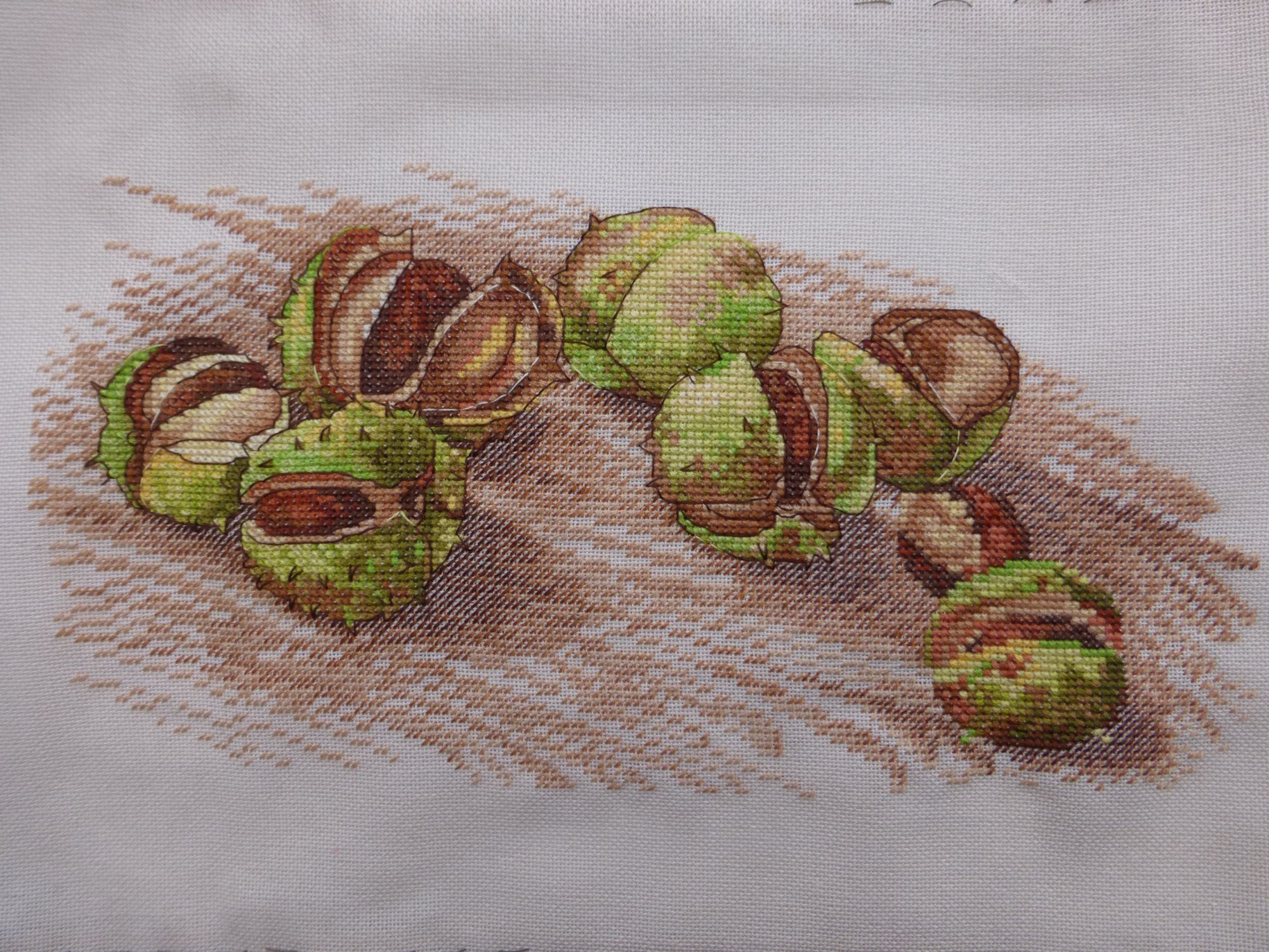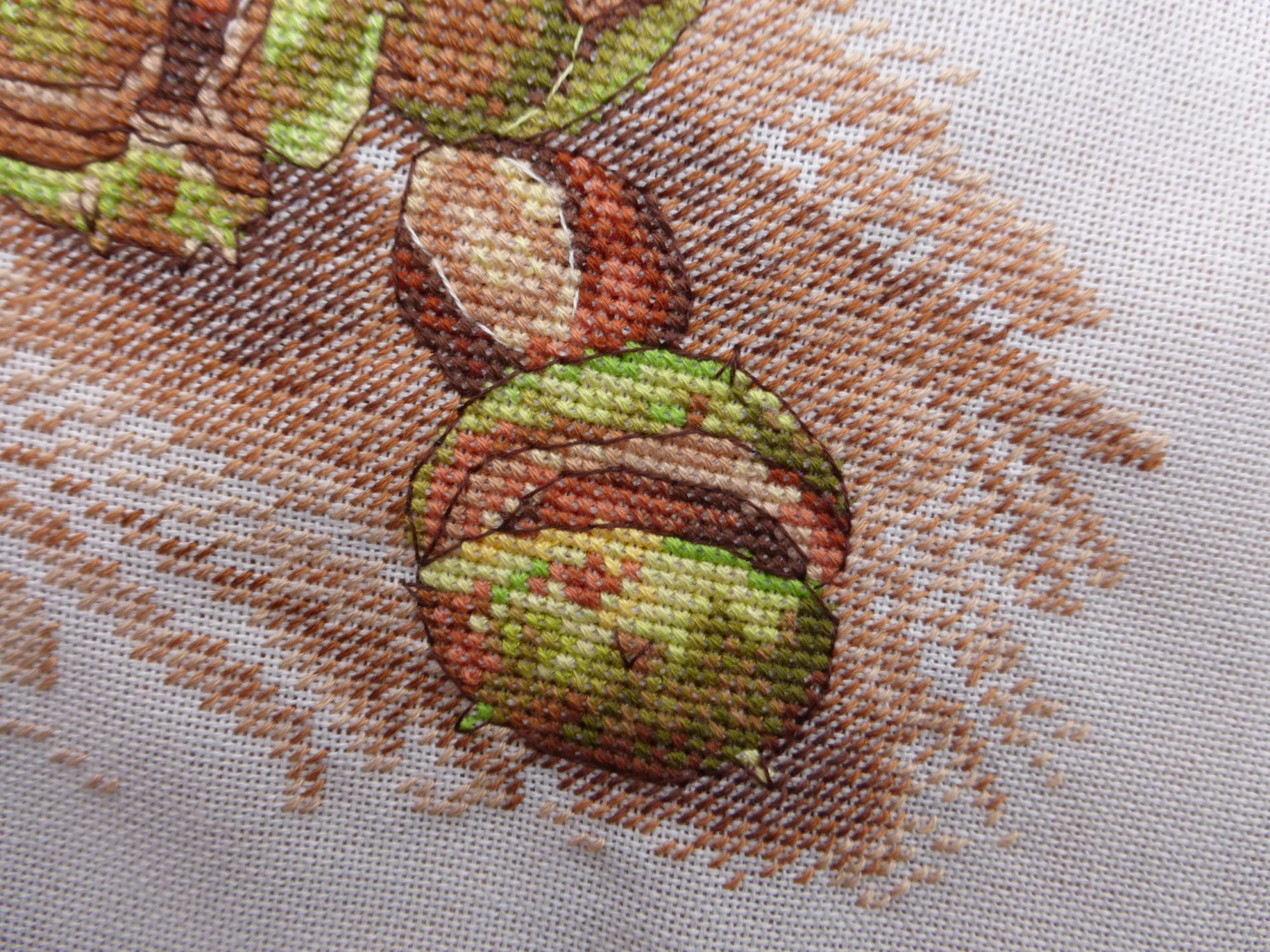 27 октября 2016 Всем привет! Сегодня перейду сразу к делу Каштаны Мой стремительный процесс завершен, каштаны полностью готовы. Картинке, схеме и тому что получилось - твердая пятерка. Процесс радовал абсолютно всем, был легок и приятен. Странное дело, но здесь полукрест шился немного более трудоемко, чем крестики. Приходилось размышлять, как же начать и закончить один цвет, так чтобы можно было легко закрепиться. Расход ниток тоже оказался невелик. Блендов совсем малое количество, удивительное для Алисы дело, но каждый из них прекрасен. Каштаны можно вышивать и на канве, так как бэк, за исключением пары-тройки стежков весь счетный Ну и вдохновившись котом от Золотых ручек... Сила воображения Вернулась к любимому мальчику с чемоданом. Посвятила ему целый воскресный день, поняла, что почему-то в этот раз стала быстро уставать от темно-синей канвы. Тем не менее прибавка получилась приличная, я уже даже дошла до нижнего блока чемодана. Теперь буду сдвигаться вправо, чтобы продолжить море с елками. Сам же мальчик на сладкое. ) Настолько утомил меня этот чудесный парень, что посетил меня невышиванец на целых три дня. Для меня это большое огорчение. Мало того, что я хотела ударными темпами закончить сам чемодан, так и планов до фига и больше. Провалявшись все эти дни с читалкой, я поняла, что реабилитировать меня может только моя любимая цветовая гамма - коричнево-зеленая. Шиповник В моих текущих процессах был только шиповник, поэтому роль вдохнуть в меня новые силы досталась именно ему. Я с удовольствием его поштопала. Понравилось, как сделана веточка с бековыми шипами. А лист удивил яркостью. Фотография не передает цвет, дает более приглушенный вариант, как и обложка. А на самом деле это очень ярко. Пока немного режет глаз, думаю, что для гармонии должны появиться сами шиповнички. Ну а потом моя дорогая подружка Олик Путешественница сделала мне инъекцию добра, кинув в меня желанной схемкой, в желанных сейчас сердцем коричневых цветах. Рыба Jane Eyre #15863 (серия "Стимпанк") Я давно на эту чудесную рыбину смотрю влюбленными глазами. Внимательно наблюдаю за отшивом сына Нади чаны. А теперь она есть и у меня. Рыться в нитках пошла сразу же, кое-что нарыла. Вполне хватило, чтобы начать. Шить буду на Линде 264, нитками дмс. Не хотелось белой ткани, не хотелось мелкой рыбы. Хочу много этой красоты. Первые крестики, чтобы, так сказать, застолбить начало. )) В Москве уже снег выпал, скоро выпадет и у нас, а пока только иней в тени. Так что последние, видимо, осенние фотки. liana, pepita, natalya.petkaleva и 75 других сказали спасибо Поделиться сообщением Ссылка на сообщение