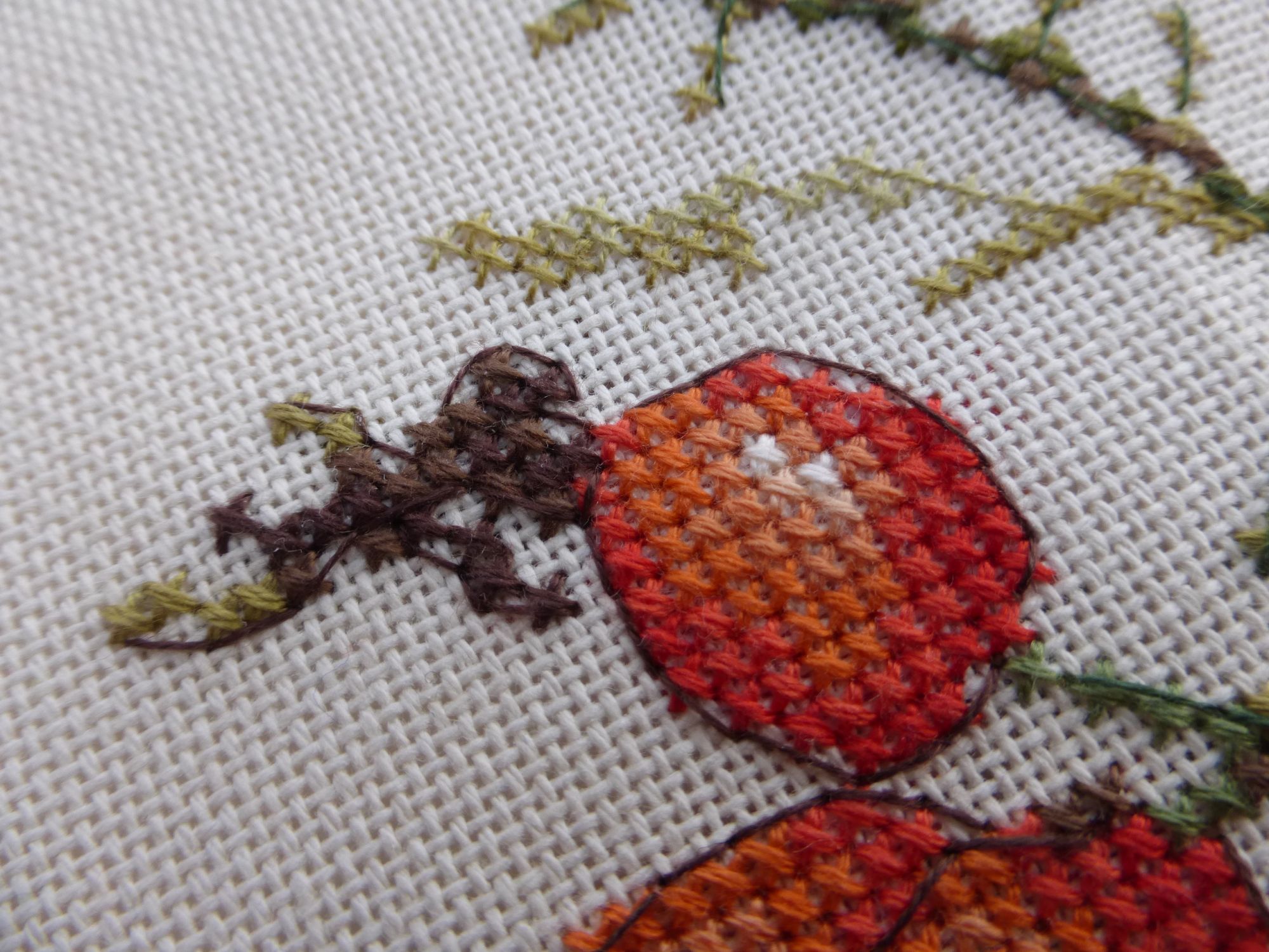4 ноября 2016 Ася, отчетик, как всегда очень аккуратен и последователен, короче, на высшем уровне! Лисичка -прелесть!!! Подарок будет очень симпатичный! Вигвамы здорово продвинулись и цвета такие потрясные! Красотень! А рога мне тоже сначала показались лосяшными, а фотку увидела северного оленя, теперь не вижу лося, только олень вырисовывается!!! Ягодки у шиповника такие аппетитные и листики такие аккуратненькие! Изумительно! В 03.11.2016 at 14:01, Каори сказал: И вот он - кривой полукрестик )) А я подтягиваю такие снизу, если ненароком получаются, иголку ввожу снизу в отверстие повторно( с любого конца полукрестика), затем захватываю иголкой за нитку протягиваю ее через нитку и снова ввожу иголоку в то же отверстие, получается как небольшая петля, затем снизу с небольшим усилием тяну иголку вниз и петелька лишнее у полукрестика убирает на изнанку, там только закрепить ниточку и все, идеальные полукрестик готов и ни кто не догадается каким он был раньше....Ой, надеюсь, понятно написала.... Каори сказал(а) спасибо Поделиться сообщением Ссылка на сообщение