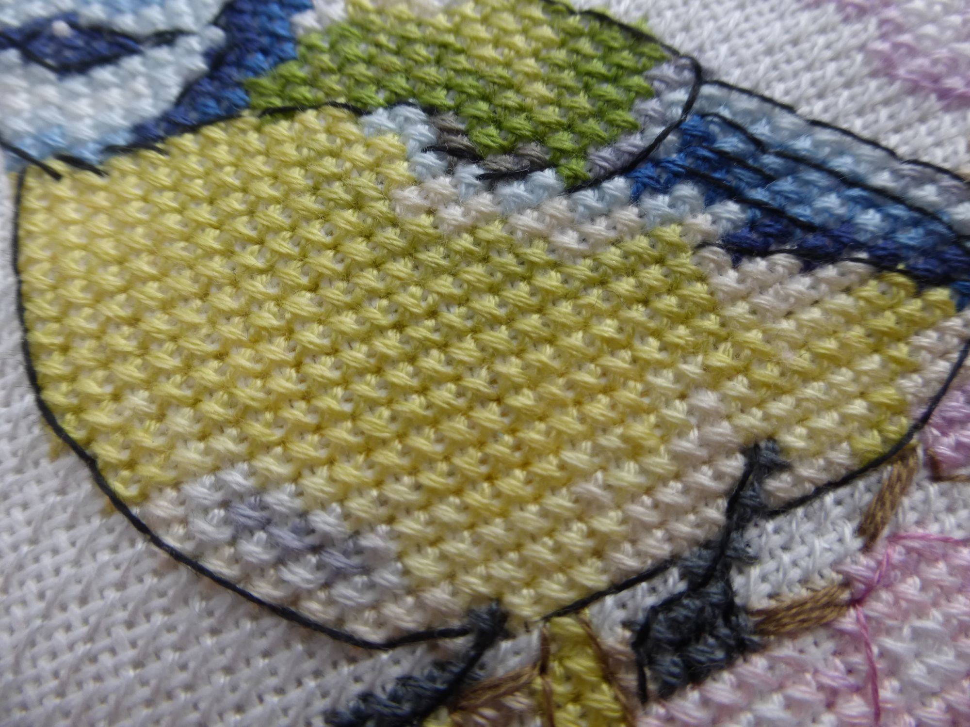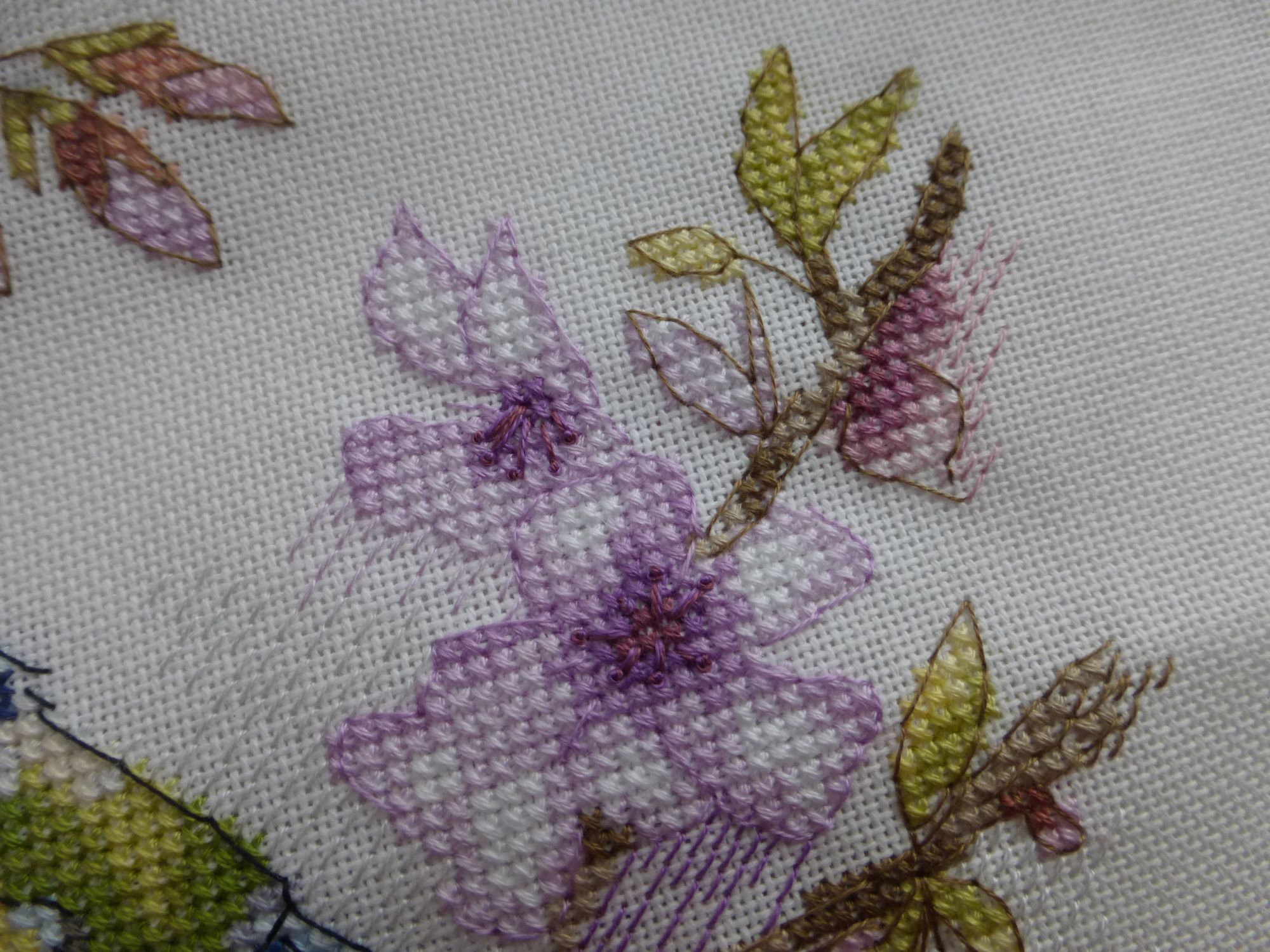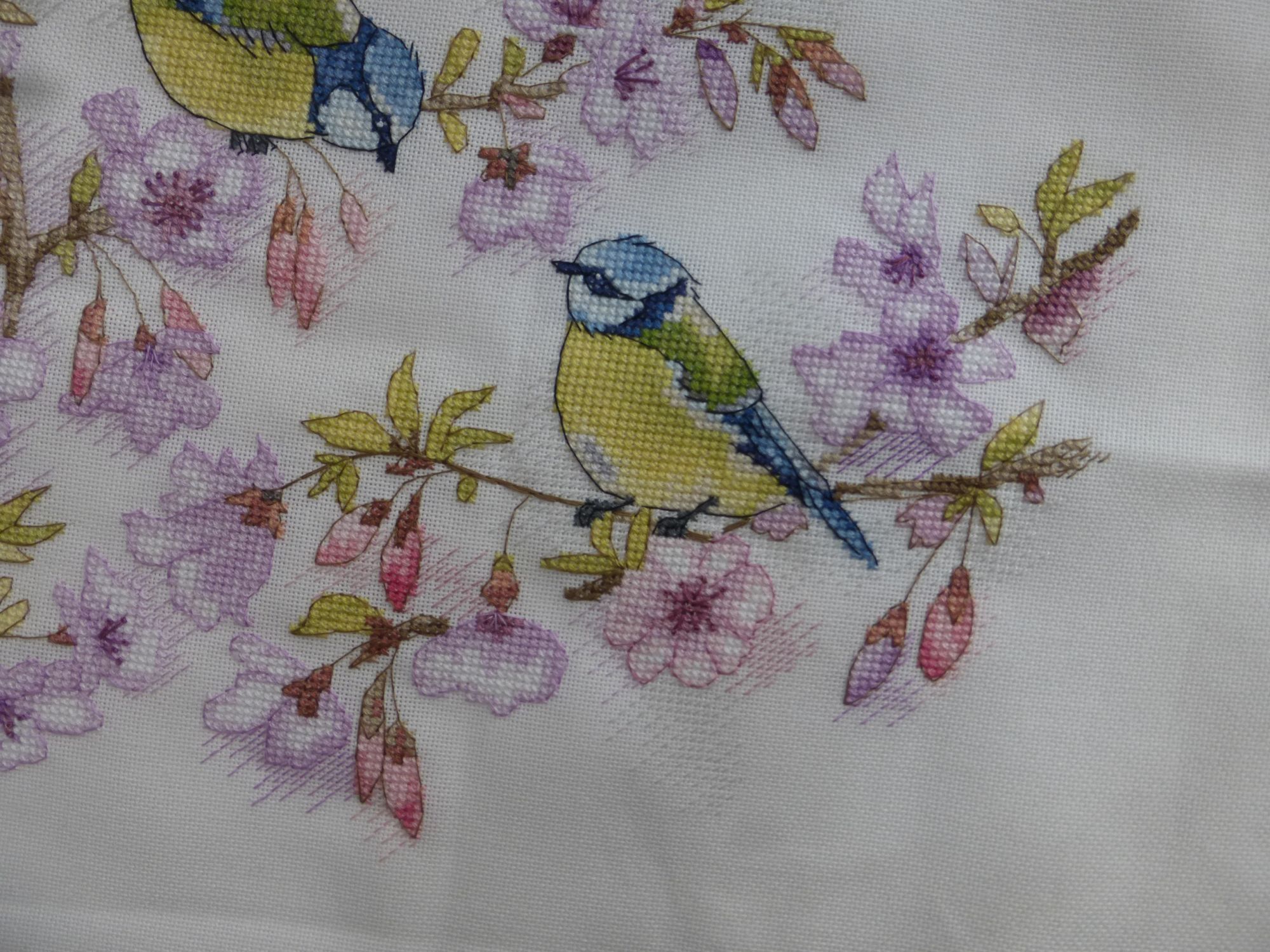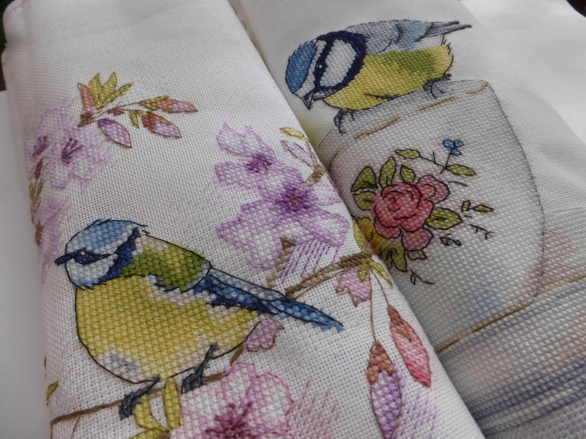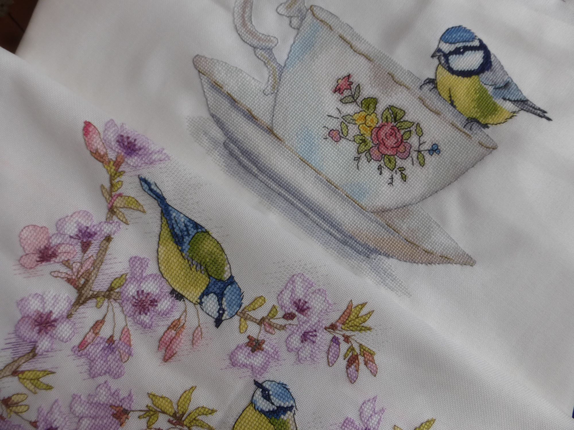 26 июня 2017 Мой сюр благополучно добрался до адресата, поэтому я решила написать о нем сегодня, чтобы не перегружать четверговый отчет. Да и сам по себе сюр достоин отдельного не привязанного к плановости поста. Мое желание поучаствовать в сюре, было удивительным даже для меня. Я вот честное слово не собиралась, а потом бац и смотрю, что уже написала, что участвую. Мистика, ей богу, я тут совершенно ни при чем. Татуся предложила мне на выбор три темы, поскольку они уже представлены в сюре, то я их спокойно оглашу: - птички-невелички; - ягодный микс; - любимое время года. Я сразу практически выбрала птичек. Во-первых, потому что ягоды для сюра я уже шила, а время года слишком объемная для размышлений тема. Во-вторых, потому что были у меня на примете некоторые птичьи дизайны, которые хотелось вышить, но себе вроде как и некуда. Речь идет о дизайнах Инны Пешковой с синичками. У меня в загашнике есть синички на швейной машинке, но для сюра, на мой взгляд, они не очень годились. А вдруг попадется ненавистник шитья. Я не особый творец чего-то особенного в плане выдумки, мой потолок - подушка, посему так сразу и решила сделать классический сюр: картинка+подушка. Главное, что в голове сложился план, сделать весь сюрприз миленьким и весенним. Синичка на чашке по схеме Инны Пешковой Для картинки была выбрана синичка на чашке. Этот дизайн прекрасно вписывается в рамку и может в принципе подойти к любому помещению в доме. Я первый раз вышивала дизайн Инны, поэтому помимо всего прочего мне было интересно, как там и что там. Надо отметить, что конкретно к этой схеме у меня вообще нет вопросов. Отличная проработка и работа с цветами. Правда по размеру эта хрупкая фарфоровая чашка похожа больше на фаянс, но это уже вопрос к художнику. Легче всего вышивалась синичка, тут совсем простая схема, но получилось очень красиво. От чашки же я немного подустала, но это мой косяк, что скучно шить много одним цветом. Шила на Мурано 101, чтобы был поменьше размер готовой работы. Синицы на ветке по схеме Инны Пешковой Для второго подушечного дизайна была выбрана схема Синицы на ветке. К этому дизайну у меня было довольно много вопросов. Мне хотелось какой-то общности обеих схем, а полностью черный бэк перечеркивал все это на корню. В чашковой схеме бэк на чашке очень нежный и аккуратный, только синичка выделяется, поэтому я решила и здесь сделать так же. Выделить самих птичек черным, а цветочки сделать нежными. В теме у Милы Lunochka я уже давно наблюдала отшив этой схемы как раз-таки с заменой бэка. Именно ее цветовыми решениями я и воспользовалась. У нее же подсмотрела в некоторых местах двойной бэк для веток вместо полукрестов и одиночного. Цвета бэка для цветочков и веточек: 611 - бутоны и ветки, 554 - сиреневые цветки, 316 - розовые. Тычинки сделаны нитью в два сложения с фрузелками на концах: 3726 для сиреневых, 553+3726 для фиолетовых цветочков. Кроме этого меня не устраивали непонятные пучки вверху схемы. Если они на акварели смотрятся очень органично, то тут совершенно отдельными элементами, поэтому я их выкинула на фиг. И еще я не столь тщательно, как Мила, восстанавливала рисунок, а только кое-где меняла форму. В итоге дизайн получился именно таким, как я его видела изначально - очень нежным и милым. Кстати, здесь для синичек используются другие цвета при отшиве, что было для меня сюрпризом. Шила на