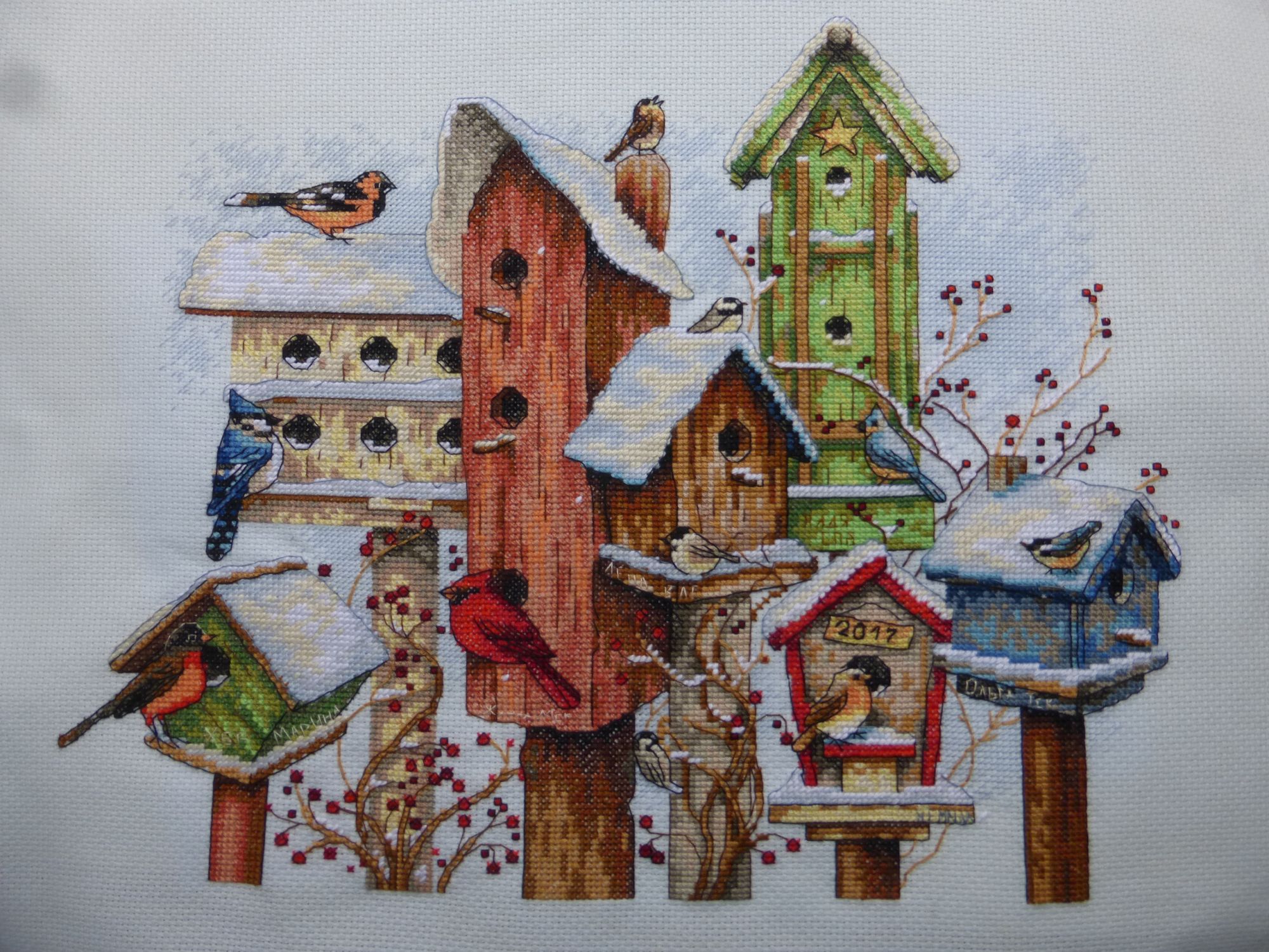 15 марта 2018 Всем привет. К нам потихоньку забредает весна, небольшими урывками, но все же. Она еще не яркая и вкусно пахнущая, а пока слепящая из-за снега и блеклая, совсем не похожая на зимние ясные пейзажи, но все же она приходит. Стало приятно гулять по набережной около реки, чем и делюсь. Скворечники А еще случилась у меня большая радость. Ко мне вернулся мой робин с Димычевыми птичками в скворечниках. Все-таки это обалденный дизайн. Очень яркий и оптимистичный. Оля Хельга, Маняшик, Жанна, Лена вышиваша, Надя и Лена Rezavy, девочки, спасибо вам. Это было круто. Я рассматривала птичек с большим интересом, они все такие симпатичные. Жанн, я в полной мере оценила твой героизм по полукресту одиночному в 6 нитей. А какие здесь цвета, а какие бленды. Сделала немного макриков, на них обнаружила дружественную шерсть кошариков девочек, скворечники будут теплыми Оливер В воскресенье гулял Кружок Клейтона, и редкий человек не увидел все эти 100500 процессов Херитаж. У меня даже немножечко передоз случился от их количества в сжатых. Столько Херитажа оказалось фатально для здоровья. Меня это событие тоже не прошло стороной. Но, поскольку я в рабстве в прекрасной игре у Татусика , то мне смысла не было начинать еще что-то глобальное, поэтому - Оливер. Его не трудно вышить за 10 дней. Дизайн старый, не во всех местах мне понятный, но мишка прикольный и шьется легко. Шарик ему буду менять на зеленый цвет, потому что с синим Оливер уже есть. Зимние поля И снова Херитаж, как ни странно. Этот процесс меня успокаивает, он релаксационный, несмотря на огромное количество недокрестиков. Я их люблю шить, они меня ни капельки не напрягают, скорее умиляют. И снова этот минималистичный бэк, а уже и забор покосившийся готов. А еще отражение его в талом снегу, всего два крестика, а уже есть объем. Кстати почему-то их нет на отшиве обложки. Да и то, что на обложке казалось просто просвечивающей канвой, оказалось на поверку белым цветом, чему я бесконечно рада. Не устану говорить Лене aleksaA за этот подарок Маячок мини РТО Ну и небольшое завершение под конец отчета. Трудно было его таааак растягивать, но я старалась. Еще один лаконичный и сдержанный дизайн от РТО. Ничего лишнего, все в тему. Некоторые считали, что трава его не украшает. Я же наоборот за траву, именно она меня и привлекла в свое время. Это как ощущения из детства, когда прячешься в высокой траве и наблюдаешь за чем-то запретным, вынашивая планы, как туда пробраться. Траву делала не чистым бэком, а с небольшим заходом на предыдущую линию, чтобы трава была более равномерной. На этом прощаюсь, до новых встреч. OlkaY, svetles, solnishko-ym и 86 других сказали спасибо Поделиться сообщением Ссылка на сообщение