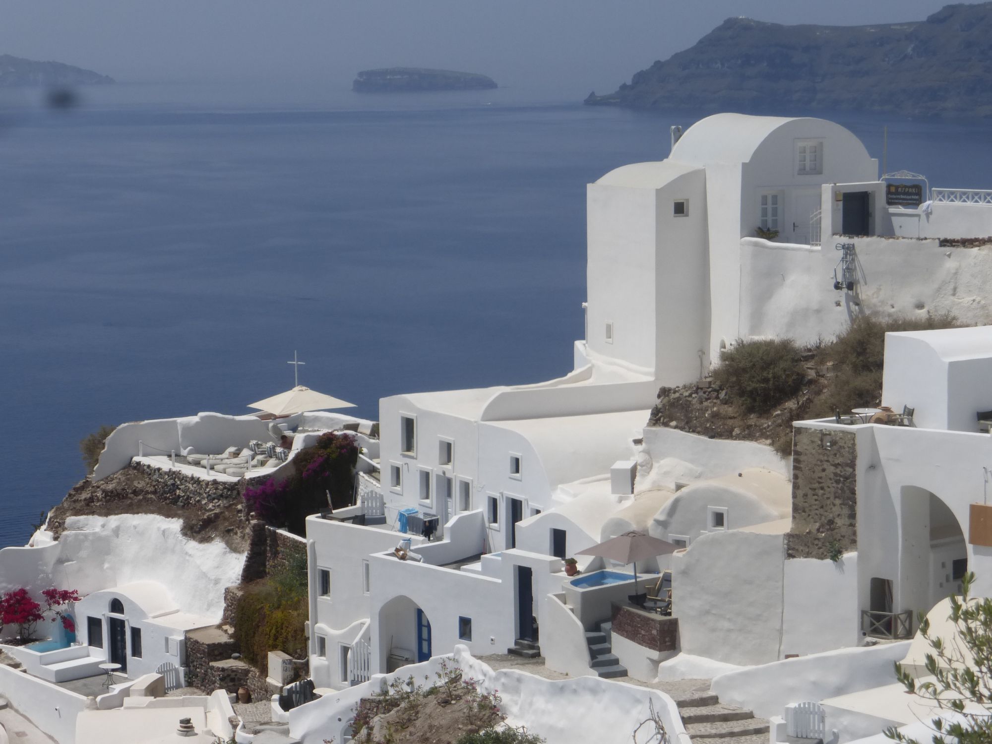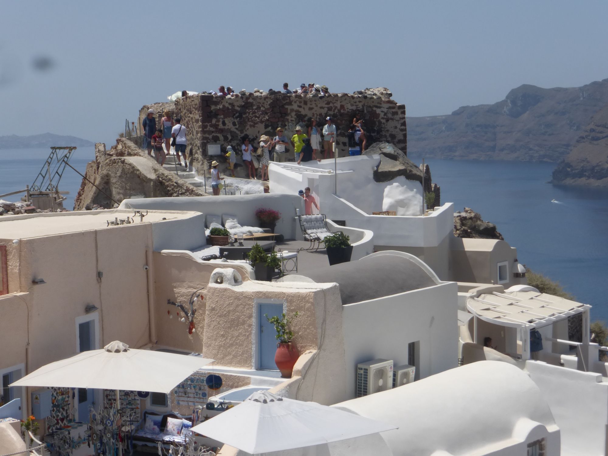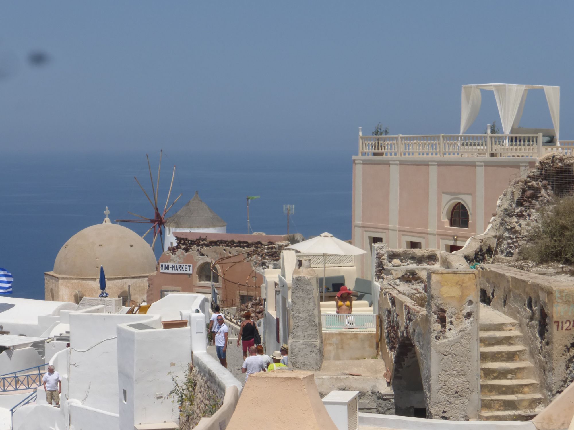 23 июня 2018 Возможно кто-то подумал, что я уже про все рассказала? Нет, еще есть парочка мест. Я как-то всегда была уверена, что довольно неплохо подкована в географических вопросах. И даже гордилась тем, что много читала и знаю. Тем больнее было падать. Санторини Я почему-то была абсолютно уверена, что это остров имени одного города, который так и называется Санторини. Свято в это верила. Поэтому, когда увидела, что есть экскурсия одного дня на него, то даже вопроса не стояло ехать или нет. Конечно ехать. Кто не знает шикарный белый город - все знают. Не по картинкам и открыткам, так по Клейтону с его панельками. Так вот к моему великому стыду в критском турагенстве я узнала сразу три вещи: - что Санторини - это прозвище, а остров называется Фира; - что красивый город с картинок (сюрприз!сюрприз!) не Санторини, а Ия; - что остров довольно большой с некоторым количеством населенных пунктов и столицей. Иногда очень приятно побыть таким вот олухом, ну честное слово. Зачем же читать историю до, когда можно послушать байки и легенды местных. Так вот вернемся к Сандорини, как называют его на Крите. Поскольку он тоже Греция и находится не столь далеко от Крита, то добраться до него можно двумя способами: на самолете и на пароме. Мы выбрали паром, потому что это интересно и, в общем-то, не очень долго. 2-2,5 часа идет паром в зависимости от волнений на море. Они кстати называют его катамаран. Мы не сидели внутри, а выходили на палубу периодически. Долго там находиться было невозможно, так как паром весьма скоростной и просто-напросто сдувало. Я ехала вся в предвкушении и с затаенным восторгом. Ну как же, место культовое, а открытки фотографии просто кричат о романтике. На повестке дня были три остановки: город Ия, столица Фира и известнейшие пляжи Перисса с черным песком. История острова насчитывает столько катастроф и неприятностей, что порой задаешься вопросом, зачем здесь живут люди. Действующий вулкан, разрушительные землетрясения ничего не оставили от старых построек за редчайшим исключением. Весь Санторини по сути новодел с 60 летней историей. И невероятный климат, при котором в тени летом бывает до 50 градусов. Ия Тот самый древний белоснежный сказочный город, навевающий мысли о восточных легендах, султанах и гаремах. А по факту - муравейник. Маленькие домики, которые гнездятся друг на друге, где пол переходит в крышу, где люди, как муравьи снуют по улицам. Я стояла на центральной улице капитанов и пыталась понять, куда в друг в одночасье пропала моя сказка? Куда подевалось очарование картинок, куда, куда ушла романтика? Гиды не рекомендуют покидать центральную улицу, потому что можно потеряться и это факт. Можно делать небольшие марш-броски влево/вправо, чтобы сфотографировать виды. И что тут говорить, виды действительно хороши, через объектив. Для меня Санторини навсегда останется городом, которых прекрасен на открытках и фотографиях. И вот оно место, куда выстраиваются очереди!!!, чтобы снять самые прекрасные закаты в мире. Ну что сказать, конечно, жителям Ии хочется верить в то, что их закаты чем-то отличаются от других закатов в море. Ну да и в путь, реклама - дело великое. Хотя что спорить на фоне белых домиков и синих крыш закаты действительно выглядят феерично, но через пальмы же тоже )))) А вообще, если отвлечься от адского пекла, в которое мы там попали, прич