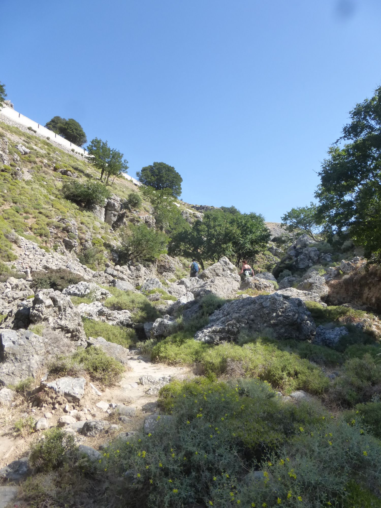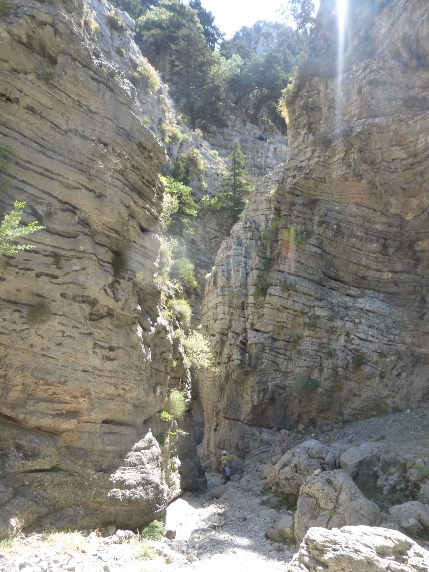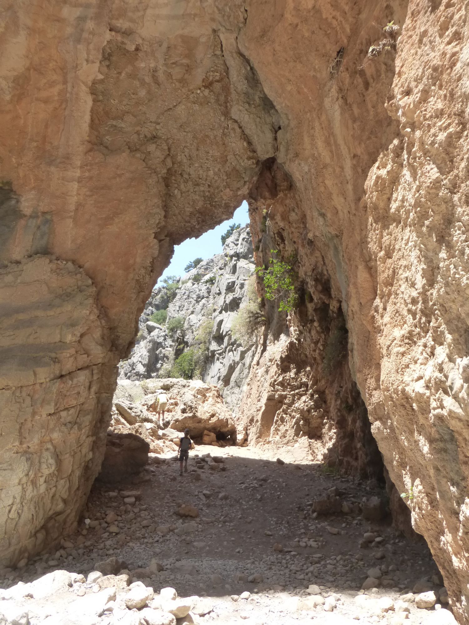 25 июня 2018 Ну и завершающим аккордом моих рассказов про Крит, будет наше путешествие по каньону. Имброс Надо сказать, что изначально мой взор и все такое пали совсем на другое место. Есть на Крите огромное ущелье Самарья, которое пользуется бешеной популярностью среди туристов. Но 16 км под палящим солнцем - это, как минимум, 8 часов пути, а у меня шестилетка и родители. Поэтому я стала искать другие варианты и нашла. Ущелье Имброс в два раза короче по протяженности, всего 8 км. По нему можно путешествовать как вверх, так и вниз. Мы выбрали путь вниз, и даже сейчас я затрудняюсь ответить, а был ли он легче. Потому что на небольших скоростях и не экстримальных подъемах, а довольно пологих, вверх идти значительно проще. Но мы выбрали маршрут вниз. Нас привезли к началу и сказали: "Топайте, у вас есть три часа на все про все, а сопровождающий будет идти самым последним, чтобы помочь, если что-то приключится. Встреча в таверне, и там же всех будет ждать автобус." Который повезет обратно на гору вот по такому серпантину, это еще половина пути и немного страшновато было. Степа, к счастью вырубился, а мелкий кайфовал от отвесных обрывов, на которых у меня сердце екало. Но вернемся в начало. Вход вполне бюджетный - 2 евро за проход, причем бродить можно сколько угодно, если приехал сам. Главное - не выбрасывать билет, потому что их проверяют как на входе, так и на выходе. Ущелье начинается с мелких возвышенностей по бокам и нагромождений камней. Собственно говоря, первый час мы и шли среди этого великолепия. Многие, проходящие мимо турЫсты, совсем не любуются природой вокруг, а воспринимают этот проход, как некий кросс-фит. Мы же не такие, наверное нам тоже люди удивлялись. Зачем фотографировать эти мелкие колючки, зачем детям залезать на каждый вертикальный огромный камень. А ведь еще можно делать пирамидки из камней. В, общем, странные мы люди. День выдался не самый жаркий, градусов 29, да с ветерком, поэтому идти было очень комфортно, учитывая, что достаточно много тенистых участков вдоль дороги. Примерно на середине пути располагается Хижина Путешественника, которую местные называют Хед, что я для себя перевела, как шапка. Там реально живет дядька, который ведет небольшое хозяйство. А еще хорошим тоном считается что-то оставить в его хижине в качестве сувенира. Фантазия у людей разная, поэтому гостевая часть домика выглядит вот так. Чем ниже мы спускались, тем выше поднимались стены ущелья. Причем, естественно, оно везде на всем маршруте высокое, просто к морю стены становятся все уже, и создается впечатление, что они вырастают на глазах. Сейчас трудно представить, что еще сравнительно недавно, этот путь был единственной ниточкой для соединения севера и юга острова. А до этого здесь шли и шли караваны ослов (смешно звучит), навьюченные тюками с товарами. Да и во 2 мировую здесь отлично прятались партизаны, несмотря на то, что Крит был завоеван. Кстати, как ни банально, именно события на Крите изначально развернули войну в другую сторону. Ведь план Барбаросса планировался на более раннее время, а Крит дал задержку. И неизвестно как бы все сложилось, если бы Германия вошла на территорию СССР в мае. Самое узкое место ущелья - 1,6м. Степик руками не достал и проявил смекалку. ))) Деревьев много, причем лиственных, которые и создают комфорный проход, а вот цветочки все, как на