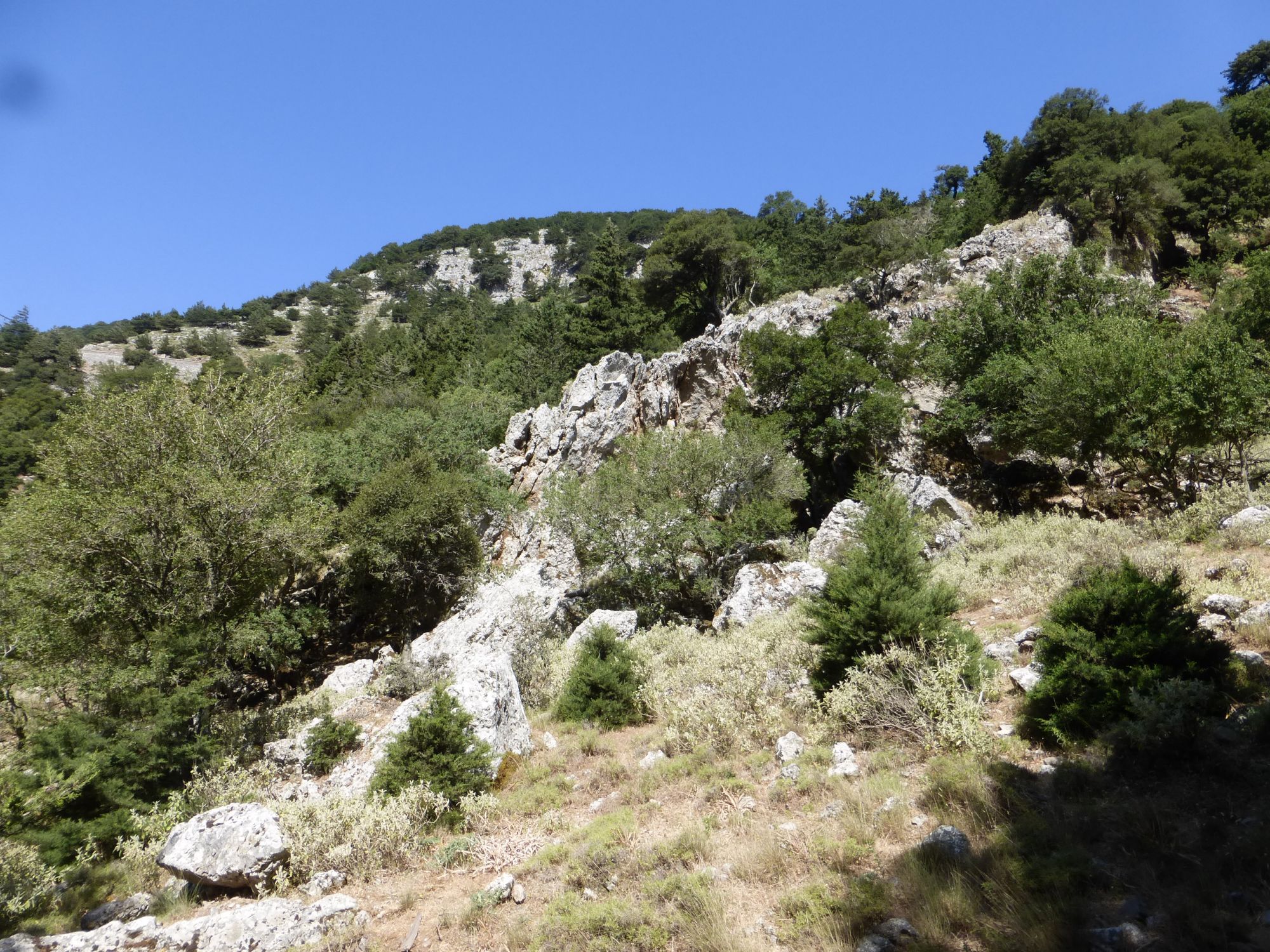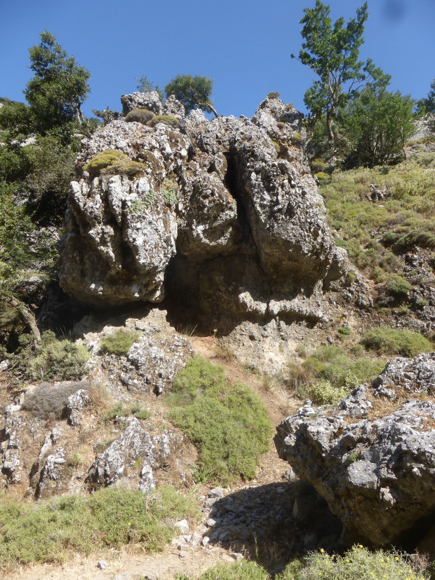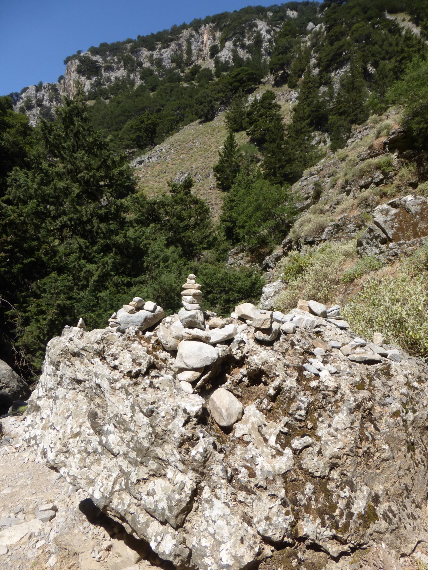 25 июня 2018 Ну и завершающим аккордом моих рассказов про Крит, будет наше путешествие по каньону. Имброс Надо сказать, что изначально мой взор и все такое пали совсем на другое место. Есть на Крите огромное ущелье Самарья, которое пользуется бешеной популярностью среди туристов. Но 16 км под палящим солнцем - это, как минимум, 8 часов пути, а у меня шестилетка и родители. Поэтому я стала искать другие варианты и нашла. Ущелье Имброс в два раза короче по протяженности, всего 8 км. По нему можно путешествовать как вверх, так и вниз. Мы выбрали путь вниз, и даже сейчас я затрудняюсь ответить, а был ли он легче. Потому что на небольших скоростях и не экстримальных подъемах, а довольно пологих, вверх идти значительно проще. Но мы выбрали маршрут вниз. Нас привезли к началу и сказали: "Топайте, у вас есть три часа на все про все, а сопровождающий будет идти самым последним, чтобы помочь, если что-то приключится. Встреча в таверне, и там же всех будет ждать автобус." Который повезет обратно на гору вот по такому серпантину, это еще половина пути и немного страшновато было. Степа, к счастью вырубился, а мелкий кайфовал от отвесных обрывов, на которых у меня сердце екало. Но вернемся в начало. Вход вполне бюджетный - 2 евро за проход, причем бродить можно сколько угодно, если приехал сам. Главное - не выбрасывать билет, потому что их проверяют как на входе, так и на выходе. Ущелье начинается с мелких возвышенностей по бокам и нагромождений камней. Собственно говоря, первый час мы и шли среди этого великолепия. Многие, проходящие мимо турЫсты, совсем не любуются природой вокруг, а воспринимают этот проход, как некий кросс-фит. Мы же не такие, наверное нам тоже люди удивлялись. Зачем фотографировать эти мелкие колючки, зачем детям залезать на каждый вертикальный огромный камень. А ведь еще можно делать пирамидки из камней. В, общем, странные мы люди. День выдался не самый жаркий, градусов 29, да с ветерком, поэтому идти было очень комфортно, учитывая, что достаточно много тенистых участков вдоль дороги. Примерно на середине пути располагается Хижина Путешественника, которую местные называют Хед, что я для себя перевела, как шапка. Там реально живет дядька, который ведет небольшое хозяйство. А еще хорошим тоном считается что-то оставить в его хижине в качестве сувенира. Фантазия у людей разная, поэтому гостевая часть домика выглядит вот так. Чем ниже мы спускались, тем выше поднимались стены ущелья. Причем, естественно, оно везде на всем маршруте высокое, просто к морю стены становятся все уже, и создается впечатление, что они вырастают на глазах. Сейчас трудно представить, что еще сравнительно недавно, этот путь был единственной ниточкой для соединения севера и юга острова. А до этого здесь шли и шли караваны ослов (смешно звучит), навьюченные тюками с товарами. Да и во 2 мировую здесь отлично прятались партизаны, несмотря на то, что Крит был завоеван. Кстати, как ни банально, именно события на Крите изначально развернули войну в другую сторону. Ведь план Барбаросса планировался на более раннее время, а Крит дал задержку. И неизвестно как бы все сложилось, если бы Германия вошла на территорию СССР в мае. Самое узкое место ущелья - 1,6м. Степик руками не достал и проявил смекалку. ))) Деревьев много, причем лиственных, которые и создают комфорный проход, а вот цветочки все, как на