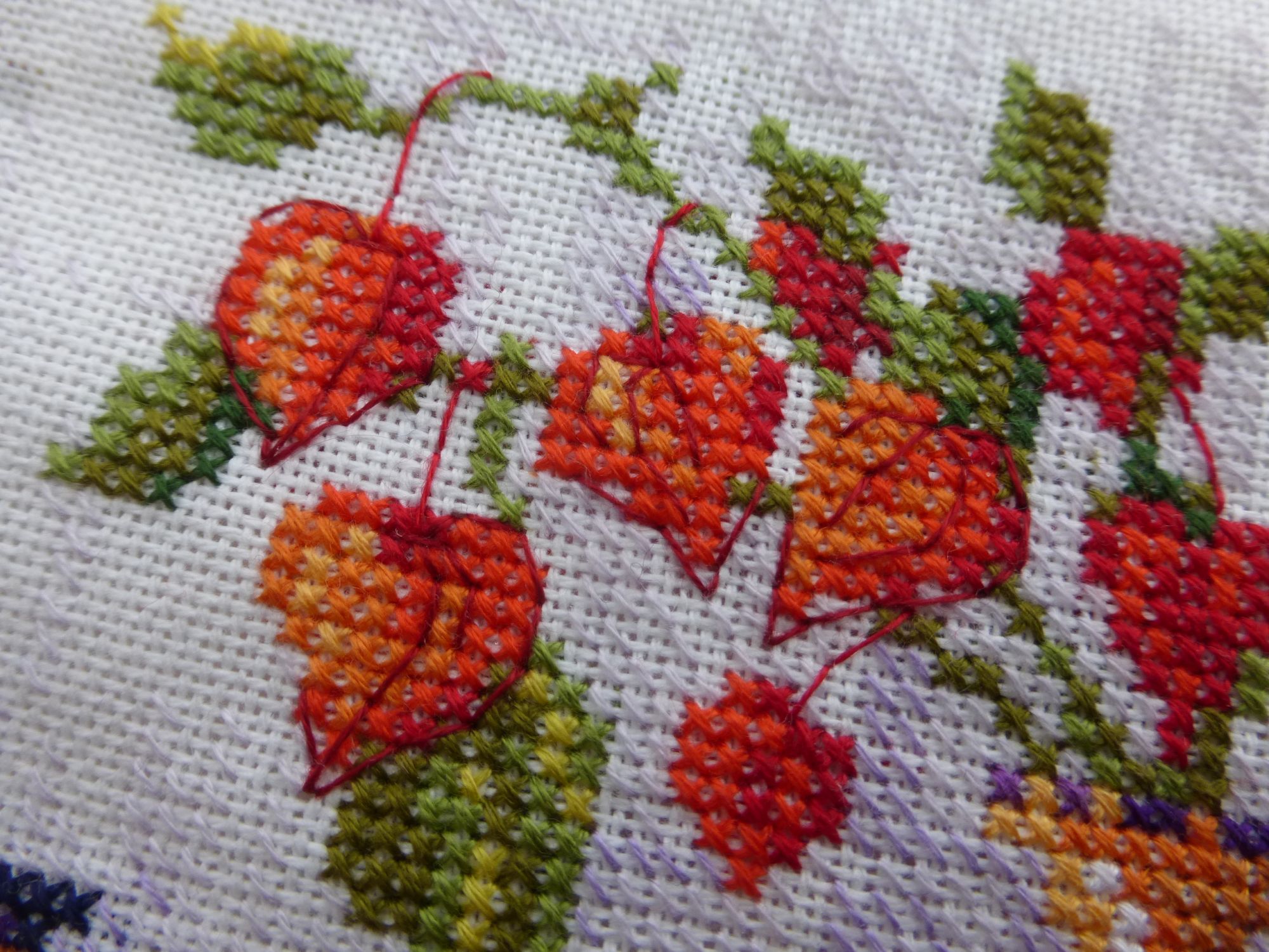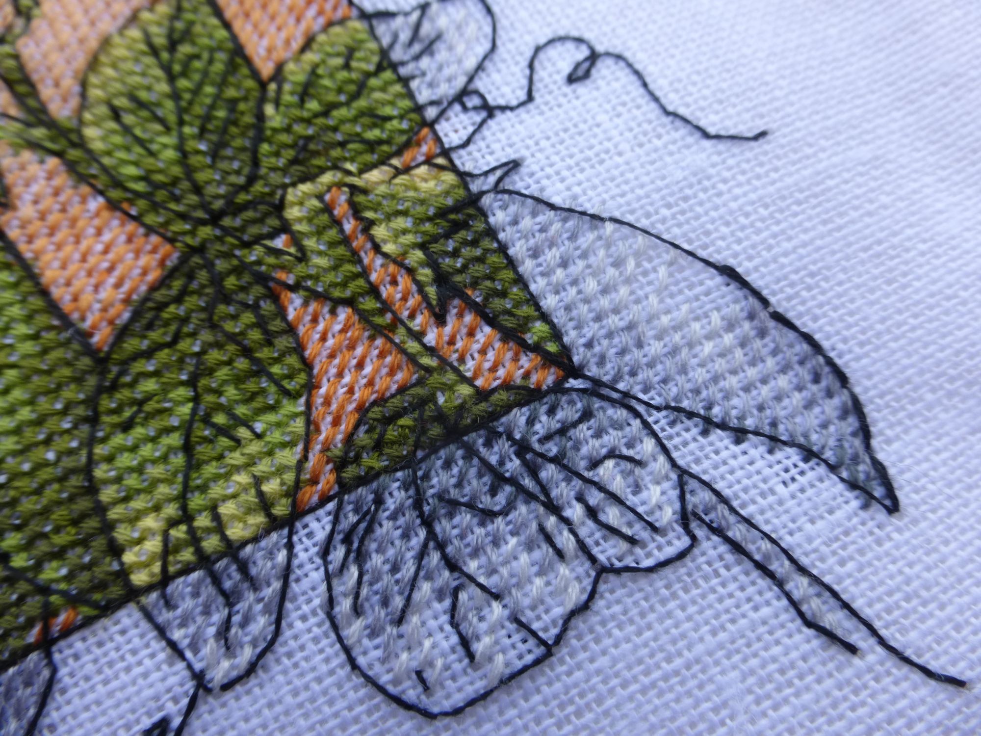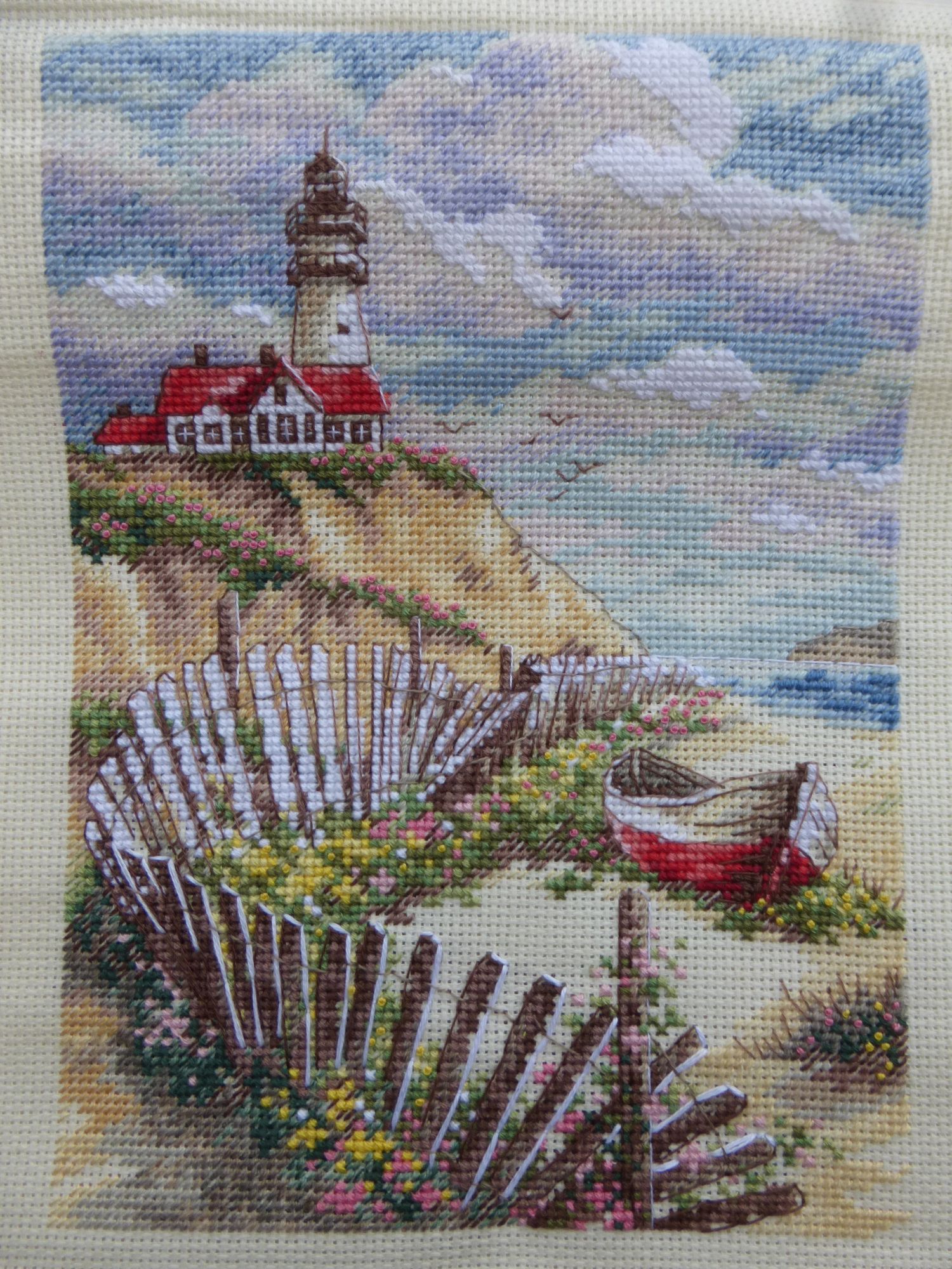 25 октября 2018 Всем привет. Специально для Лены titania еще немного нашей осени для излечения хандры. Она уже немного другая, не такая яркая, скорее уже багряная, сдержанная, но прекрасная во всех своих проявлениях будь то солнце, ветер или дождь ) А далее совсем не осенний, а частично зеленый летний отчет в честь завершения парочки процессов из числа имеющихся. Ну что поехали? Горох Предсказуемо закончился горошек. Оставался же всего лишь бэк, а я с ним никаких трудностей не имею. В отличие от обычных Алисиных дизайнов, здесь было больше дробного бэка, видимо, это связано с маленьким размером работы. Не много, не подавляюще, но есть. Напомню, что цветная часть в сантиметрах всего 7х10. Мне больше всего понравилось вышивать горошки и усики, очень приятно. А вот что я не делала, так это не стирала лен до. Вот шляпа! А ведь лен незнакомый французский, и вот фиг знает дает он усадку или нет. Надеюсь, что он скорее Белфаст нежели Пермин. Маяк на обрыве А дальше я хотела шить физалис. Очень хотела, но он не хотел шиться. После очередной ошибки взяла другой осенний - и тоже нет, сплошные ошибки. И вот методом проб и ошибок я поняла, что просто очень преочень хотел дошиться маячок от Димыча. Что такое миник никому объяснять не надо. Кто-то пробовал, кто-то сам шил, но факт есть факт, что миник - это квинтэссенция всех чуд Димыча на маленькой площади. Я долго ходила кругами мимо травы/цветов/забора. Глаза страшно боялись этой мешанины. Но не в этот раз. Я вооружилась маркерами, и процесс пошел. Всего два выходных и чудесный маячок готов. А уж какой кайф был делать этот забор. Он прекрасен. Белый бэк в три нити заменила на выкладную. Делала его полуленивым способом, а не как тру вышивальщица. То есть сначала в три нити весь, а потом уже прихватывала весь белым в 1 нить, а не сразу/параллельно, как выкладная должна делаться. Получила фии от Сережки, которого возмутило использование маркера на такой простой схеме. )))) Я не исключаю того, что где-то в траве налажала и совершенно точно налажала в лодочке, вышив вместо крестиков белым цветом полукрестики, но это мой маячок. И он меня очень радует. Многофоток к обязательному просмотру, ибо на фотках он еще более замечательный, чем в жизни. ))) Кухонный триптих Старенький Риолис, примитивная вышивка по сути, но до чего ж очаровательная. Я с большим удовольствием вышила следующий кусочек. Тут физалис без заморочек, но он чудо, как хорош в своем минимализме. А самое трудное место, как ни странно, полукрест. Во-первых, потому что он шьется в обратном направлении, это сбивает при начале. Стоит только отвлечься, выключить голову и все, снова по привычке шпарила направо. А, во-вторых, потому что один из значков, которым обозначен полукрест, как раз полукрест в обратную сторону. Это тоже сбивало на уровне подсознательного. Ну и поскольку было 2 завершения, то я бы не была мной, если бы что? Да-да, правильно! Новый процесс. Пугалко по рисунку Iren Horrors , схема Алисы Окнеас К Хэллоуину можно относиться как угодно, принимать или не принимать праздник дело каждого по отдельности. Но ведь мы здесь вышиваем, и иной раз совершенно непонятно, почему тот или иной сюжет цепляет. Просто именно ближе к этому дню появляется многотыкв и всяких пугал, мумий, вампиров. Я как-то ровно дышала в эту сторону. Нет, нравится очень, но самой вышивать не хотелось. А тут попалось 