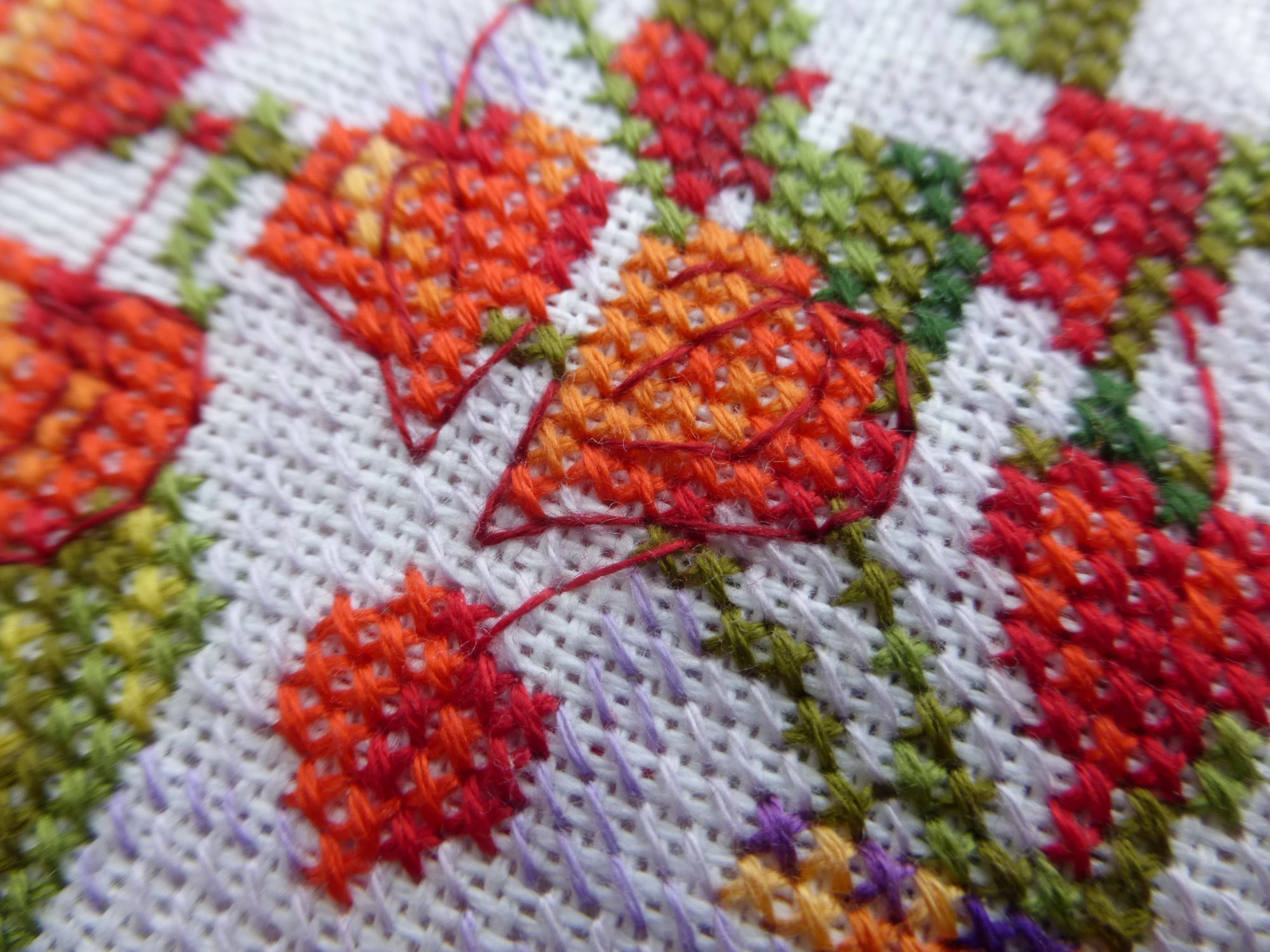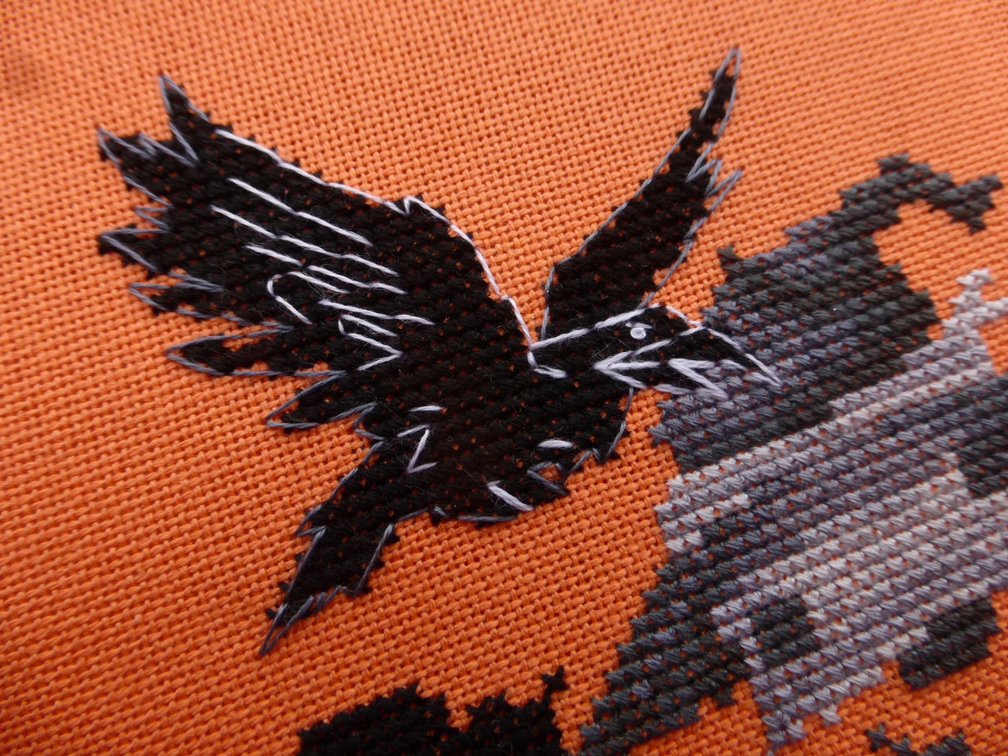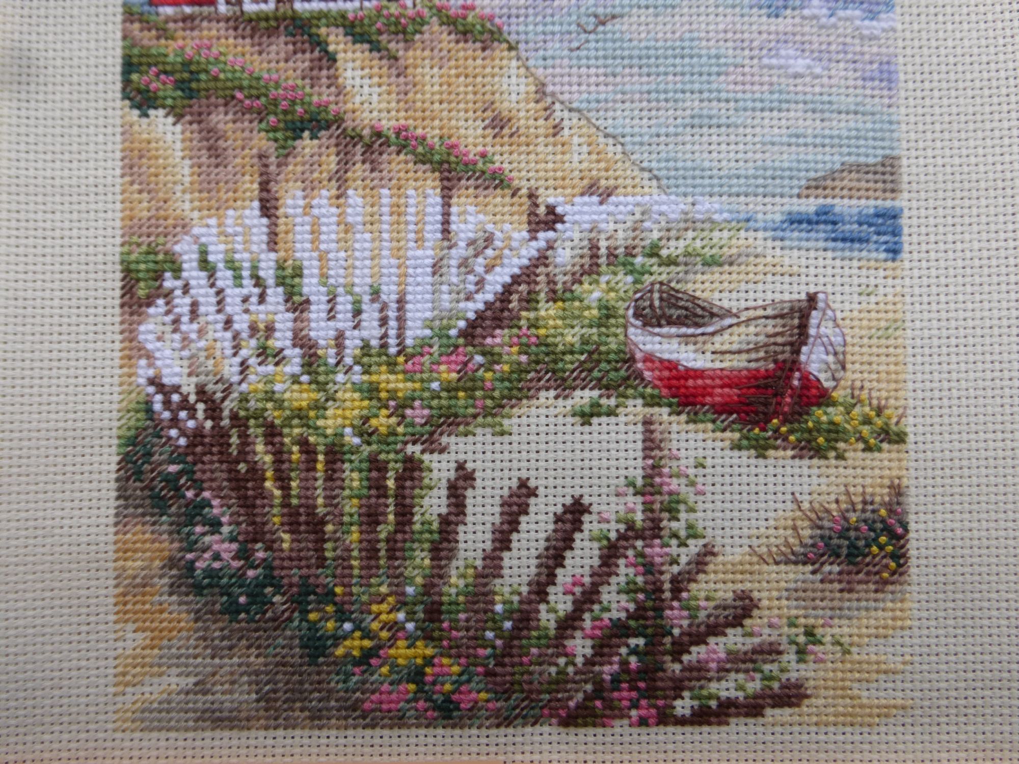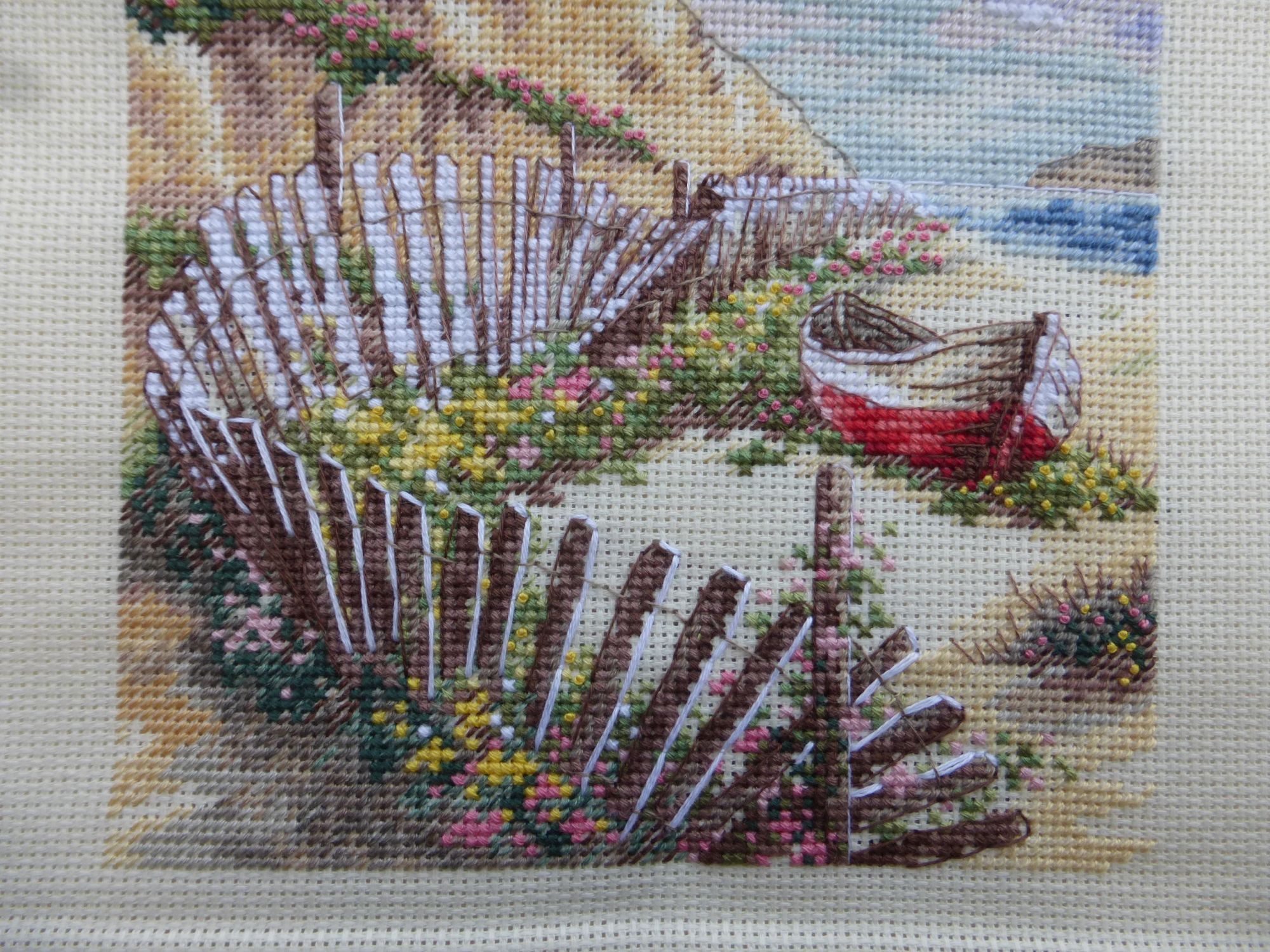 25 октября 2018 Всем привет. Специально для Лены titania еще немного нашей осени для излечения хандры. Она уже немного другая, не такая яркая, скорее уже багряная, сдержанная, но прекрасная во всех своих проявлениях будь то солнце, ветер или дождь ) А далее совсем не осенний, а частично зеленый летний отчет в честь завершения парочки процессов из числа имеющихся. Ну что поехали? Горох Предсказуемо закончился горошек. Оставался же всего лишь бэк, а я с ним никаких трудностей не имею. В отличие от обычных Алисиных дизайнов, здесь было больше дробного бэка, видимо, это связано с маленьким размером работы. Не много, не подавляюще, но есть. Напомню, что цветная часть в сантиметрах всего 7х10. Мне больше всего понравилось вышивать горошки и усики, очень приятно. А вот что я не делала, так это не стирала лен до. Вот шляпа! А ведь лен незнакомый французский, и вот фиг знает дает он усадку или нет. Надеюсь, что он скорее Белфаст нежели Пермин. Маяк на обрыве А дальше я хотела шить физалис. Очень хотела, но он не хотел шиться. После очередной ошибки взяла другой осенний - и тоже нет, сплошные ошибки. И вот методом проб и ошибок я поняла, что просто очень преочень хотел дошиться маячок от Димыча. Что такое миник никому объяснять не надо. Кто-то пробовал, кто-то сам шил, но факт есть факт, что миник - это квинтэссенция всех чуд Димыча на маленькой площади. Я долго ходила кругами мимо травы/цветов/забора. Глаза страшно боялись этой мешанины. Но не в этот раз. Я вооружилась маркерами, и процесс пошел. Всего два выходных и чудесный маячок готов. А уж какой кайф был делать этот забор. Он прекрасен. Белый бэк в три нити заменила на выкладную. Делала его полуленивым способом, а не как тру вышивальщица. То есть сначала в три нити весь, а потом уже прихватывала весь белым в 1 нить, а не сразу/параллельно, как выкладная должна делаться. Получила фии от Сережки, которого возмутило использование маркера на такой простой схеме. )))) Я не исключаю того, что где-то в траве налажала и совершенно точно налажала в лодочке, вышив вместо крестиков белым цветом полукрестики, но это мой маячок. И он меня очень радует. Многофоток к обязательному просмотру, ибо на фотках он еще более замечательный, чем в жизни. ))) Кухонный триптих Старенький Риолис, примитивная вышивка по сути, но до чего ж очаровательная. Я с большим удовольствием вышила следующий кусочек. Тут физалис без заморочек, но он чудо, как хорош в своем минимализме. А самое трудное место, как ни странно, полукрест. Во-первых, потому что он шьется в обратном направлении, это сбивает при начале. Стоит только отвлечься, выключить голову и все, снова по привычке шпарила направо. А, во-вторых, потому что один из значков, которым обозначен полукрест, как раз полукрест в обратную сторону. Это тоже сбивало на уровне подсознательного. Ну и поскольку было 2 завершения, то я бы не была мной, если бы что? Да-да, правильно! Новый процесс. Пугалко по рисунку Iren Horrors , схема Алисы Окнеас К Хэллоуину можно относиться как угодно, принимать или не принимать праздник дело каждого по отдельности. Но ведь мы здесь вышиваем, и иной раз совершенно непонятно, почему тот или иной сюжет цепляет. Просто именно ближе к этому дню появляется многотыкв и всяких пугал, мумий, вампиров. Я как-то ровно дышала в эту сторону. Нет, нравится очень, но самой вышивать не хотелось. А тут попалось 