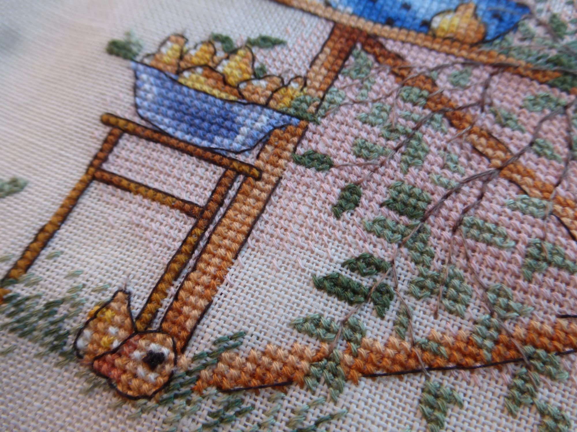 15 ноября 2018 Всем привет! Поздравляю нас всех с прошедшим днем вышивальщицы. Хочу пожелать всем нам, чтобы никогда не перевелись дизайны, которые хватают нас за душу и не отпускают, заставляя получать массу удовольствия от покупки, процесса и результата. Также хочется пожелать немного футуристическую , даже фантастическую вещь, чтобы рукоделие стало более доступным, то бишь цены стали ближе к народу. И отмечу сама для себя этот праздник завершением потрясающего процесса. Шары Не могу написать про него ничего нового. Он хорош, хорош во всем (кроме рвущихся по началу ниток). Самый сложный кусок, по отношению к остальной вышивке, сами шары. Здесь и цветов много, и шахматка присутствует,и довольно много бэка. Правда он не очень сложный. Всего два цвета, а эффект подсветки на лицо. Так что, учитывая малый размер, шикарную проработку и красивые цвета - можно смело ставить 5- (за нитки) И теперь уже твердое да новой Панне. Пугалко Продолжаю медитировать на пугалком, потому что ужасно нравится, как получается эта серота на тыквенной равномерке. А сейчас я уже шью светлые тыковки и стало еще лучше. Крестики большими группами не вызывают никаких нареканий, бэк трудозатратный, потому что много, а не потому что сложно. Некоторые девочки заменяют бэк в 2 сложения, более толстой ниткой - финкой для харда, так получается проще гораздо. Я же пока шью по старинке, но надеюсь попробовать и этот способ. К сожалению, каким-то образом удалила совсем фотки до бэка, потому только окончательный результат тушки пугала. И все пытаюсь поймать цвет равномерки, истина где-то посередине, как обычно. Груши Потихоньку завершается работа, тем самым подводя итог нашему прекрасному лету. Тут появился довольно большой массив розового, который пока что перетягивает взгляд на себя, из-за своей интенсивности и общей площади зашивки. Я надеюсь, что с появлением последнего угла все уравновесится. И как-то неожиданно плохо получаются фрузели на Белфасте, все норовят уйти на изнанку, чем меня не то чтобы расстраивают, я бы даже сказала бесят. Потому что у меня никогда с фрузелями проблем нет. Добрый Татусик разрешила начать на праздник новый процесс, но поставила нереальное условие, что он должен быть вышит первым. Татусик, ну как же так? Как быть многопроцессницам, у которых другие процессы, несколько даже, я бы сказала, уже подошли к финалу? Не шить, пока не закончу этот? А можно я просто новый буду показывать в каждом отчете и обязуюсь дошить до Нового года? Я же вообще молодец последние месяцы, заканчиваю процессы, да ведь? Мухоморсы Совиный лес, 129х109 крестиков. Решила не мудрствовать и взять рекомендуемую основу, а именно лен Белфаст Raw Linen 53, цвета сырого льна, 32 каунт. Шью нитками Дмс, их всего 5 цветов, без блендов и без бэка. Размер получится совсем не большой 20,5 х 17,5 см. На тряпке такого цвета шью впервые, она довольно мешковистая, непривычно по ощущениям в руках, но результат мне нравится. Я сначала было подумала, что она съест цвета, но нет, все живенько. И в день вышивальщицы принято дарить подарки, а в моем случае получать. Моя любимая Лена @Rezavy подарила мне мою хочуху, с тех пор, как увидела ее, то сразу захотела. Даже можно сказать, что она подложила мне свинью. В прямом и переносном смысле. Потому как начать ее тоже хочется, а для этого надо что-то и закончить. Но с этим последнее время п