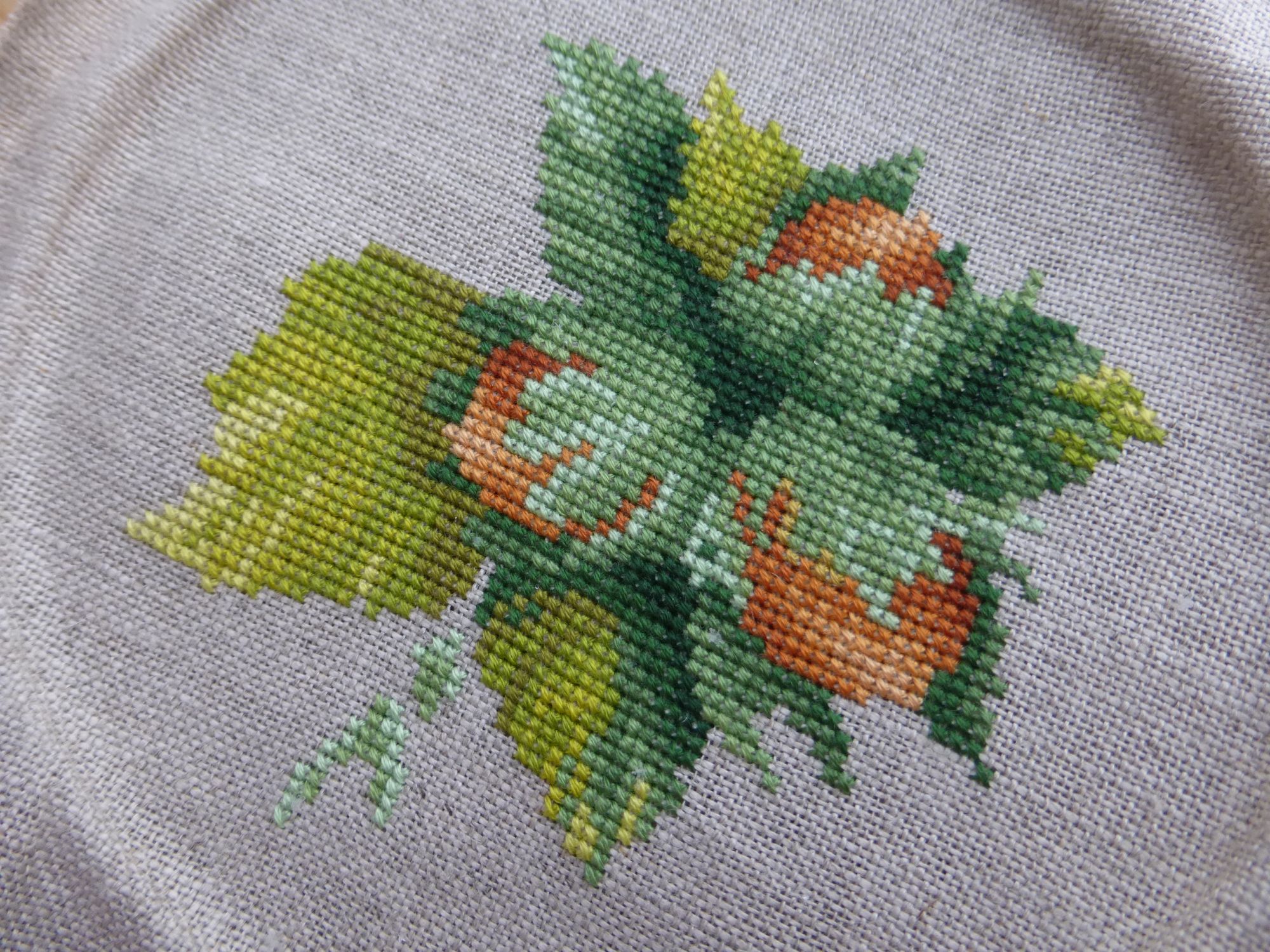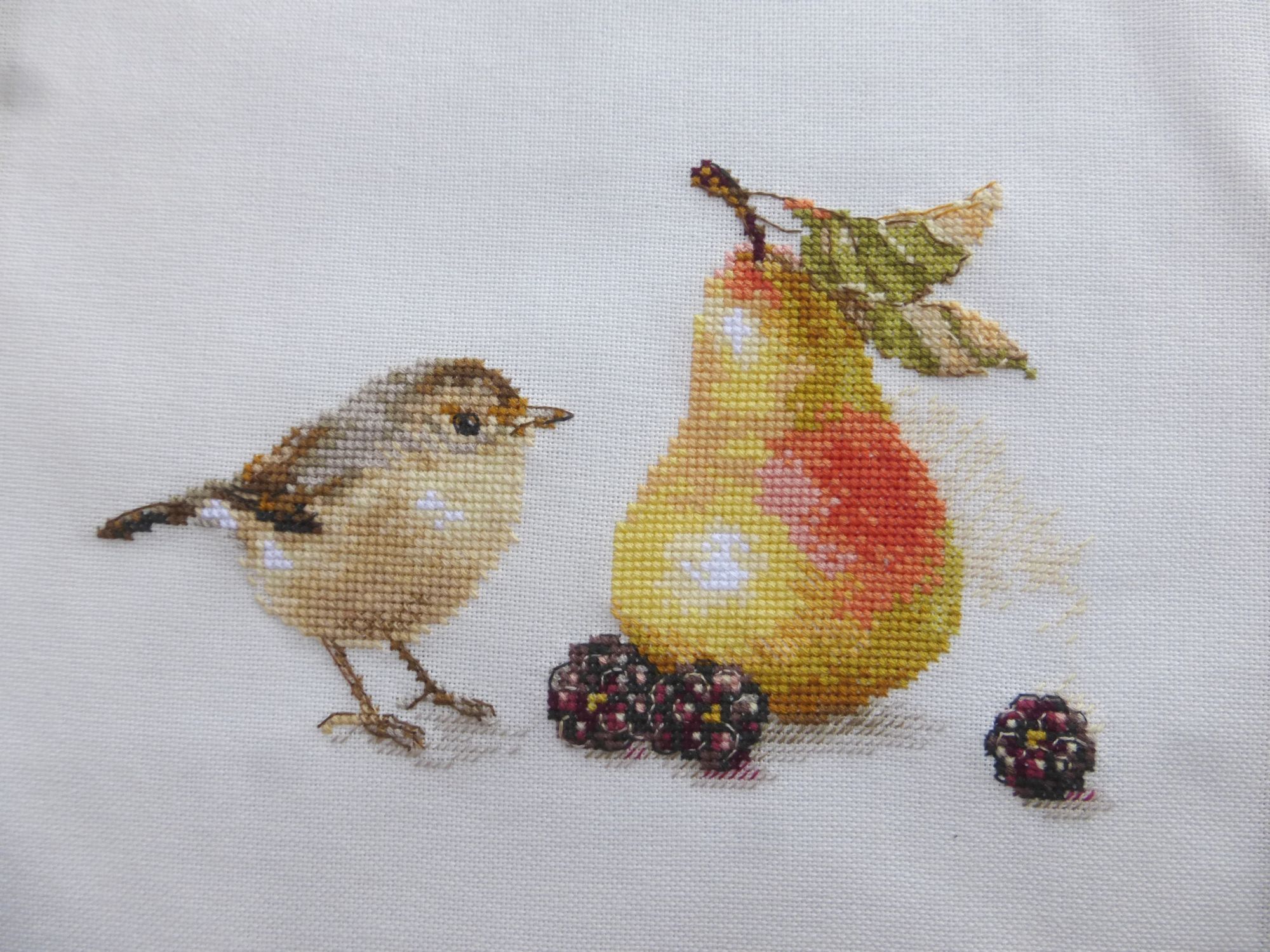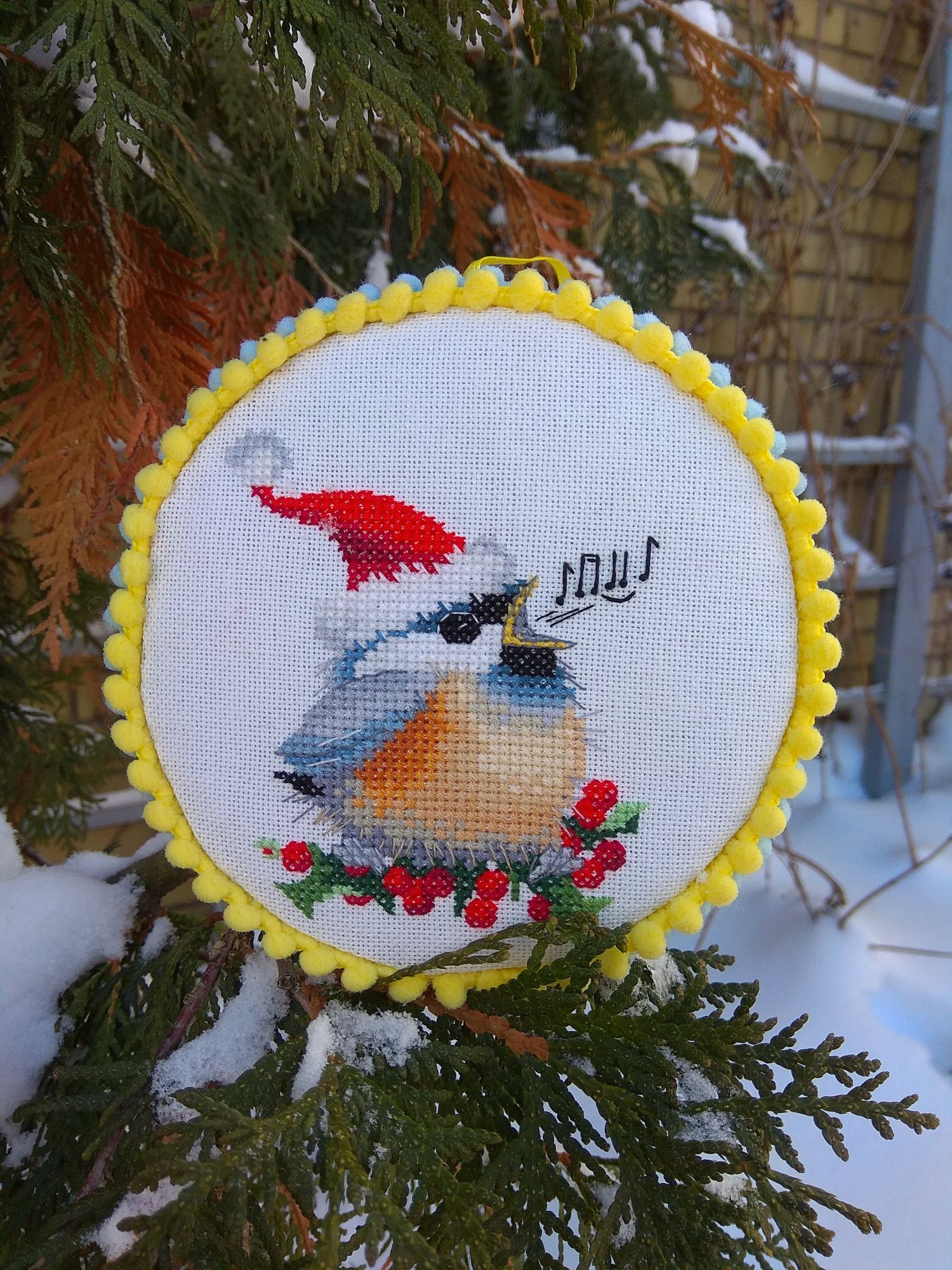 7 февраля 2019 Всем привет! Прошлый отчет я честно прогуляла по болезни, очередная эпидемия гриппа накрыла НН, помимо снега, темноты и прочих прелестей зимы. Но в связи с этим есть что показать сегодня. Снегурочка Редкий среди меня стремительный процесс. Такой, чтобы на одном дыхании и запоем. Никак не могла оторваться от Снегурочки, до того ж она мне нравилась. И даже после окончания процесса остался какой-то момент, что еще хочу чего-то такого же. Как я уже писала, с крестиками тут вообще проблемы нет, платье плавно стекало вниз без одиночек и нелогичных переходов. С бэком тоже проблем особенно никаких не было. Он весь абсолютно счетный. Везде в платье. Но много его, много. Правда, если делать его порционно, даже нелюбители бэка сочтут его замечательным. Так же осложняет процесс большое количество фрузелков. Я-то их люблю крутить, но здесь тот случай, когда и бисер будет уместным. Даже я бы сказала, что бисер смотрелся бы лучше, чем фрузелки. Все-таки костюм новогодний парадный. Птичка с грушей Еще один финиш. Птички от Алисы особенно прелестные. Большинство из тех, что есть у меня, нахохленные шарики. А я таких больше остальных Даже крестики на фотографии получились встрепанные, хотя живьем все очень даже и ровненько. Шилась птичка легче груши, потому что совсем не рвались нитки. Часто читала, что последние ремез и чекан сложные в исполнении, эта же довольно легкая. Особенно порадовал полукрест на брюшке в 3 нити в направлении верхнего полукреста у крестиков. Шился легко, а закрыл приличную площадь. Пожалуй, труднее всего было в лапках, но тут никак иначе. Бэк убийственный и беспощадный. Впрочем, его мало, поэтому острая игла в руки, и никаких проблем. В продолжении новогоднего настроения, заданного Снегурочкой, я наконец-то открыла свой годовой проект Флажки Совиный лес Я практически сразу решила, что раз буквицы напоминаю вязь в сказках, то основу хочу состаренную как бы. Хотела даже красить сама чаем там или кофе, но лень победила. В итоге будет 264 Мурано, потому что для графа де ля Фер 18 слишком мало, а для Атоса 14 слишком много. Играть с меланжем не хотела, мне тут виделись чистые цвета по ключу в дмс. Вот самое начало, на Мурано смотрится ярко и празднично, но глаза не слепит, как, например, на белой. Дары леса по схеме Алисы Окнеас , 31 цвет Я не буду шить бруснику скорее всего, только желуди и орехи. Для себя этот дизайн так и называю "Три орешка для Золушки". Татусик, это процесс 10 дней, мелкий и быстрый. Я взяла Белфаст 53, цвет сырого льна . Тот же самый, на котором мухоморы шила. И я фанат этой ткани. Она просто мега приятная. И природные дизайны на ней смотрятся просто офигительно. С Алисой, как и обычно, никаких проблем. Я люблю то, как она работает с зелеными и коричневыми цветами. Бленд один - зеленый в листьях. Красивый. Вы наверное еще помните птичку Херитажа, которую я недавно шила. После оформления брошек, я почему-то решила, что мне море по колено, и я легко сделаю пинкип. Ха-ха. Как он должен выглядеть я себе в целом представляла, мне хотелось популярные нынче шарики по кругу пустить, а вот какого цвета, тут я стопорнулась. В Леонардо были куплены 5 разных цветов, а взяла в итоге два. Причем решила, что буду их пришивать сразу вместе, как бы двойную каемочку делать. Все равно пришиваю мононитью, а она незаметная совсем. Сначала все было красиво, а потом 