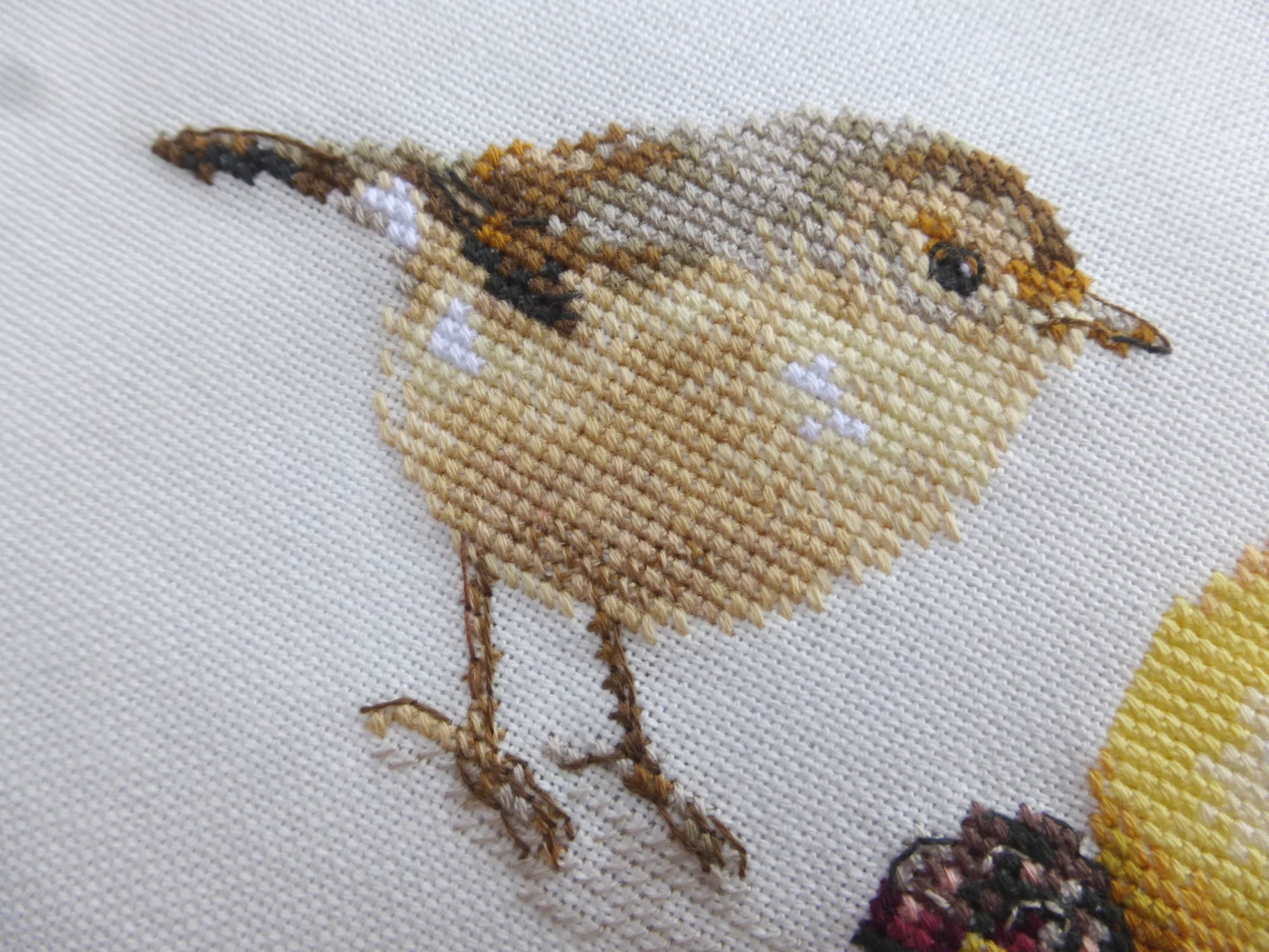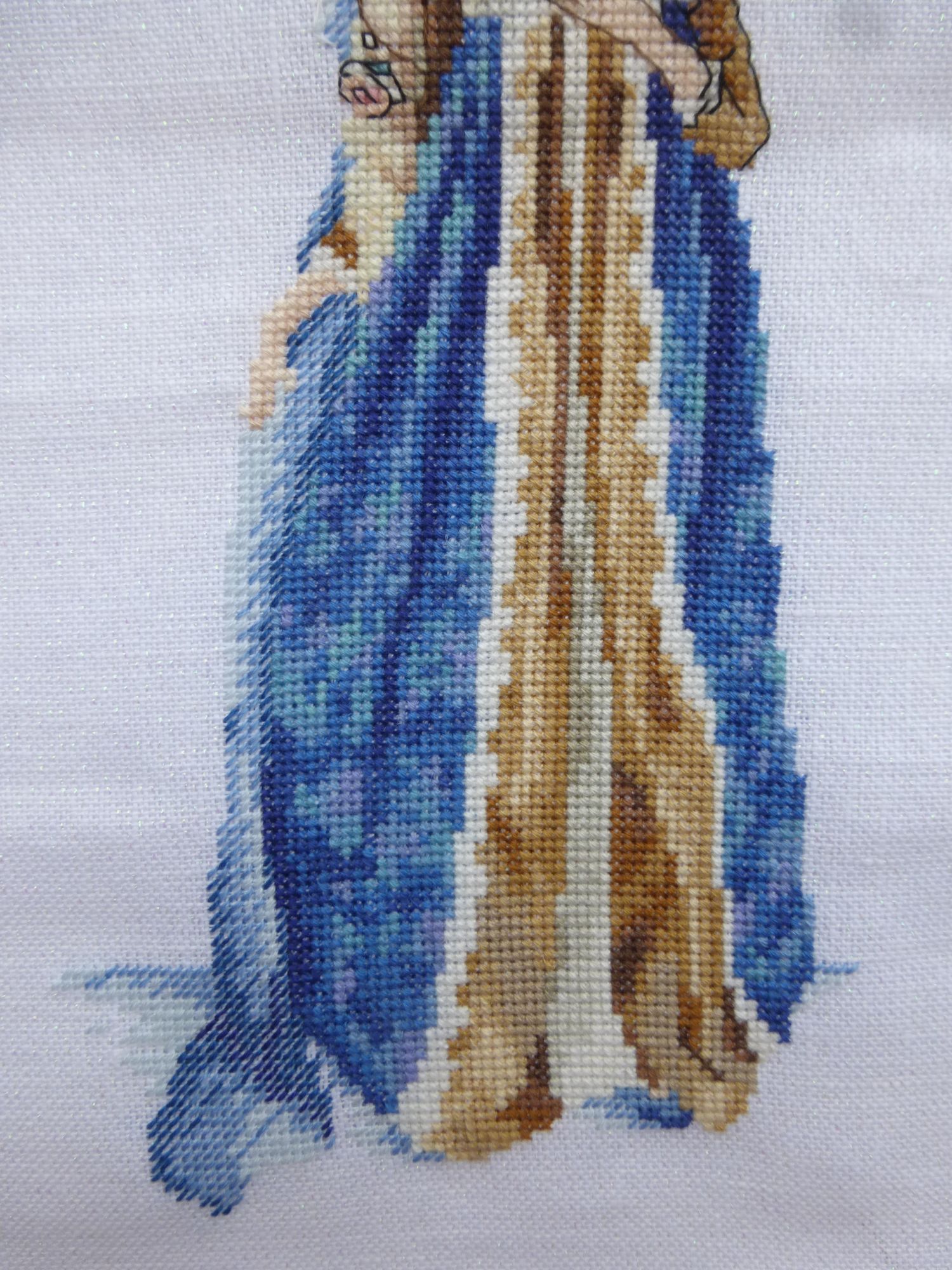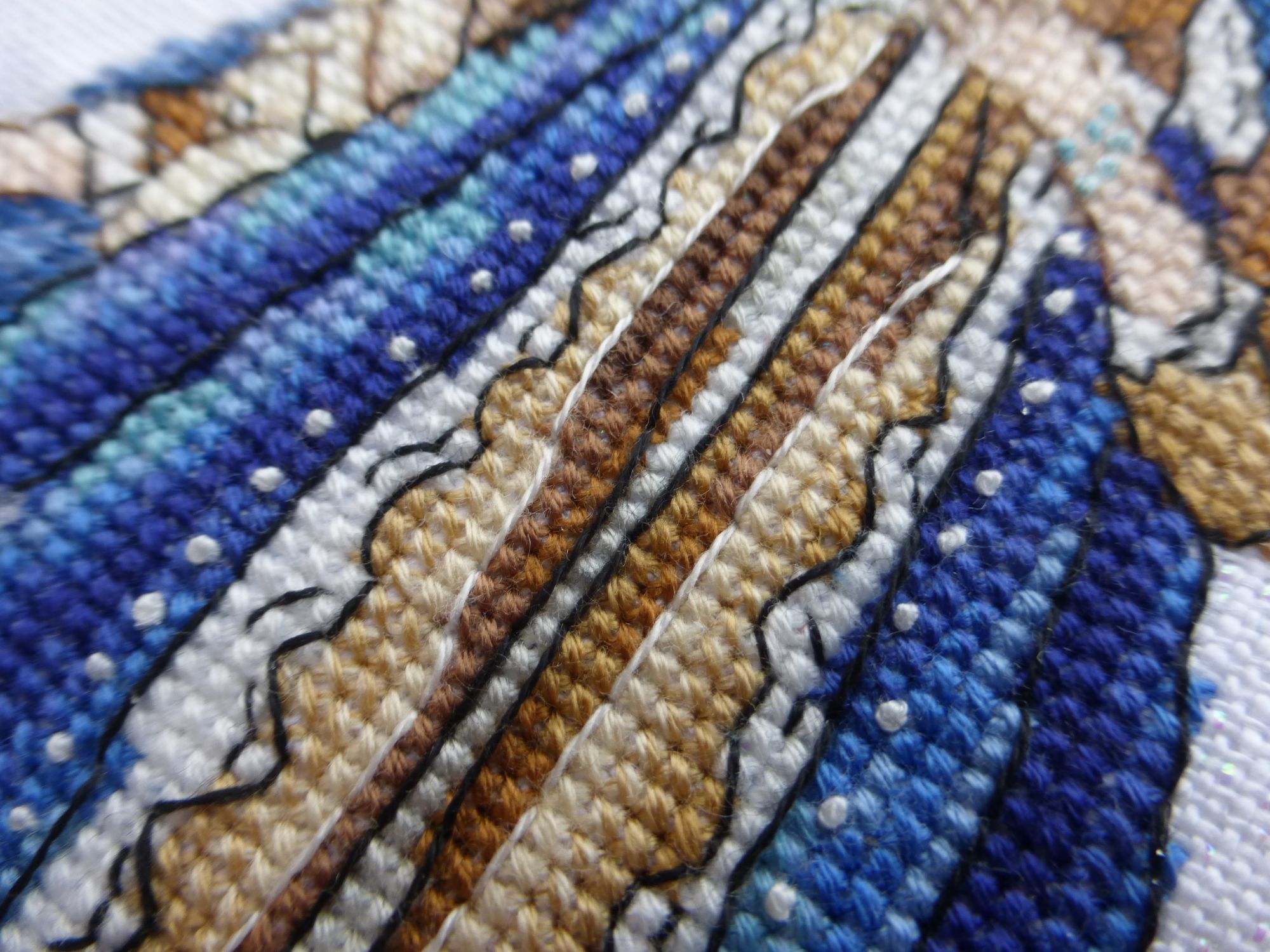7 февраля 2019 Всем привет! Прошлый отчет я честно прогуляла по болезни, очередная эпидемия гриппа накрыла НН, помимо снега, темноты и прочих прелестей зимы. Но в связи с этим есть что показать сегодня. Снегурочка Редкий среди меня стремительный процесс. Такой, чтобы на одном дыхании и запоем. Никак не могла оторваться от Снегурочки, до того ж она мне нравилась. И даже после окончания процесса остался какой-то момент, что еще хочу чего-то такого же. Как я уже писала, с крестиками тут вообще проблемы нет, платье плавно стекало вниз без одиночек и нелогичных переходов. С бэком тоже проблем особенно никаких не было. Он весь абсолютно счетный. Везде в платье. Но много его, много. Правда, если делать его порционно, даже нелюбители бэка сочтут его замечательным. Так же осложняет процесс большое количество фрузелков. Я-то их люблю крутить, но здесь тот случай, когда и бисер будет уместным. Даже я бы сказала, что бисер смотрелся бы лучше, чем фрузелки. Все-таки костюм новогодний парадный. Птичка с грушей Еще один финиш. Птички от Алисы особенно прелестные. Большинство из тех, что есть у меня, нахохленные шарики. А я таких больше остальных Даже крестики на фотографии получились встрепанные, хотя живьем все очень даже и ровненько. Шилась птичка легче груши, потому что совсем не рвались нитки. Часто читала, что последние ремез и чекан сложные в исполнении, эта же довольно легкая. Особенно порадовал полукрест на брюшке в 3 нити в направлении верхнего полукреста у крестиков. Шился легко, а закрыл приличную площадь. Пожалуй, труднее всего было в лапках, но тут никак иначе. Бэк убийственный и беспощадный. Впрочем, его мало, поэтому острая игла в руки, и никаких проблем. В продолжении новогоднего настроения, заданного Снегурочкой, я наконец-то открыла свой годовой проект Флажки Совиный лес Я практически сразу решила, что раз буквицы напоминаю вязь в сказках, то основу хочу состаренную как бы. Хотела даже красить сама чаем там или кофе, но лень победила. В итоге будет 264 Мурано, потому что для графа де ля Фер 18 слишком мало, а для Атоса 14 слишком много. Играть с меланжем не хотела, мне тут виделись чистые цвета по ключу в дмс. Вот самое начало, на Мурано смотрится ярко и празднично, но глаза не слепит, как, например, на белой. Дары леса по схеме Алисы Окнеас , 31 цвет Я не буду шить бруснику скорее всего, только желуди и орехи. Для себя этот дизайн так и называю "Три орешка для Золушки". Татусик, это процесс 10 дней, мелкий и быстрый. Я взяла Белфаст 53, цвет сырого льна . Тот же самый, на котором мухоморы шила. И я фанат этой ткани. Она просто мега приятная. И природные дизайны на ней смотрятся просто офигительно. С Алисой, как и обычно, никаких проблем. Я люблю то, как она работает с зелеными и коричневыми цветами. Бленд один - зеленый в листьях. Красивый. Вы наверное еще помните птичку Херитажа, которую я недавно шила. После оформления брошек, я почему-то решила, что мне море по колено, и я легко сделаю пинкип. Ха-ха. Как он должен выглядеть я себе в целом представляла, мне хотелось популярные нынче шарики по кругу пустить, а вот какого цвета, тут я стопорнулась. В Леонардо были куплены 5 разных цветов, а взяла в итоге два. Причем решила, что буду их пришивать сразу вместе, как бы двойную каемочку делать. Все равно пришиваю мононитью, а она незаметная совсем. Сначала все было красиво, а потом 