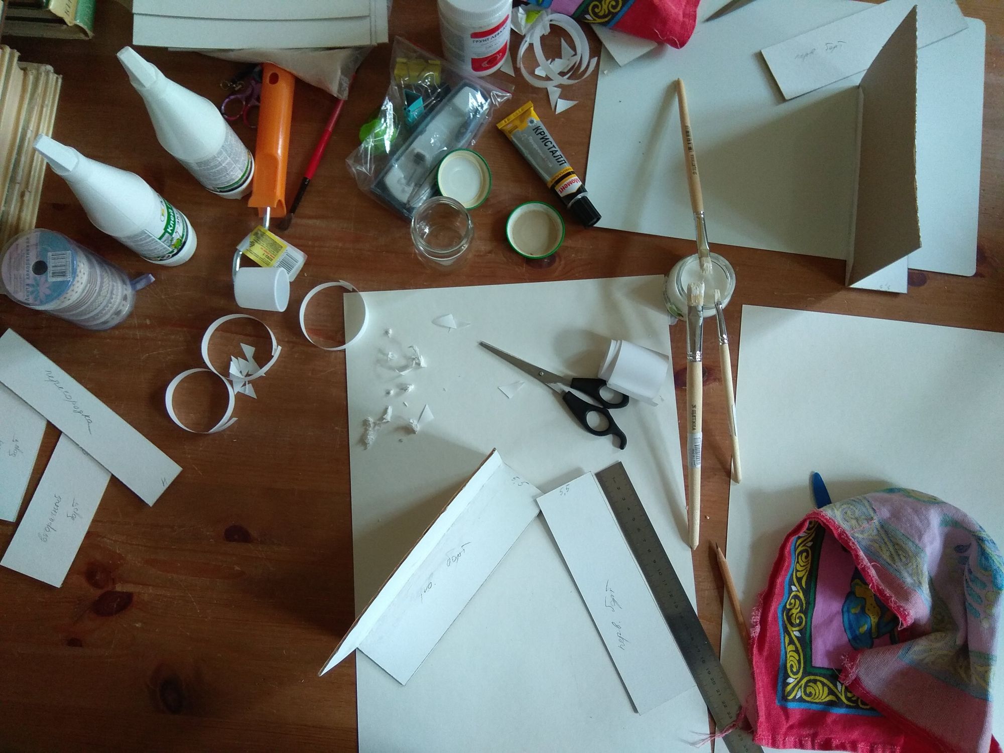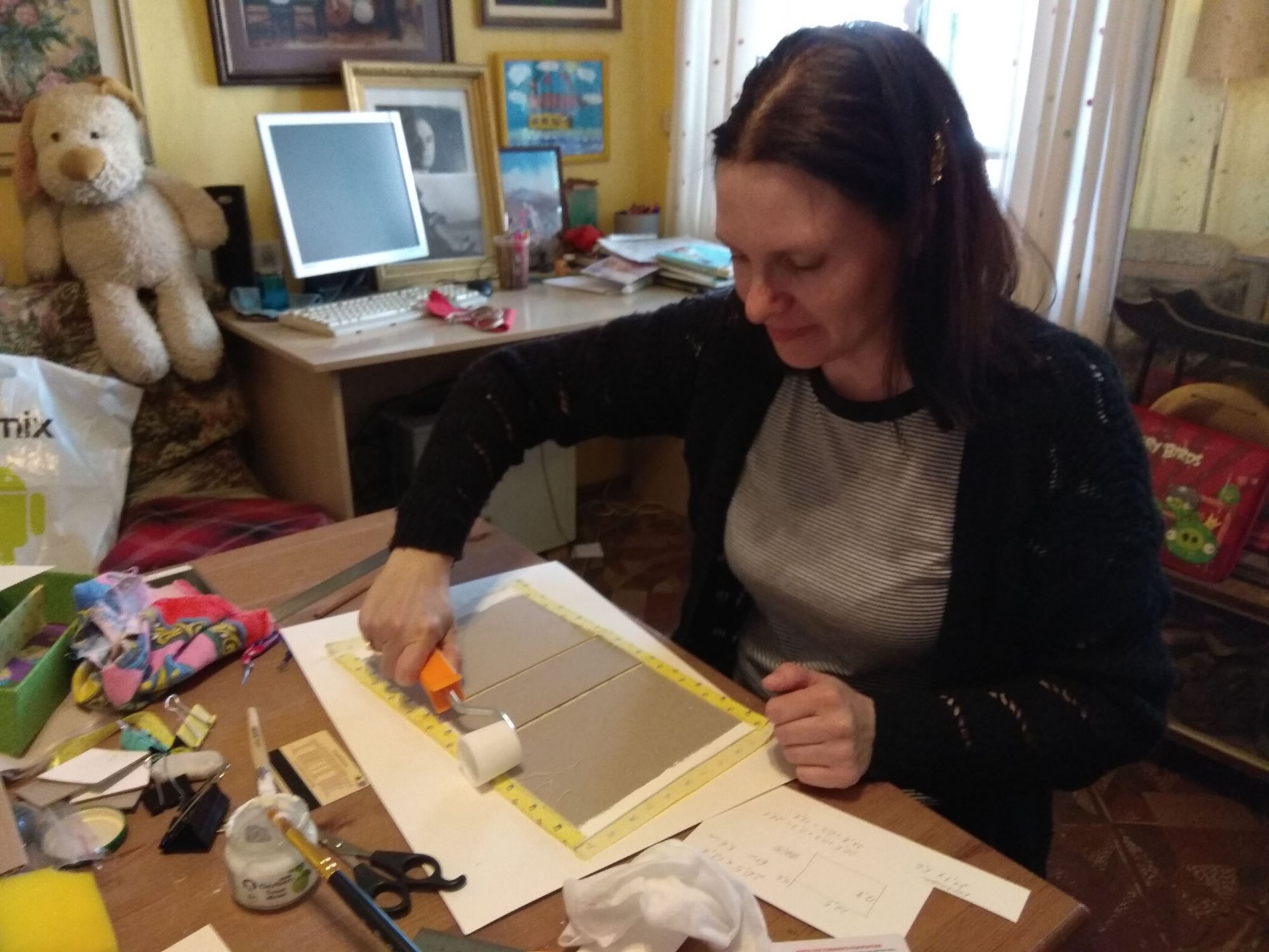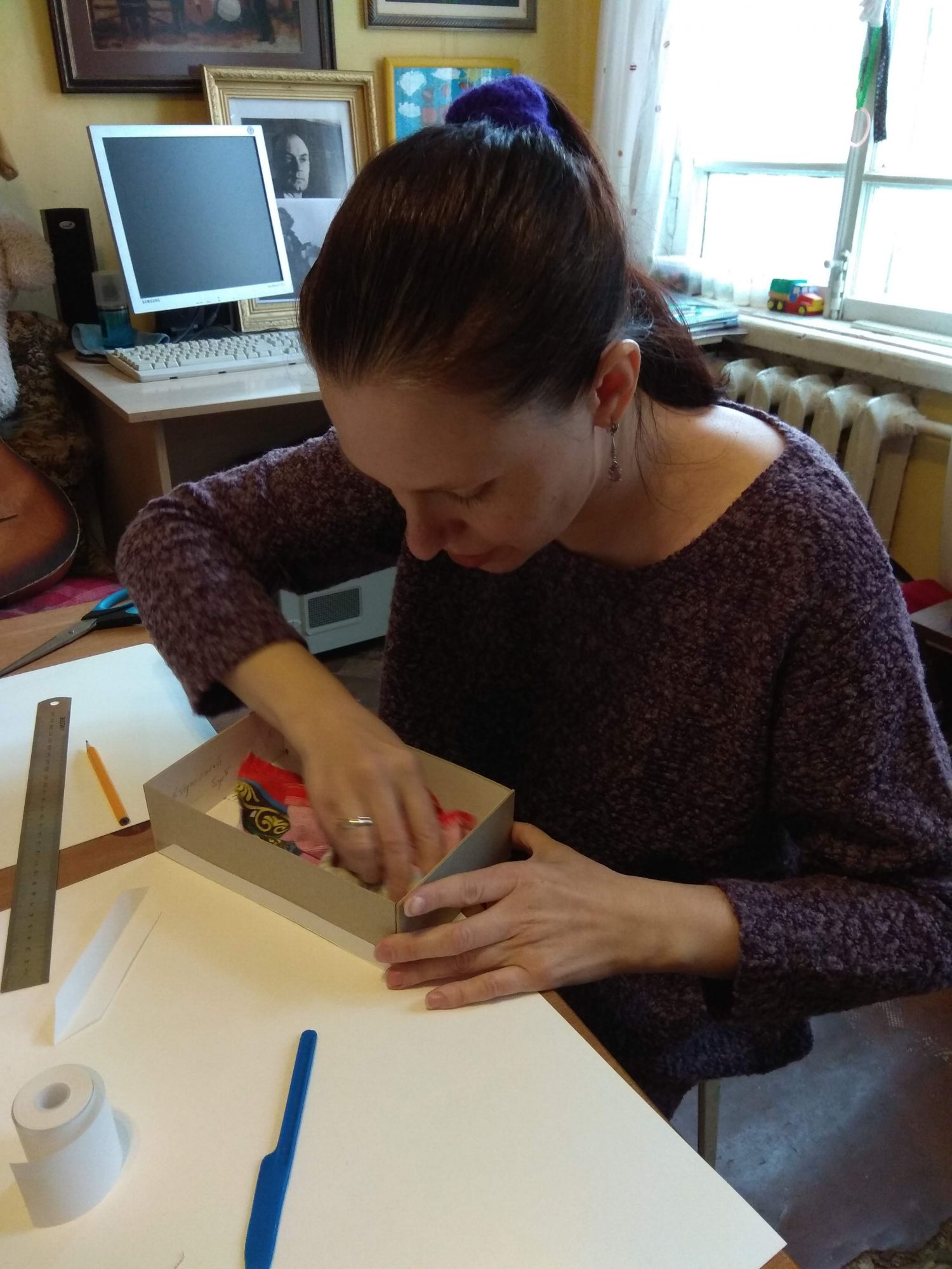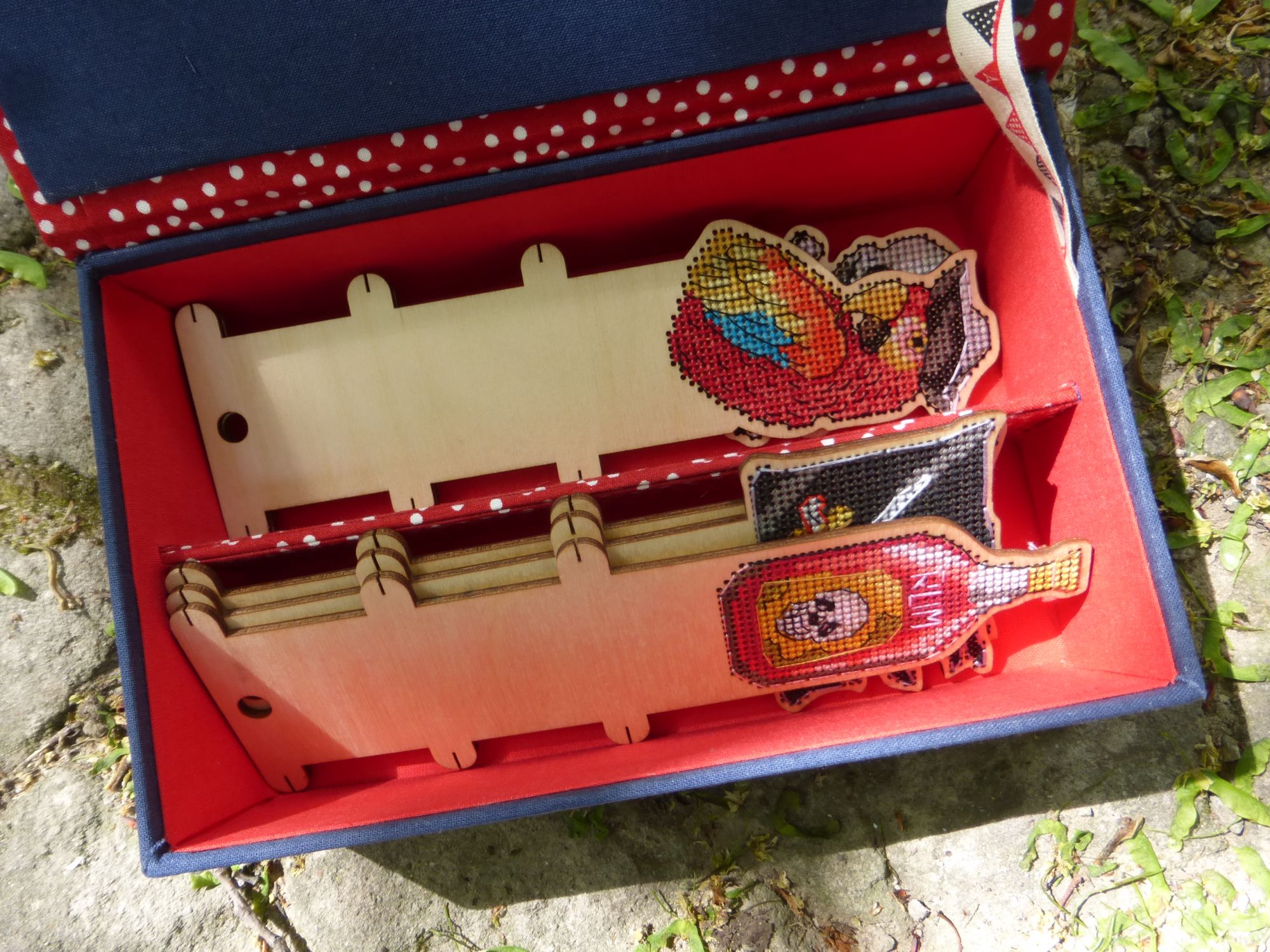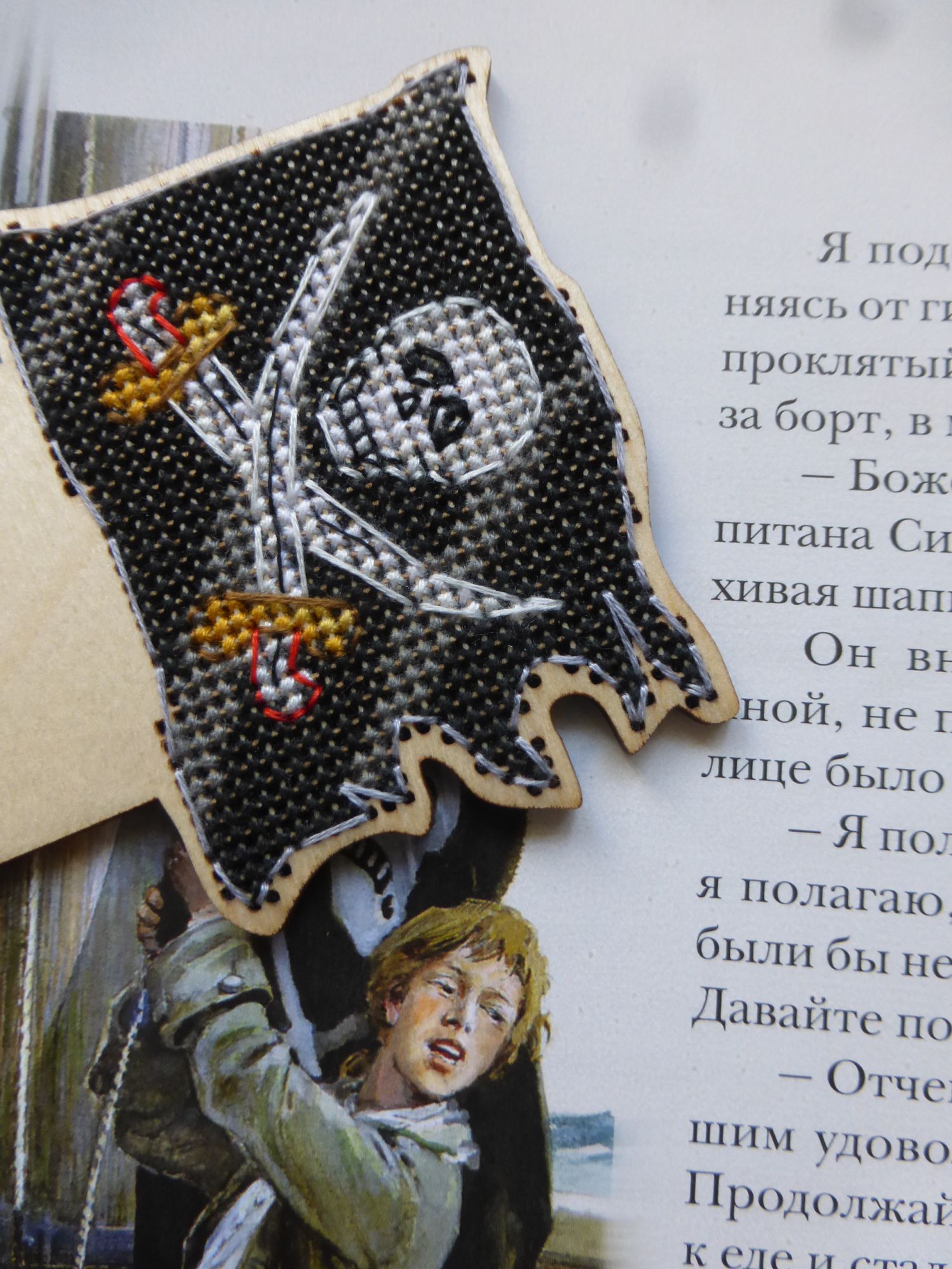23 мая 2019 Всем привет! Начну я, как и во всех последних отчетах, с природной витаминки. Потому что май настолько плодотворный и щедрый на это месяц, что диву даешься. Ведь еще недавно холод и снег, а теперь, куда не бросишь взгляд, везде нежнятина всяческая. Наверху, внизу, по бокам - точно везде. Синички Именно поэтому сейчас так хорошо шьются синички, потому что они замечательно соответствуют тому, что за окном. Дизайн по-прежнему шьется самостоятельно, то есть сам решает, куда же ему дальше двигаться. Я хотела еще птичек, а он сказал - фон. И фон классный. Иногда на фотках бывает такой эффект, расплывается задник, чтобы ярче были фигуры на первом плане. И здесь так же. И как обычно Дим полон разных фишечек. Вроде бы обычный полукрест, довольно хаотичный. Но две веточки каких-то шикарных кусто-цветов абсолютно точно просматриваются. Пираты Процесс, который влюбил меня в деревяшки. Не могу сказать на 100%, что буду шить на деревянных основах, но результат именно этой серии меня просто покоряет. На этот раз у меня готов Веселый Роджер - самый красивый флаг в мире имхо. Очень точный лаконичный и понятный. Шился легко, тут цветов-то раз-два и обчелся. Бэк тоже легкий, правда преимущественно в 2 нити. И новая книжная история. НЕ В ГАЙКУ Еще с большим удовольствием шила пилота в нашем с Олькой робине. Гайка зеленится, но не моя, а Олькина. Пилот Ольга получился интересным. Он явно с щетиной на лице, в таком-то возрасте. Крут и брутален! Крестики тут отличные, а вот бэк странный. Ну то что не по клеточкам - фиг с ним, но некоторые кусочки оставляют недоумение. К примеру, есть тут 2 темно коричневых 839 и 3371: не сказать, что в миллиметраже капитально друг от друга отличаются. Так есть, например такие куски, где все преимущественно одним из этих цветов, и вдруг маленькая черточка на клеточку другим. Зачем? Я, конечно, же делала тем цветом, каким шила. И не вижу никакой разницы. Ну а дальше пойдет сказ о том "Как мы с Аней @Камма80 картонажили". Ее версия событий изложена ТУТ. Очень хорошо написано, и результат финальный у Ани потрясающий получился. А теперь моя история ))) Картонаж Давно хотелось попробовать чего-нибудь этакого, чтобы можно было как-то утилизировать применить свои вышивки из рулона. Ну хоть часть. То что шить я не умею, это я уже давно поняла, но хотелось найти в себе еще хоть какой-то рукодельный талант кроме вышивки. В нашей беседке вышивальщиц НН состоялся клич на мастер-класс по картонажу. Предлагалось сделать пенал. Вы думаете мы пошли? Неа. А все потому, что еще пару??? лет назад (что-то память совсем подводит с этими рукодельными покупками) я купила у Наташи Юркевич МК по прекрасной коробочке. Но все боялась приступить. Отважная Аня сказала: " Не ссы, все сделаем сами!" Это, конечно же, не ее слова, Аня очень милая и интеллигентная девушка, а мое их вольное изложение. Она подкупила меня предложением самой купить картон и вырезать из него детали. Мы же хотели ровную шкатулку, а значит мне доверять эту работу было нельзя. Мои родители открыли дачный сезон и отбыли на выходные на дачу, а значит у нас с Аней было замечательное и тихое место с большим столом и без детей с мужьями, что невероятная редкость и ценность. И большой стол оказался очень кстати, потому что для картонажа понадобилось куча всего. Вот только часть. Картонаж предполагает аккуратность и собранность.