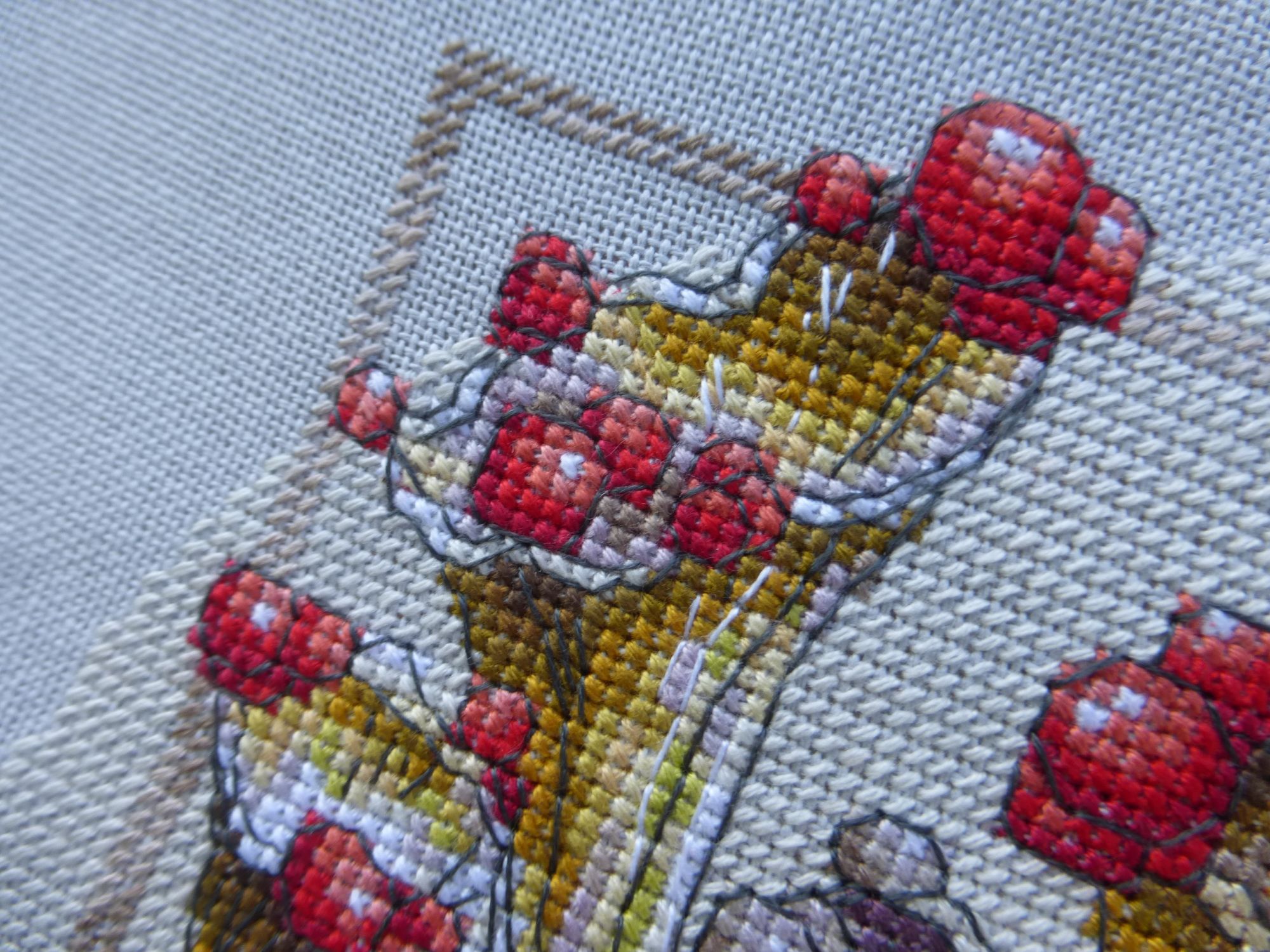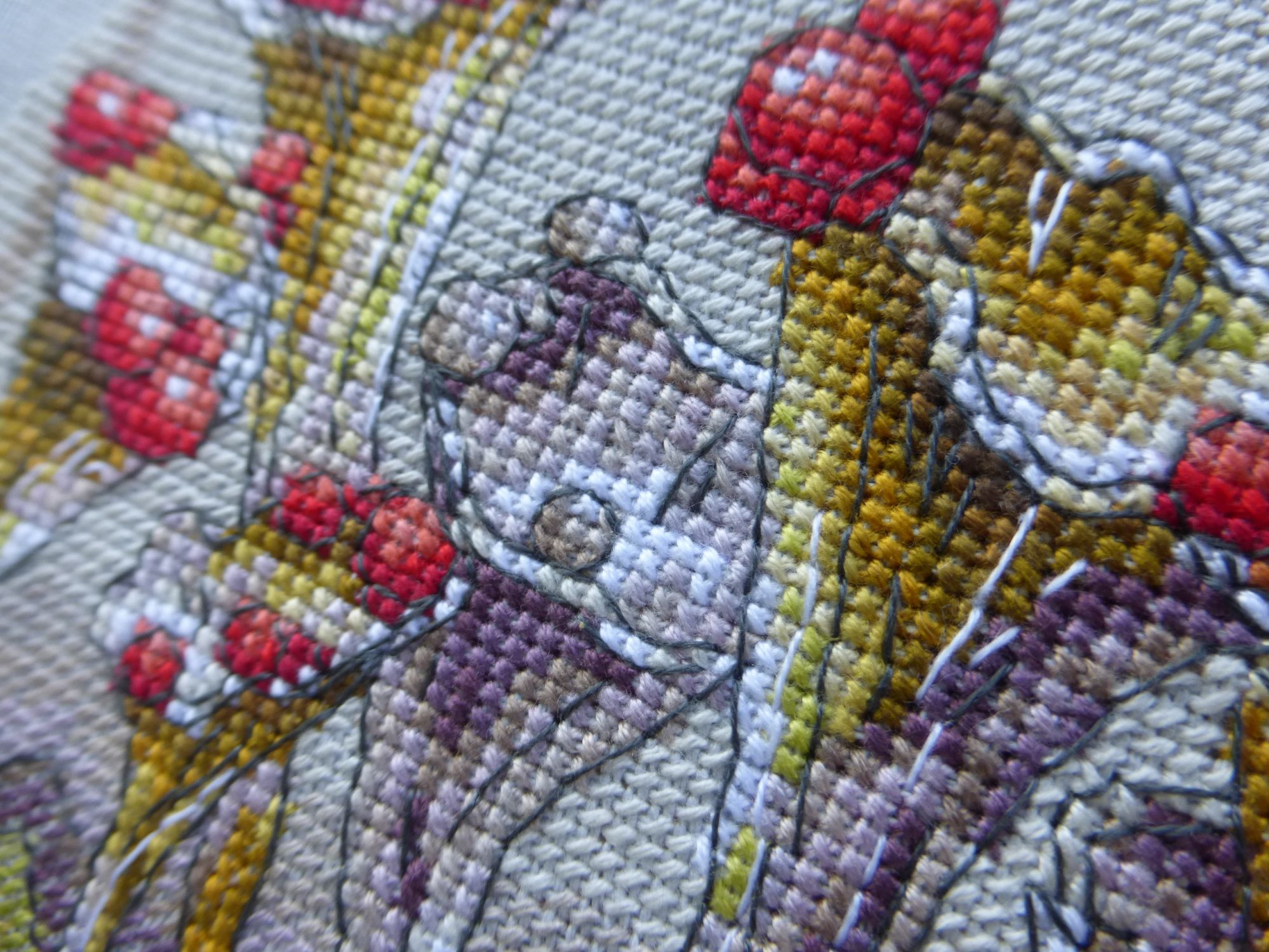 14 августа 2019 Всем привет! Время катастрофически улетает, а лето закончилось, так по сути и не начавшись. Ищем яркие цвета где можем, в те редкие моменты, когда солнце и можно выйти на улицу, моментально не скукожившись. Потому что ходить летом в куртках как-то не кайфово, а вот капусткой самое то )) Я сегодня принесла вам два финиша. Они стартанули вместе, продолжились и закончились. Необычно для моей вышивальной жизни, так что получился прецедент. Во как. Сэлфи Куры - это сплошной восторг от сюжета. Даже сейчас, когда уже процесс вышит, выглажен и убран в рулон, нет-нет, да и встает перед глазами. И сразу усмехаюсь себе под нос. Очень рада и выбору основы, и тому, что решила заменить глаза фрузелковые на бисерные. Так они получились значительно живее и интереснее. Сэлфи палка тоже не избежала модификаций. Я ее сделала в 4 сложения, так как в 2 она смотрелась куцей. Не хватало объема и ощущения железяки. Плюс добавила металлик к черному цвету, что дало необходимый блеск. Ну и поскольку эта схема для меня связана с семьей Алпатовых и нашими неразумными приключениями, то вышила еще рядом с курями нашу "организацию" и координаты Ржева, с которым связано приятное воспоминание о безумствах. Я довольна результатом. Ленка rezavy отметила, что на разных фотках и лица у курЕй меняются. Прям как в настоящих сэлфях с разными ракурсами. В общем, ржачный и отличный процесс, а главное результат. Женины схемы вышивать еще буду, тем более она обещала поработать над своей любовью к дробному бэку ))) Лишайник Готовы мои футуристические грибы - спасибо Лене titania за красивое сравнение. Мне безумно нравится получившийся результат. Они нереально красивые и небольшие. Низ вышивать было совсем не скучно, потому что кресты сменялись полукрестами. Да и цветовая гамма была теплой и солнечной. Забавно, но красный цвет стал еще ярче после завершения работы. Кстати,именно сегодня наблюдали с ребятами, как поля рапса становятся в разы ярче, когда они на фоне темно-серого пасмурного неба. Вот и здесь они как будто подсвечены изнутри откуда-то. Напомню, что процесс легкий, хорош и в Дмс и в ПНК, а весь бэк счетный. Села вечером как-то вышивать его и не могла оторваться. Буквально заставила себя лечь спать в 4 утра. И кстати это тот редкий процесс, где бэк весь я делала в конце. Совершенно непонятно почему так. А еще мне наконец-то прибыл подарок от моих любимых рукодельных подружек на ДР. Он настолько офигенен, настолько сногсшибателен, что хочется сказать спасибо каждой поименно, потому что я была просто в диком восторге от количества свалившегося на меня счастья. И сколько процессов можно новых начать, правда? @OlkaY, @kas_julia, @Маняша, @МарСанна, @Дафна, @Rezavy, @Krelina, @ss-kostenko и конечно @Путешественница, спасибо, что вы есть у меня. Что вы всегда знаете, что мне больше всего нужно для счастья. Подбадриваете и хвалите, даете нагоняй, если надо. Люблю и обнимаю много раз. И знаете что? Я естественно начала новый процесс, даже два. Но сегодня покажу только подготовку к одному из. Кактусы по схеме Татьяны Шаровой Эти кактусы Таня нарисовала для проекта "Вышиваем открытки", и я долго ходила вокруг и около. Ну потому что где я и где кактусы. Но последнее время меня неудержимо несет в сторону покупок и размножения. И я никогда не знаю, что будет в итоге следующим. Здесь мне захотелось сделать то ли пинкип, то ли банн