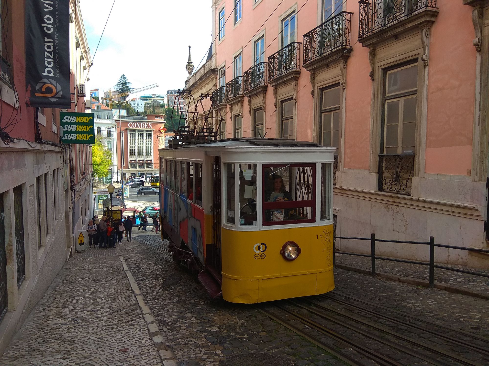 30 октября 2019 Еще погуляем по Лиссабону? Сегодня мы немножко пройдемся по историческому центру. Это во всех отношениях интереснейшее место. Ну начать наверное надо с того, что здесь Лиссабон не стоит на месте. Он изгибается в самых различных направлениях не только в плоскости Х, но и в вертикальной тоже. Никогда не знаешь, что увидишь за поворотом: резкий подъем или спуск, или ... снова поворот. Город заманивает внутрь своих улочек, приглашая посмотреть на него не только парадного, но и того самого подворотневого. Иногда улицы закачиваются тупиками, иногда из тупиков есть выход - узкий проход куда-либо, сразу и не заметный глазу. И это все очень тонизирует и заставляет размышлять на тему, а что же дальше? А как же карты, Ася? Можете спросить вы, а я отвечу, что карты и Лиссабон в центре - вещь абсолютно несовместимая. Потому что не на всех улицах есть указатели улиц, а не на всех картах все улицы подписаны. И вот как же определить направление, если ты стоишь посреди маленькой площади, а от нее расходятся улицы лучами от 5-6 и больше. И не прямыми, конечно же все с изгибами. Самый верный способ оказался прост - мы шли по наитию. То есть просто вычленяли какой-то интересный объект и шли его смотреть. И что забавно, в итоге выходили туда, куда и хотели. А знаете чем еще он прекрасен? Тем, что вдохновляет в любую погоду. Когда мы собирались только, то на всю неделю была шикарная погода. Но, как оказалось, проблема гидрометцентра с определением погоды есть и здесь. Какие только дни не показывали дождливыми, прогноз менялся постоянно. Но пасмурный серый и дождливый Лиссабон понравился мне не меньше яркого и солнечного. Он хорош, правда?И даже эта паутина проводов смотрится весьма органично. И кстати усилившийся дождь - отличный повод посидеть в кафе, выпить чашечку кофе и отведать местную выпечку. А она, честно признаюсь, оказалась невкусной. Первым делом мы попробовали местную знаменитось: слоеные булочки с заварным кремом -Паштэл де ната. И это было лучшее, что мог предложить город. Остальное было трудно есть из-за переизбытка сахара и так себе вкуса. Но кофе дешевый - это факт. Лифт Санта-Жушта и монастырь Кармелитов Интересное сооружение 45 метров в высоту. Его построил французский архитектор на на рубеже 19-20 веков , не Эйфель, хотя, как мне кажется, этот лифт чем-то башню напоминает. Поднимается он вверх на 30 метров на смотровую площадку, закрытую сетками. А внутри есть еще железная винтовая лестница, по которой можно подняться еще выше. Надо только купить билет на подъем внизу лифта. А стоит он 5 евро. Без билета тоже можно попасть на смотровую, надо только 15 минут прогуляться по улочкам, которые ведут наверх. Мы, естественно, выбрали пеший путь. И не потому, что платить за подъем не хотелось, а потому, что посмотреть вокруг хотели больше. В Лиссабоне в принципе везде предлагается тем или иным образом скостить путь и облегчить жизнь (и кошелек). Многочисленные трамваи, которые, как фуникулеры, спустят вас с крутой горы. Открытые машинки Тик-токи, с услугами гидов и без. Только плати! И дорога привела нас к монастырю Кармелитов. Его построили в 1389 году в честь одной из побед Португалии, и основали орден Кармелитов. В 1755 году землетрясение не только уничтожило часть постройки, но и погребло под стенами всех тех, кто пришел на мессу. После этого всяческие факторы мешал