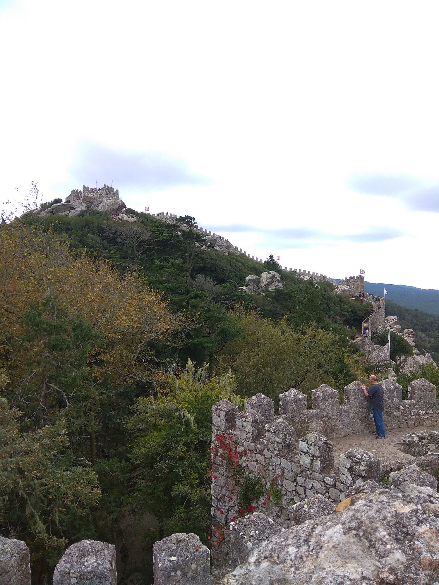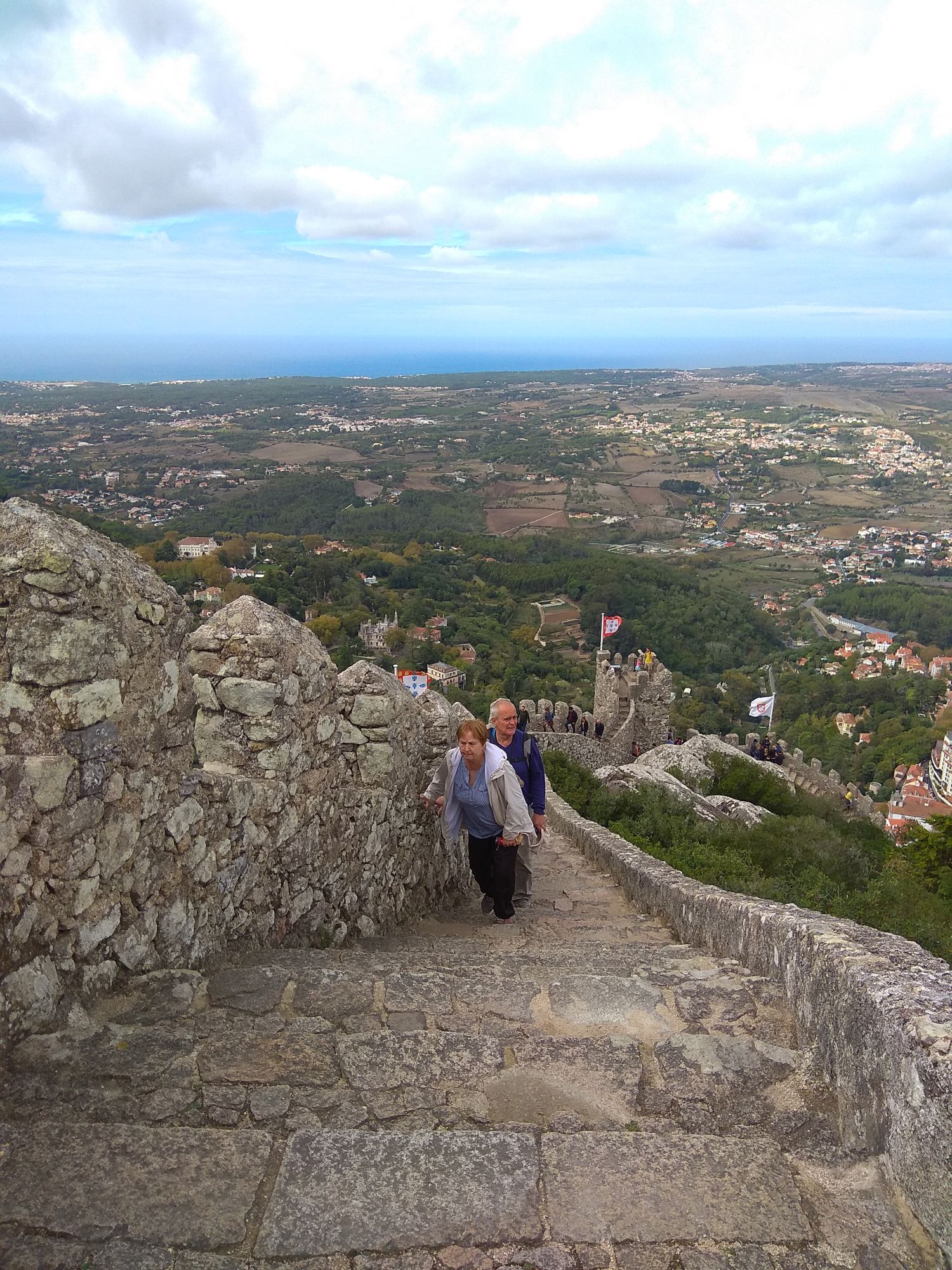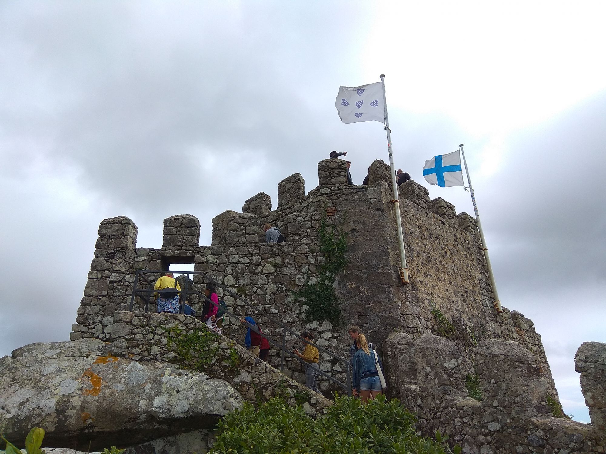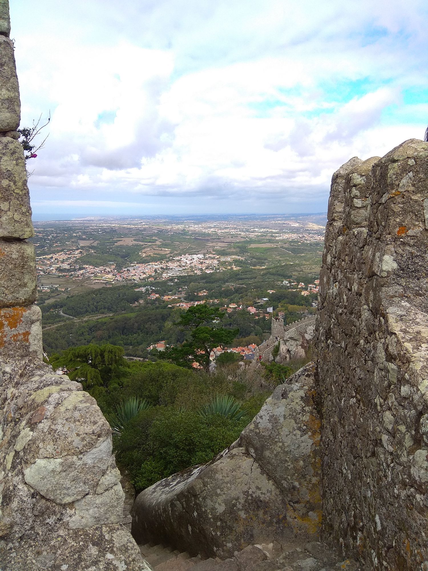 6 ноября 2019 Замок Мавров Видели на предыдущей фотке крепость на другой горе? Казалось бы далеко до нее. Ага, сейчас. Смешно, но от входа в Пену до входа в Мавров идти 10 минут. А остальное время топаешь вверх или вниз. В Пену меньше, в Мавров значительно дольше. Но какая же живописная дорога. Прям вот тут моя душа расцвела. Все, как я люблю. Валуны, развалины, красотка гортензия. Иди и любуйся вокруг. 8 век, была построена защитная крепость, с которой отлично просматривались и морские, и сухопутные пути. Длина стен по периметру около 450 метров на высоченном холме. Который к тому же имеет естественные и не очень пустоты, в том числе выходящие к морю. Практически неуязвимый объект. Крепость иногда посещали члены королевской семьи, но никогда здесь не останавливались. Слишком аскетично, на их вкус сие место. Не долго оно было форпостом, приходило в упадок постепенно и сильно было разрушено при землетрясении 1755 года. Оно вообще много чего разрушило или уничтожило в Португалии. И только в середине 19 все тот же Фердинанд 2, который построил Пену, дал команду на приведение в порядок и этого места. Только в 20 веке его полностью восстановили, произвели часть археологических раскопок и сделали памятником Можно осмотреть только его укрепительные сооружения, а можно по узкой и длинной лестнице подняться в смотровые башни. Самая высокая башня называется королевской, потому что именно сюда часто приходил король, чтобы не только полюбоваться видами, а они отличные, но и порисовать. Башню украшают флаги. Красный - являлся символом страны в 15 веке, затем правящий монарх сменил его белым флагом. В 1834 году цвета национального флага были сине-белыми, после появился современный вариант знамени, существующий сегодня. Все они развеваются вместе с зеленым флагом с надписью Синтра на арабском. А подняться не так-то и просто. Сильный ветер, который иногда сшибал с ног, внезапно начинал дуть, когда, поднимаясь, ровняешься с выемкой или окном. Это довольно неприятное ощущение. Кое-кто даже решил не подниматься вверх. Казалось бы, а что такого? А то, что с одной стороны стена и отвесный склон, а с другой просто отвесный склон - никаких перил. И если ветер сильно качнет или голова там закружится, то как бы каюк. )) Я себе сказала, что доползу, даже если на карачках придется лезть. И долезла, даже на своих двоих. А вот слезть легко. Есть спуск с другой стороны более удобный, но где ж романтика тогда. Вниз я пошла тоже по стене крепости, и что интересно, ветер не сдувал совершенно. Я ловила на себе недоуменные взгляды тех, кто шел вверх, когда практически вприпрыжку шла мимо них. В Синтру мы поехали в 9 утра, а когда вышли из Мавров, то оказалось, что уже 6, а мы только два замка успели посмотреть. А если бы еще внутрь Пены пошли, то сколько бы ходили. Почесали в затылке и решили уделить пригороду еще один день. Тем более в таком случае мы могли не только осмотреть внимательно поместье Кинта-де-Ригалейро, но захватить и Мыс Рока - западную точку Европы. Это уже было похоже на план. Спустились вниз и решили поесть. Ресторан недалеко от вокзала нашли с трудом. И, пожалуй, это было единственное место в Португалии, где я осталась в недоумении от обслуживания. Но вид на Мавров был отличный. Представьте себе такую картину. Официант приносит меню с картинками, но без цен. Картинки посмотрели, но неплохо б