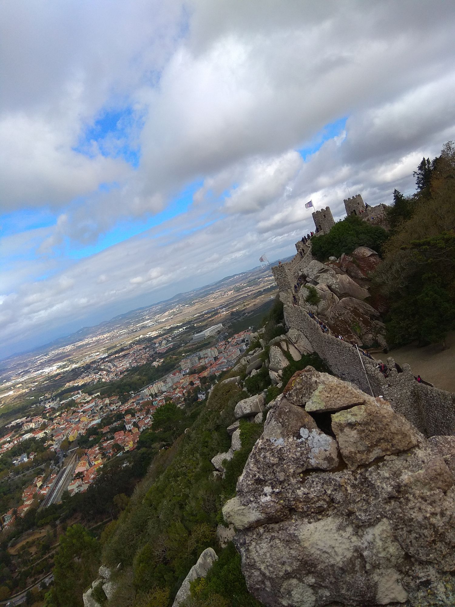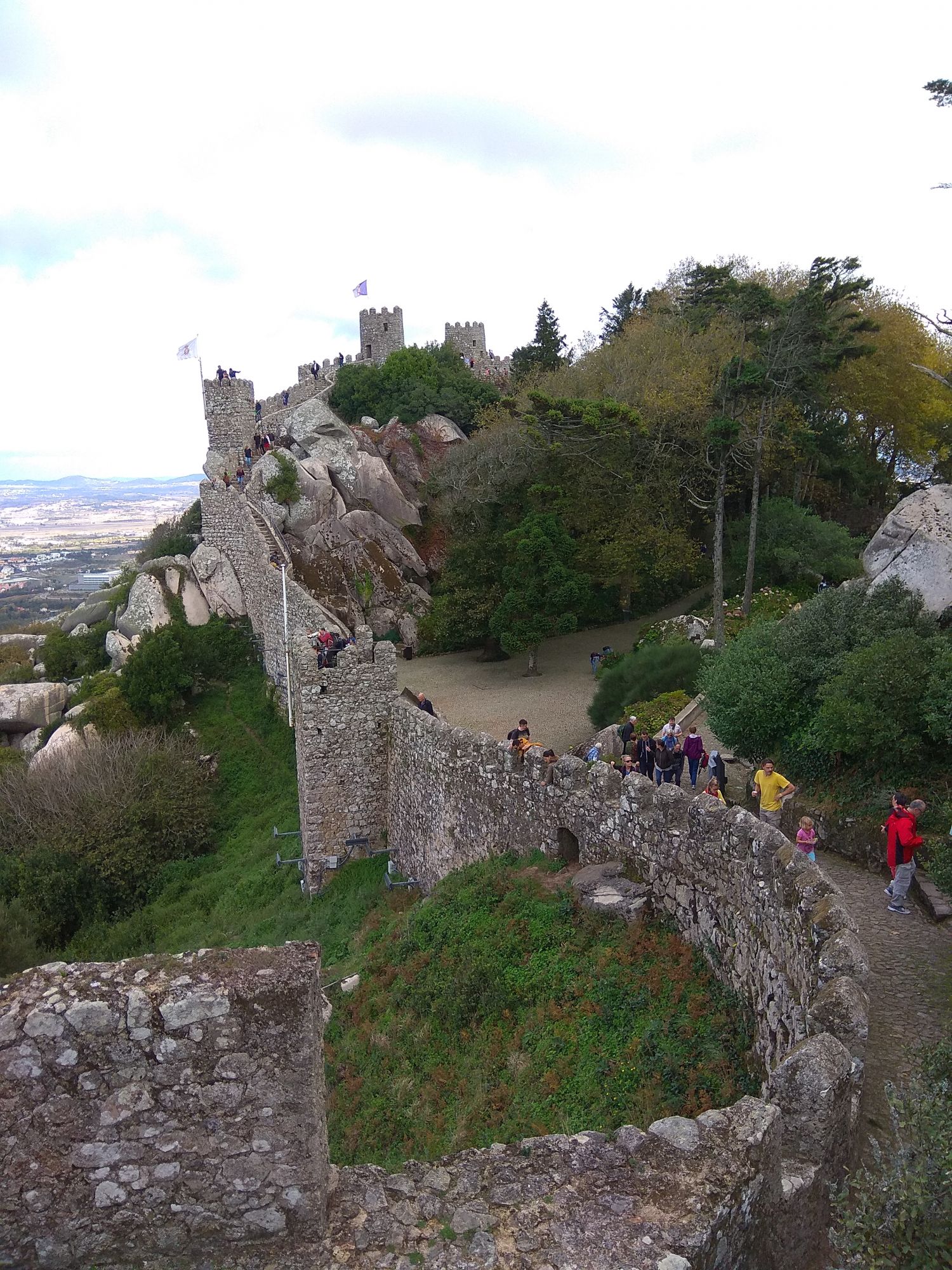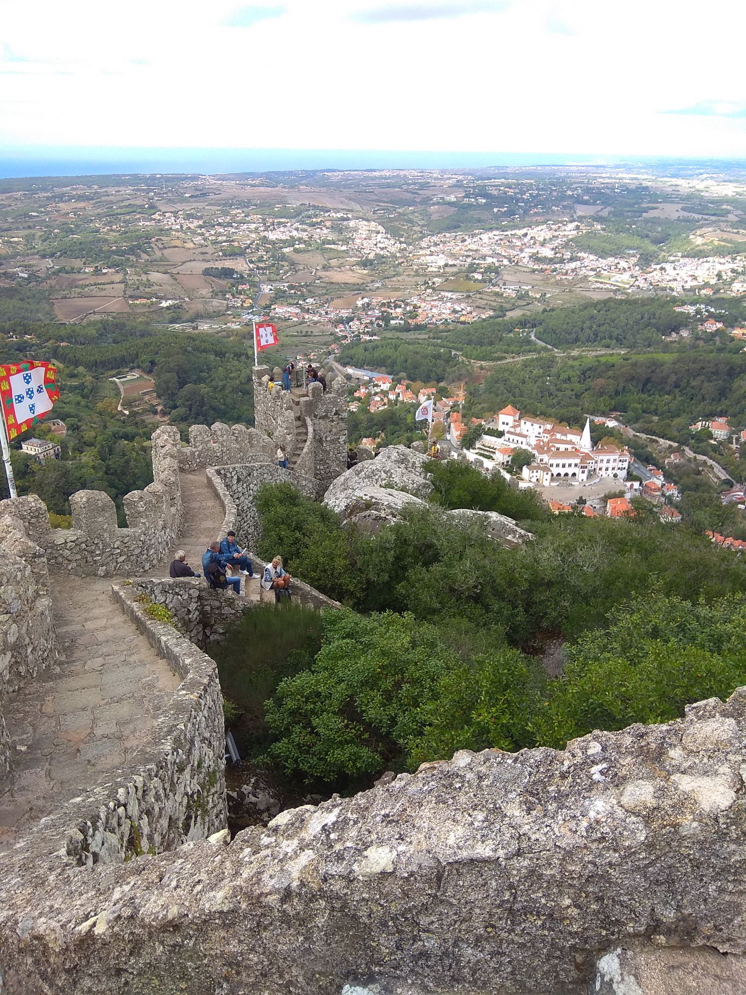 6 ноября 2019 Замок Мавров Видели на предыдущей фотке крепость на другой горе? Казалось бы далеко до нее. Ага, сейчас. Смешно, но от входа в Пену до входа в Мавров идти 10 минут. А остальное время топаешь вверх или вниз. В Пену меньше, в Мавров значительно дольше. Но какая же живописная дорога. Прям вот тут моя душа расцвела. Все, как я люблю. Валуны, развалины, красотка гортензия. Иди и любуйся вокруг. 8 век, была построена защитная крепость, с которой отлично просматривались и морские, и сухопутные пути. Длина стен по периметру около 450 метров на высоченном холме. Который к тому же имеет естественные и не очень пустоты, в том числе выходящие к морю. Практически неуязвимый объект. Крепость иногда посещали члены королевской семьи, но никогда здесь не останавливались. Слишком аскетично, на их вкус сие место. Не долго оно было форпостом, приходило в упадок постепенно и сильно было разрушено при землетрясении 1755 года. Оно вообще много чего разрушило или уничтожило в Португалии. И только в середине 19 все тот же Фердинанд 2, который построил Пену, дал команду на приведение в порядок и этого места. Только в 20 веке его полностью восстановили, произвели часть археологических раскопок и сделали памятником Можно осмотреть только его укрепительные сооружения, а можно по узкой и длинной лестнице подняться в смотровые башни. Самая высокая башня называется королевской, потому что именно сюда часто приходил король, чтобы не только полюбоваться видами, а они отличные, но и порисовать. Башню украшают флаги. Красный - являлся символом страны в 15 веке, затем правящий монарх сменил его белым флагом. В 1834 году цвета национального флага были сине-белыми, после появился современный вариант знамени, существующий сегодня. Все они развеваются вместе с зеленым флагом с надписью Синтра на арабском. А подняться не так-то и просто. Сильный ветер, который иногда сшибал с ног, внезапно начинал дуть, когда, поднимаясь, ровняешься с выемкой или окном. Это довольно неприятное ощущение. Кое-кто даже решил не подниматься вверх. Казалось бы, а что такого? А то, что с одной стороны стена и отвесный склон, а с другой просто отвесный склон - никаких перил. И если ветер сильно качнет или голова там закружится, то как бы каюк. )) Я себе сказала, что доползу, даже если на карачках придется лезть. И долезла, даже на своих двоих. А вот слезть легко. Есть спуск с другой стороны более удобный, но где ж романтика тогда. Вниз я пошла тоже по стене крепости, и что интересно, ветер не сдувал совершенно. Я ловила на себе недоуменные взгляды тех, кто шел вверх, когда практически вприпрыжку шла мимо них. В Синтру мы поехали в 9 утра, а когда вышли из Мавров, то оказалось, что уже 6, а мы только два замка успели посмотреть. А если бы еще внутрь Пены пошли, то сколько бы ходили. Почесали в затылке и решили уделить пригороду еще один день. Тем более в таком случае мы могли не только осмотреть внимательно поместье Кинта-де-Ригалейро, но захватить и Мыс Рока - западную точку Европы. Это уже было похоже на план. Спустились вниз и решили поесть. Ресторан недалеко от вокзала нашли с трудом. И, пожалуй, это было единственное место в Португалии, где я осталась в недоумении от обслуживания. Но вид на Мавров был отличный. Представьте себе такую картину. Официант приносит меню с картинками, но без цен. Картинки посмотрели, но неплохо б