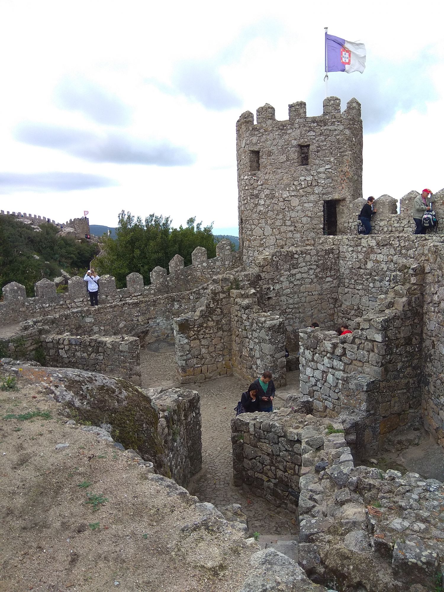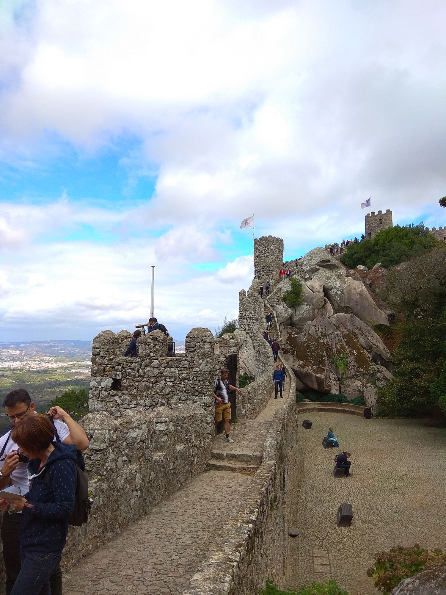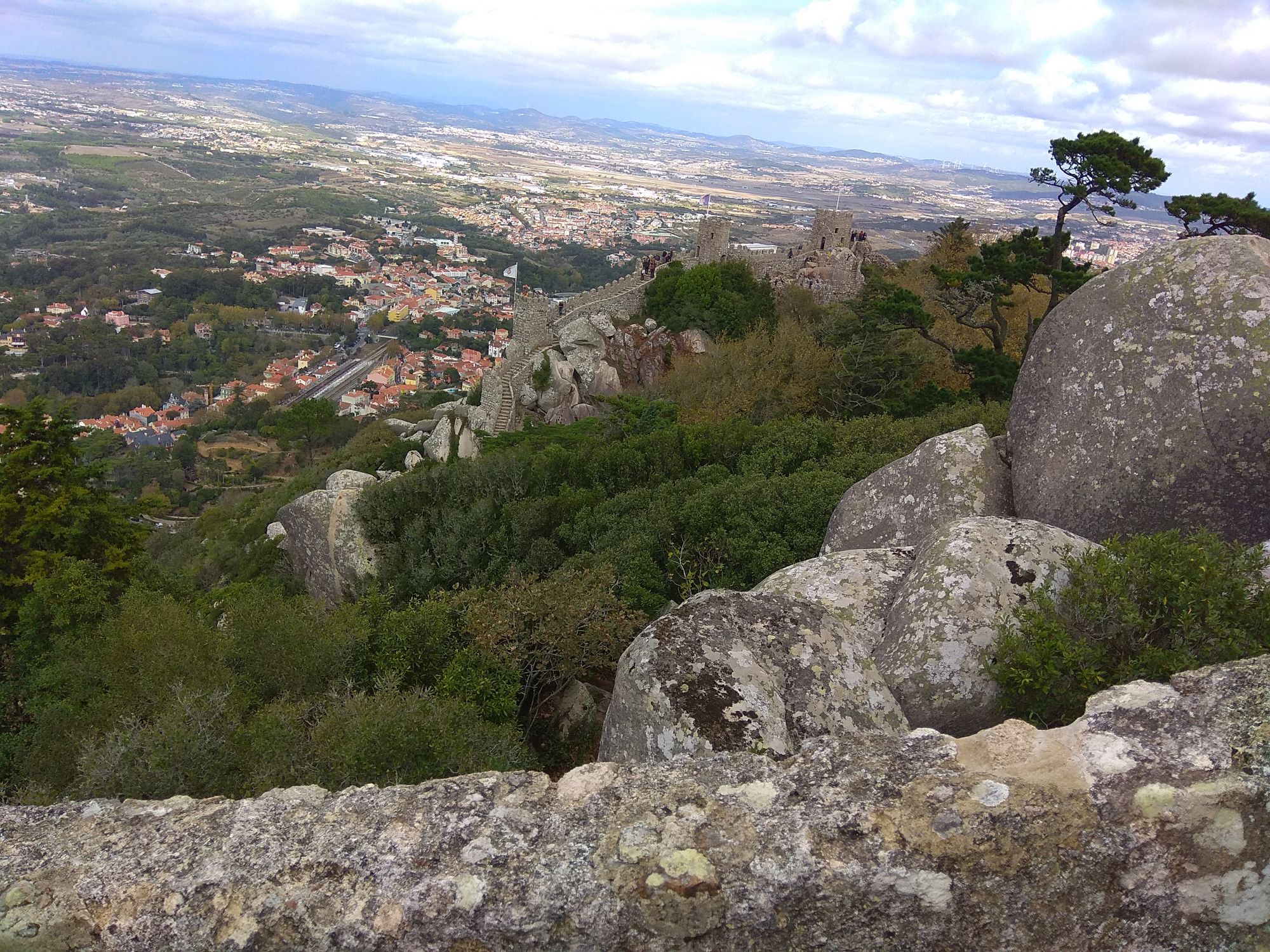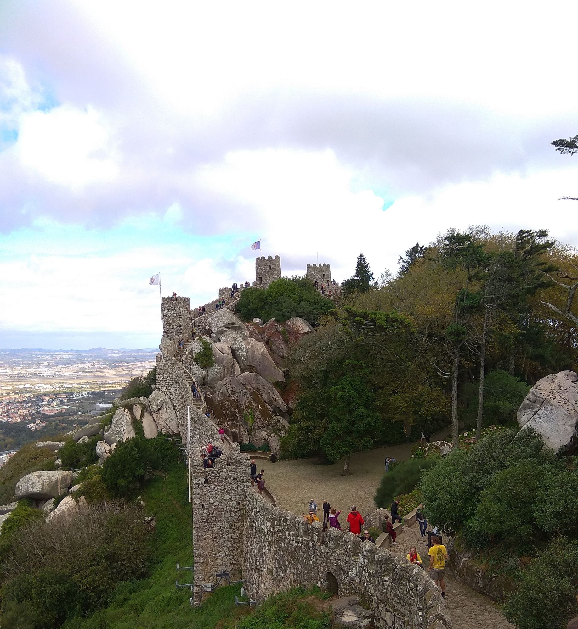 6 ноября 2019 Замок Мавров Видели на предыдущей фотке крепость на другой горе? Казалось бы далеко до нее. Ага, сейчас. Смешно, но от входа в Пену до входа в Мавров идти 10 минут. А остальное время топаешь вверх или вниз. В Пену меньше, в Мавров значительно дольше. Но какая же живописная дорога. Прям вот тут моя душа расцвела. Все, как я люблю. Валуны, развалины, красотка гортензия. Иди и любуйся вокруг. 8 век, была построена защитная крепость, с которой отлично просматривались и морские, и сухопутные пути. Длина стен по периметру около 450 метров на высоченном холме. Который к тому же имеет естественные и не очень пустоты, в том числе выходящие к морю. Практически неуязвимый объект. Крепость иногда посещали члены королевской семьи, но никогда здесь не останавливались. Слишком аскетично, на их вкус сие место. Не долго оно было форпостом, приходило в упадок постепенно и сильно было разрушено при землетрясении 1755 года. Оно вообще много чего разрушило или уничтожило в Португалии. И только в середине 19 все тот же Фердинанд 2, который построил Пену, дал команду на приведение в порядок и этого места. Только в 20 веке его полностью восстановили, произвели часть археологических раскопок и сделали памятником Можно осмотреть только его укрепительные сооружения, а можно по узкой и длинной лестнице подняться в смотровые башни. Самая высокая башня называется королевской, потому что именно сюда часто приходил король, чтобы не только полюбоваться видами, а они отличные, но и порисовать. Башню украшают флаги. Красный - являлся символом страны в 15 веке, затем правящий монарх сменил его белым флагом. В 1834 году цвета национального флага были сине-белыми, после появился современный вариант знамени, существующий сегодня. Все они развеваются вместе с зеленым флагом с надписью Синтра на арабском. А подняться не так-то и просто. Сильный ветер, который иногда сшибал с ног, внезапно начинал дуть, когда, поднимаясь, ровняешься с выемкой или окном. Это довольно неприятное ощущение. Кое-кто даже решил не подниматься вверх. Казалось бы, а что такого? А то, что с одной стороны стена и отвесный склон, а с другой просто отвесный склон - никаких перил. И если ветер сильно качнет или голова там закружится, то как бы каюк. )) Я себе сказала, что доползу, даже если на карачках придется лезть. И долезла, даже на своих двоих. А вот слезть легко. Есть спуск с другой стороны более удобный, но где ж романтика тогда. Вниз я пошла тоже по стене крепости, и что интересно, ветер не сдувал совершенно. Я ловила на себе недоуменные взгляды тех, кто шел вверх, когда практически вприпрыжку шла мимо них. В Синтру мы поехали в 9 утра, а когда вышли из Мавров, то оказалось, что уже 6, а мы только два замка успели посмотреть. А если бы еще внутрь Пены пошли, то сколько бы ходили. Почесали в затылке и решили уделить пригороду еще один день. Тем более в таком случае мы могли не только осмотреть внимательно поместье Кинта-де-Ригалейро, но захватить и Мыс Рока - западную точку Европы. Это уже было похоже на план. Спустились вниз и решили поесть. Ресторан недалеко от вокзала нашли с трудом. И, пожалуй, это было единственное место в Португалии, где я осталась в недоумении от обслуживания. Но вид на Мавров был отличный. Представьте себе такую картину. Официант приносит меню с картинками, но без цен. Картинки посмотрели, но неплохо б