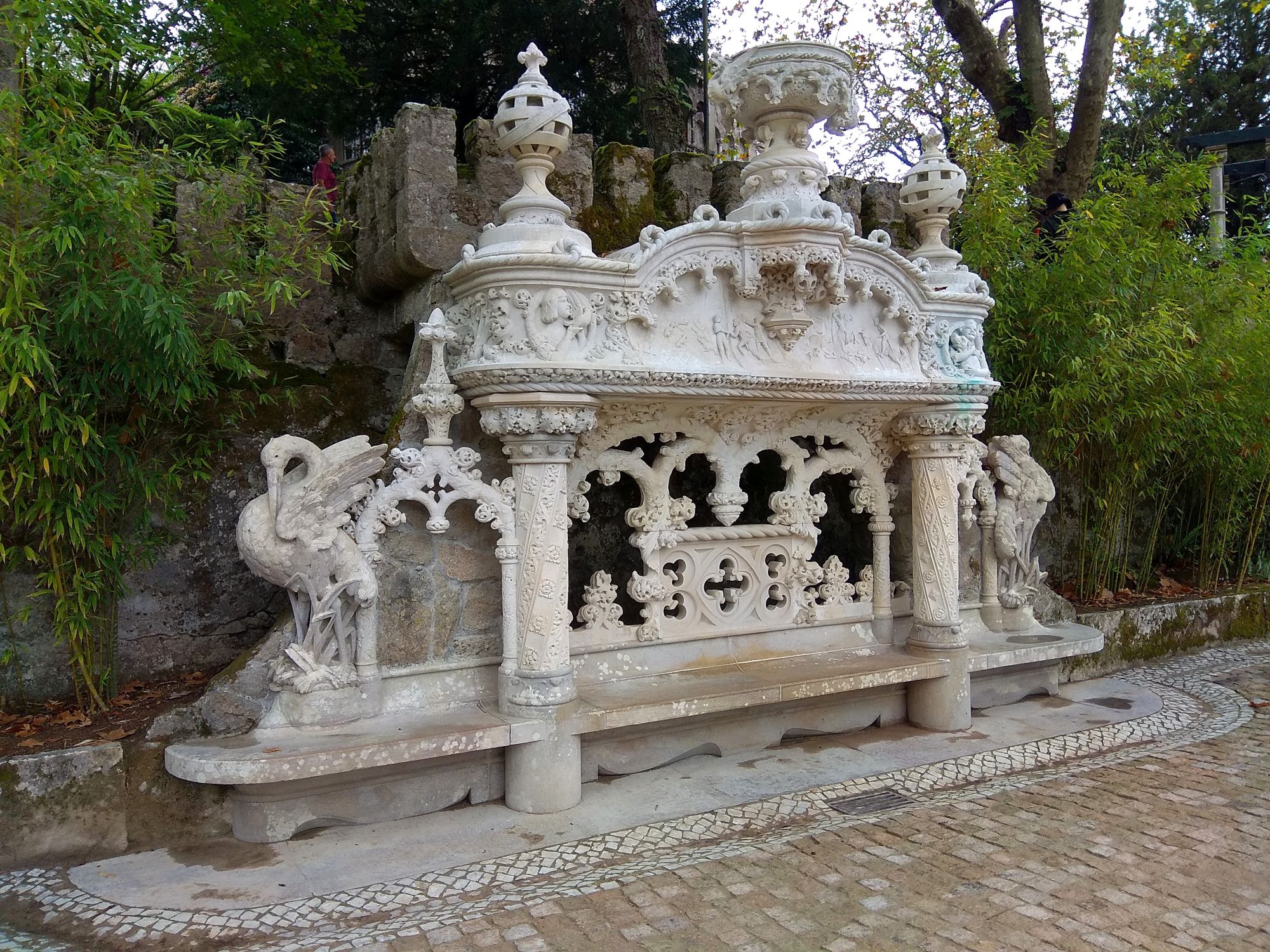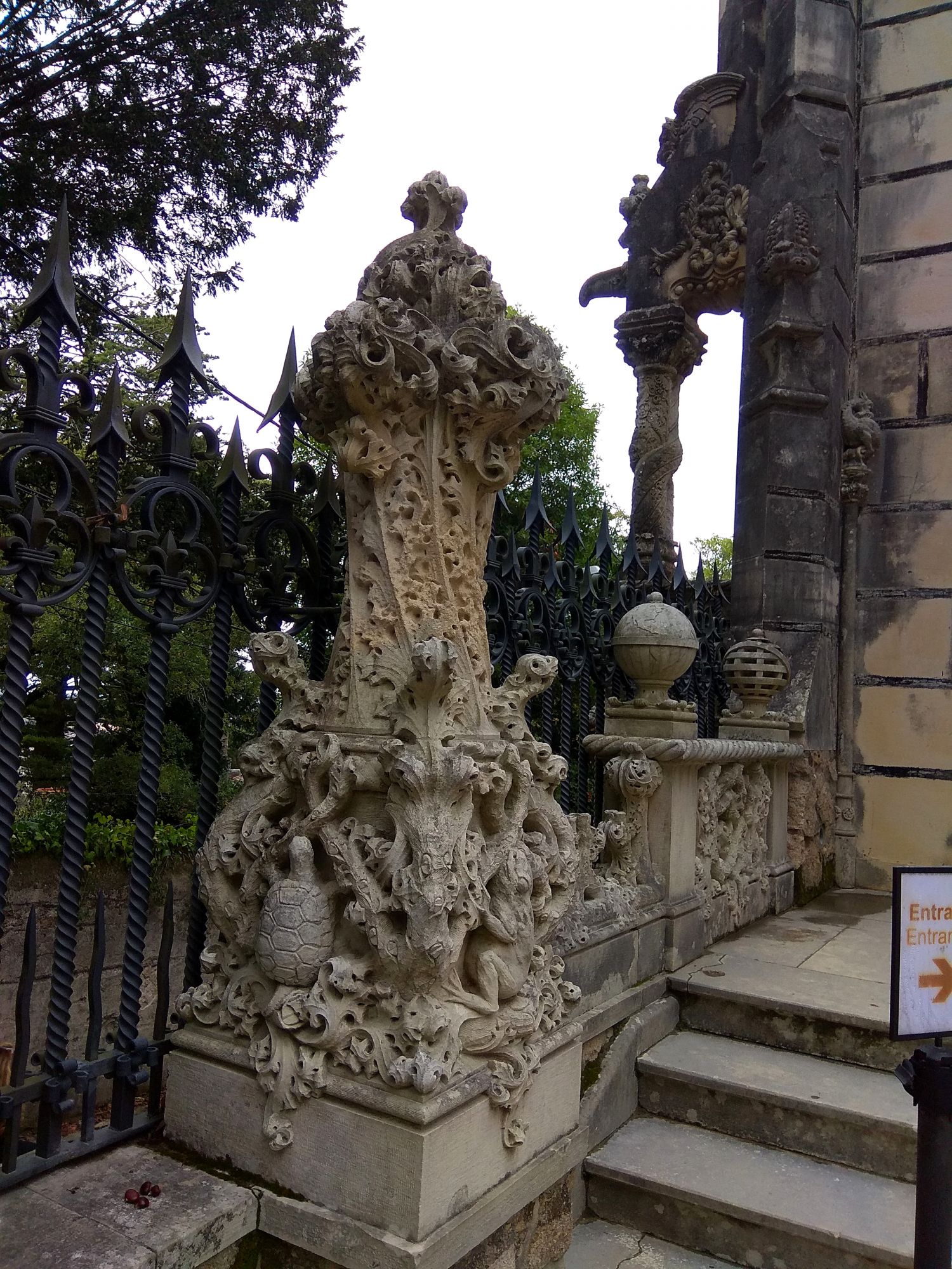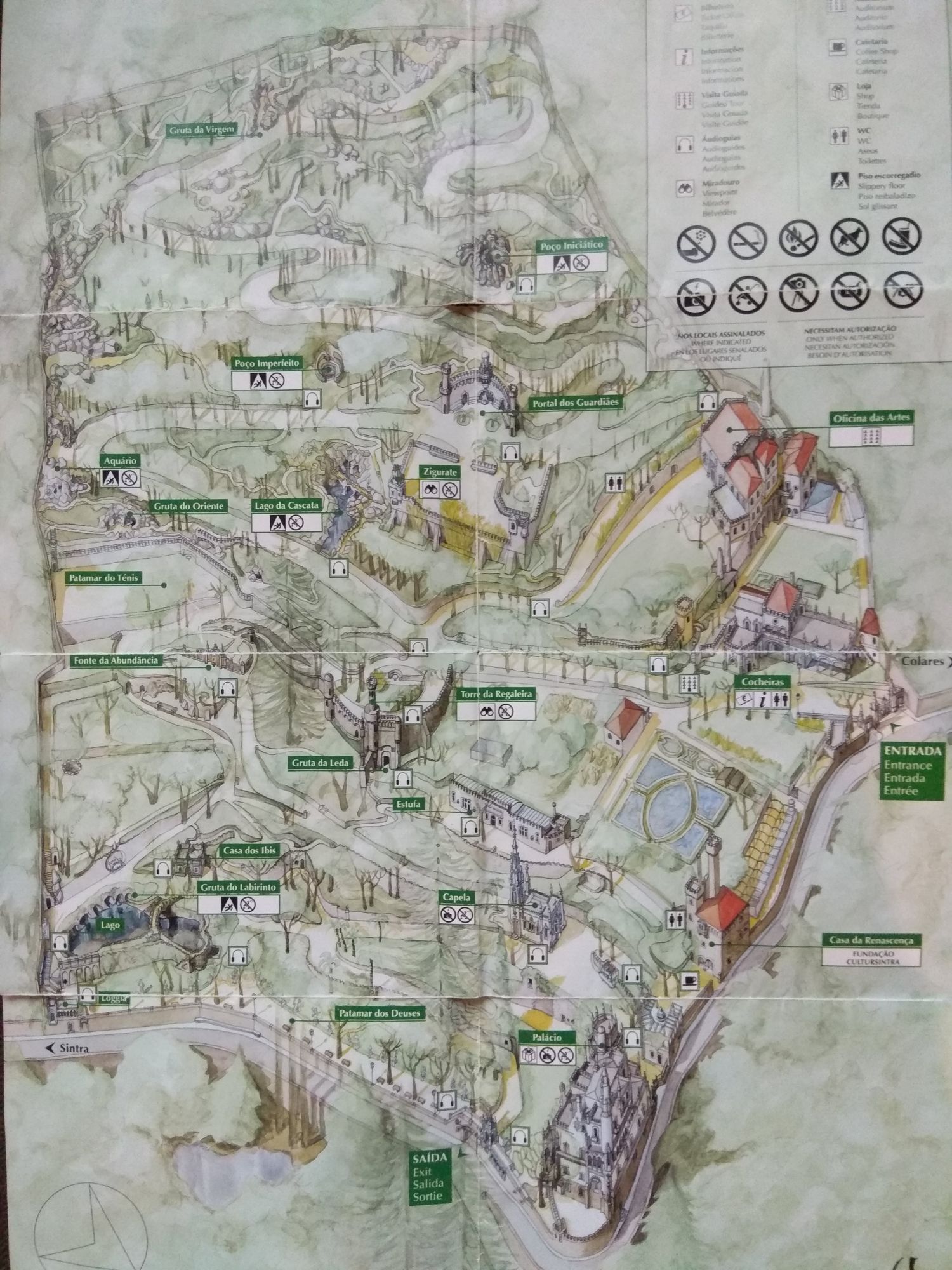 11 ноября 2019 И вот мы плавно, очень плавно, добрались до заключительных отчетов моего путешествия в Португалию. Замок, с которого мы начнем, весьма интересное местечко. Жаль только, что мой фот решил крякнуться в тот момент, и все пришлось снимать исключительно на телефон. Кинта да Регалейра Красивое название правда? Если заморочиться переводом, то Кинта - это вилла, а по поводу происхождения есть местная байка, связанная с латинским словом регал, что означает царственный. И местные любят рассказывать, что некто знатный, посмотрев вокруг, воскликнул именно: "Царственный вид". Но вряд ли это правда. И вообще в оригинале, без переводов, звучит гораздо круче и загадочнее. Первое впечатление от главного строения, что его сделали по типу замков из мокрого песка. Мы с детьми так часто на пляже развлекаемся, надо сказать, что это даже успокаивает, когда песок сквозь пальцы течет и получаются в итоги интересные башенки. И тут также. )) Замок - это первое, что мы видим, когда приезжаем на место, но вход на территорию в середине. А чтобы был понятен масштаб, вот карта всей усадьбы, по которой мы гуляли. А вот там в самом низу он, но к нему попадаешь уже практически на выходе. И это абсолютно верно, потому что сады поместья в разы интереснее самого дома. Об усадьбе не так уж и много известно. Первые упоминания найдены в 1697 году о покупке земли у муниципалитета. Далее хозяева меняются, а свое сегодняшнее название поместье получает в 1830 году, когда его во владение получает некая дама с титулом баронессы Ригалейра. Вот еще один вариант приобретения названия. Но главным человеком в истории места стал Антонио Монтейру. Это был богатый человек, приближенный к королевскому двору, немного или много эксцентричный, что и отразилось потом на Кинта да Регалейра. В архитектуре дома и садов он решил воплотить все свои детские и не очень мечты, наполнить все таинственностью, различными символами и даже лабораторией алхимии, построив "Дворец философии". Строительство началось в 1898 году, а закончилось лишь в 1912. И сам Антонио смог пожить в доме мечты лишь 8 лет. Затем потомки быстренько все пропили и продали, как это часто бывает. Португалия смогла выкупить поместье у японского конгломерата лишь 1997 году. Кстати, единственное, что осталось от баронессы Ригалейра до сих пор, от Монтейру, понятное дело больше, это лев в парке. А вдалеке на горе можно разглядеть замок Мавров. Итак, помимо всяческой таинственности, которая воплощалась не только в архитектуре, но и в многочисленных гротах, мостиках, провалах, одной из главных целей Монтейру было сделать так, чтобы замок и садовые постройки не выделялись из окружающей среды, а как бы являлись ее естественным продолжением. И надо признаться, что ему это во многом удалось. Все башенки, фонтаны и мостики выглядят очень естественно, совсем не нарушают ландшафт. Иногда возникают как будто бы ниоткуда. Узкие лесенки, есть практически везде. Сад сделан многоуровневым, ну это понятно, сам холм Синтра этому обязывает. Но архитектор сделал возможным разные способы перемещения по территории. Это и широкие плавные подъемы по типу серпантина, и небольшие ходы, позволяющие сократить путь, но по более крутой траектории. А иногда короткий спуск был возможен только через башни. Они темные и местами совсем нет света. Потрясающее ощущение. Сад не есте