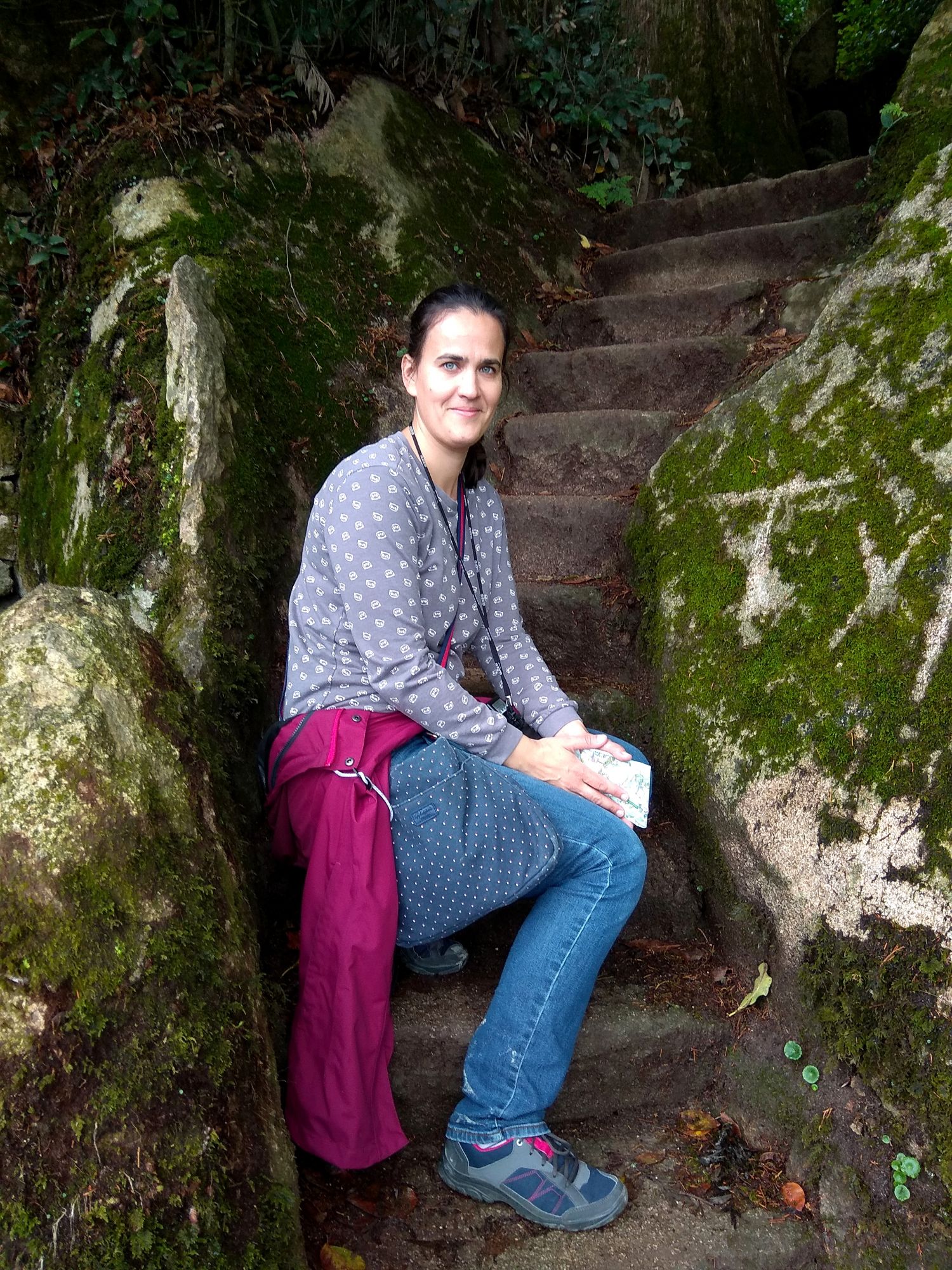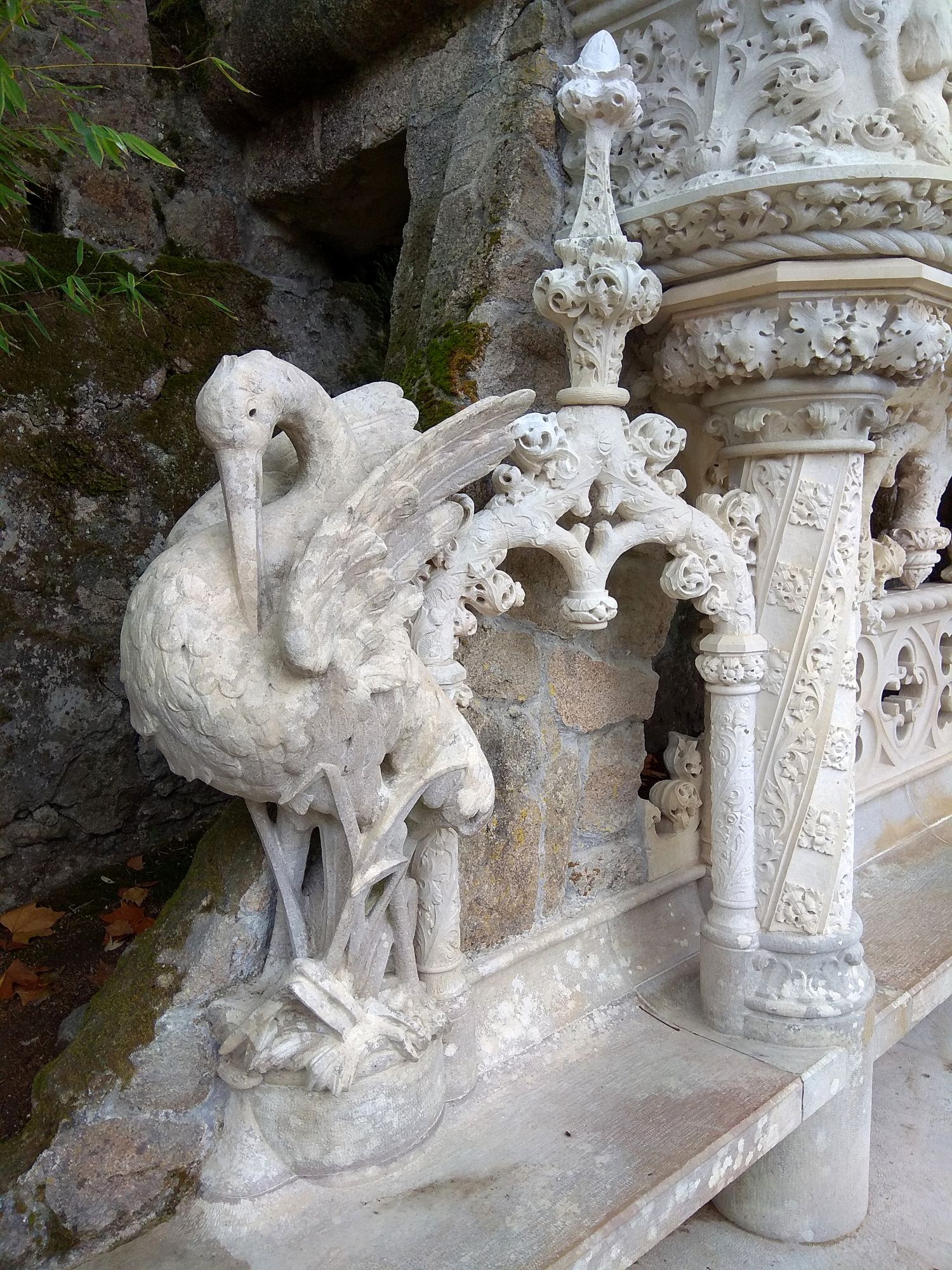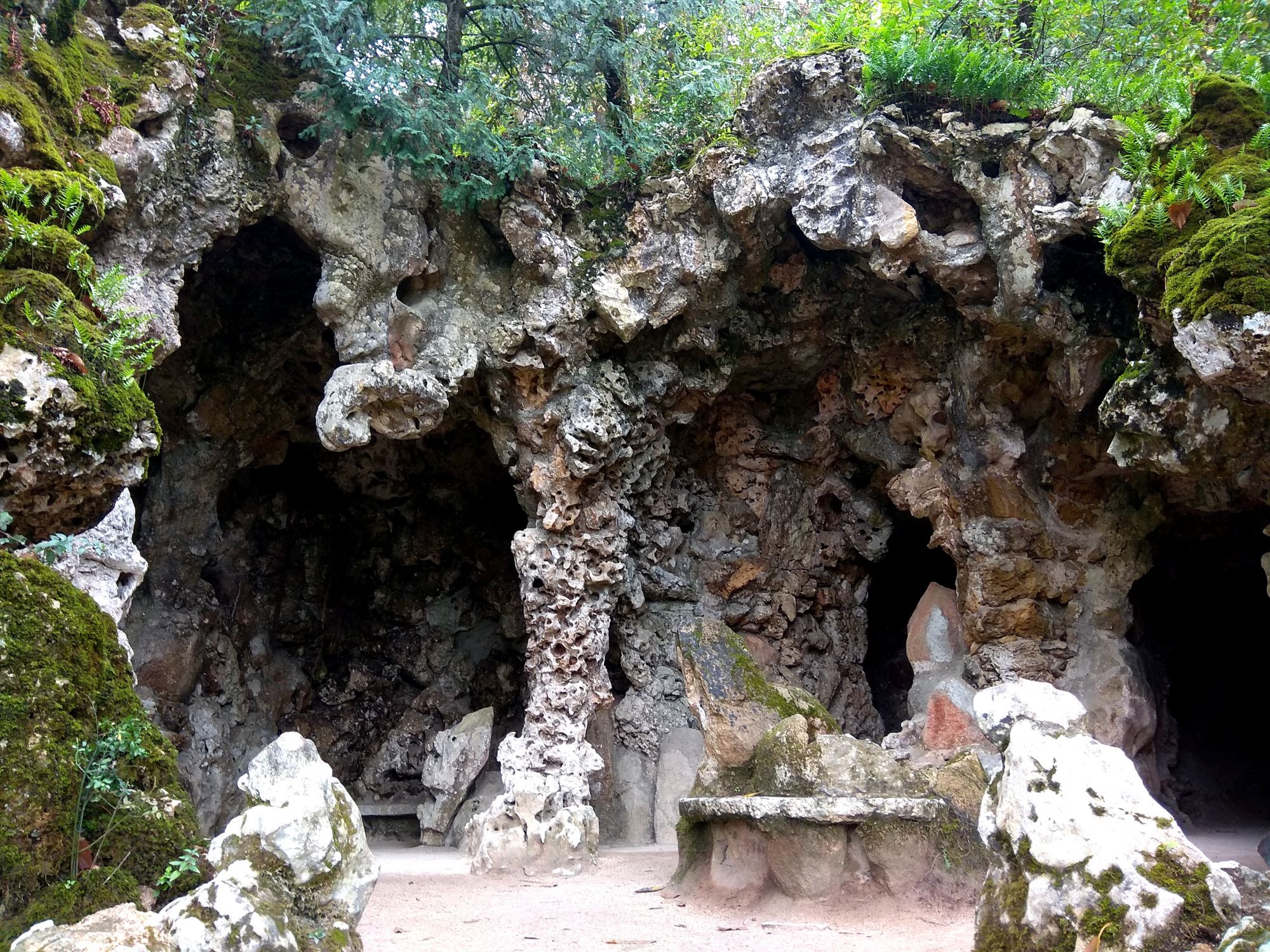 11 ноября 2019 И вот мы плавно, очень плавно, добрались до заключительных отчетов моего путешествия в Португалию. Замок, с которого мы начнем, весьма интересное местечко. Жаль только, что мой фот решил крякнуться в тот момент, и все пришлось снимать исключительно на телефон. Кинта да Регалейра Красивое название правда? Если заморочиться переводом, то Кинта - это вилла, а по поводу происхождения есть местная байка, связанная с латинским словом регал, что означает царственный. И местные любят рассказывать, что некто знатный, посмотрев вокруг, воскликнул именно: "Царственный вид". Но вряд ли это правда. И вообще в оригинале, без переводов, звучит гораздо круче и загадочнее. Первое впечатление от главного строения, что его сделали по типу замков из мокрого песка. Мы с детьми так часто на пляже развлекаемся, надо сказать, что это даже успокаивает, когда песок сквозь пальцы течет и получаются в итоги интересные башенки. И тут также. )) Замок - это первое, что мы видим, когда приезжаем на место, но вход на территорию в середине. А чтобы был понятен масштаб, вот карта всей усадьбы, по которой мы гуляли. А вот там в самом низу он, но к нему попадаешь уже практически на выходе. И это абсолютно верно, потому что сады поместья в разы интереснее самого дома. Об усадьбе не так уж и много известно. Первые упоминания найдены в 1697 году о покупке земли у муниципалитета. Далее хозяева меняются, а свое сегодняшнее название поместье получает в 1830 году, когда его во владение получает некая дама с титулом баронессы Ригалейра. Вот еще один вариант приобретения названия. Но главным человеком в истории места стал Антонио Монтейру. Это был богатый человек, приближенный к королевскому двору, немного или много эксцентричный, что и отразилось потом на Кинта да Регалейра. В архитектуре дома и садов он решил воплотить все свои детские и не очень мечты, наполнить все таинственностью, различными символами и даже лабораторией алхимии, построив "Дворец философии". Строительство началось в 1898 году, а закончилось лишь в 1912. И сам Антонио смог пожить в доме мечты лишь 8 лет. Затем потомки быстренько все пропили и продали, как это часто бывает. Португалия смогла выкупить поместье у японского конгломерата лишь 1997 году. Кстати, единственное, что осталось от баронессы Ригалейра до сих пор, от Монтейру, понятное дело больше, это лев в парке. А вдалеке на горе можно разглядеть замок Мавров. Итак, помимо всяческой таинственности, которая воплощалась не только в архитектуре, но и в многочисленных гротах, мостиках, провалах, одной из главных целей Монтейру было сделать так, чтобы замок и садовые постройки не выделялись из окружающей среды, а как бы являлись ее естественным продолжением. И надо признаться, что ему это во многом удалось. Все башенки, фонтаны и мостики выглядят очень естественно, совсем не нарушают ландшафт. Иногда возникают как будто бы ниоткуда. Узкие лесенки, есть практически везде. Сад сделан многоуровневым, ну это понятно, сам холм Синтра этому обязывает. Но архитектор сделал возможным разные способы перемещения по территории. Это и широкие плавные подъемы по типу серпантина, и небольшие ходы, позволяющие сократить путь, но по более крутой траектории. А иногда короткий спуск был возможен только через башни. Они темные и местами совсем нет света. Потрясающее ощущение. Сад не есте