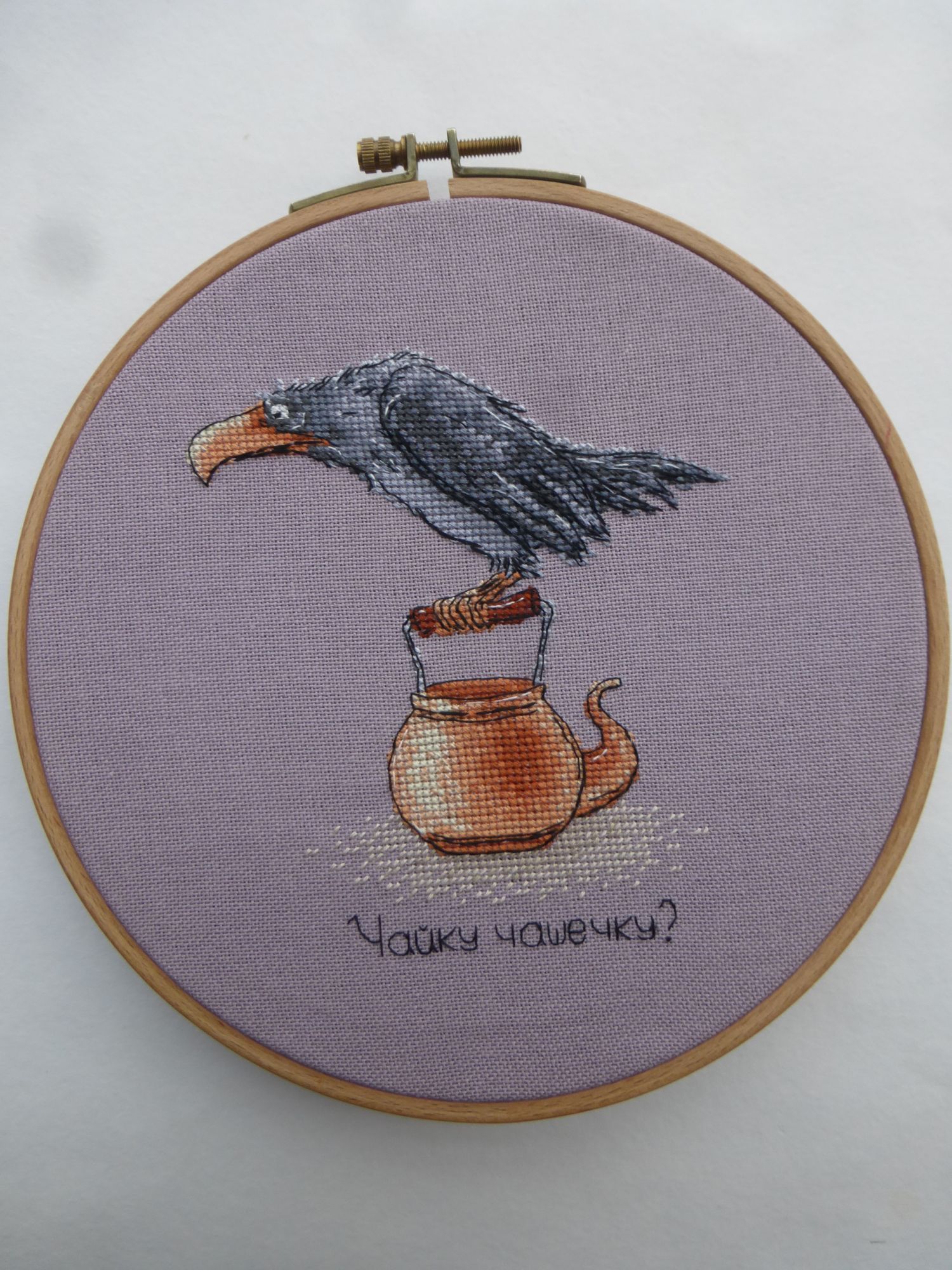 14 ноября 2019 Всем привет! У меня сегодня отчет с тремя прекрасными мужчинами. Они совсем разные по характеру и типажу, но однозначно притягательные личности. Кэп Си Вряд ли помните, но у меня были страдания юного Вертера по основе. Подойдет ли или совсем сольется с птыцем. Не, опыт мне конечно подсказывал, что бэк даже белый на белом делает объемным, но червячок сомнения не то что бы глодал, а прямо-таки грыз. Но обошлось. Да, он не работает на контрасте, но вполне себе виден, мой Кэп. Глаза решила делать бисером, мне понравилась эта задумка еще с курей. Но тут произошел забавный эффект. Правый его глаз уже левого, близко бэк, поэтому бисер зрительно расширился, а мой красавчик стал немного ку-ку. Косит глазом или он дергается - тут можно выбирать любой из вариантов, но это добавило ему шарма. Ворон финиш! Как-то быстро у меня закончился этот товарищ. Я еще только начала его шить, а у меня уже в голове звучал его голос:"Чайку чашечку?" Я решила, что это фраза достойна упоминания и на самом сюжете. Я довольна основой. Хотелось мне такого полуночного чаепития, оно и получилось таким, как я задумывала. Крестики вышились легко, а вот бэк был немного проблематичным. Черный по темно-серому шился вечером не очень приятно, глаза приходилось напрягать. Это моя третья Нагорная, теперь я точно уверена, что ее лучше шить на 28 каунте. Бэк ложится и ровнее и проще его делать в принципе. Кстати, нашла скетч по которому нарисован сюжет. Я считаю, что в вышитом виде он не менее крут, чем на картинке. Авиатор финиш! Я влюблена, полностью и бесповоротно в этого замечательного медведя. Ну как можно сделать плюшевого таким брутальным и притягательным. Полярный летчик удался на славу. Я попискивала от восторга от каждой детали, таскала Ольке и говорила: " Ну посмотри, посмотри, какой он. Он такоооой!" Здесь и цвета подобраны шикарно и бэк счетный, неполный, но каков объем деталей?! А самолетик, а очки, а ботинки, подтяжки. Да все от начала и до конца. Причем даже без бэка он выглядит полноценным. Браво Екатерине Тарасовой, дизайнеру этого проекта. На этом прощаюсь, плодотворных выходных нам и отличной недели. Татуся, irinka-mandarinka, Morning и 58 других сказали спасибо Поделиться сообщением Ссылка на сообщение