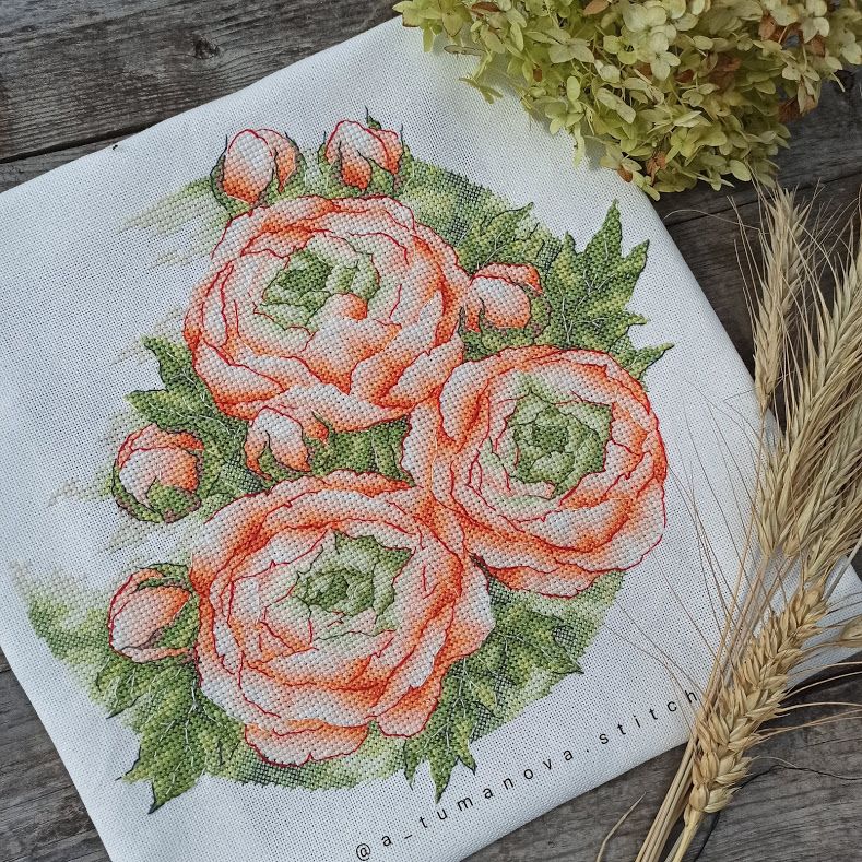 20 августа 2020 Всем привет! Я сегодня отчитываюсь практически на бегу. Пытаюсь ухватить за хвост последние летние деньки и набраться впечатлений. Персиковые ранункулюсы. Вот тут совсем не знаю, что написать. Никаких у меня претензий к схеме нет, она логичная и цвета друг с другом перекликаются прекрасно. Правильно МарСанна недавно написала, что хвалить каждый раз не за что, то ли дело ругать. Единственное, что отмечу, персиковые цвета шьются гораздо быстрее, чем зеленые. Но это связано с моей персональной нелюбовью к много зеленому. Хозяйка медной горы старт! по схеме Татьяны Шаровой, 71х200 крестиков, 30 цветов дмс Некоторые наверное помнят мою Снегурочку. Это вторая девочка из серии: Хозяйка Медной горы. Кстати, Таня рисует их не по картинкам, а сама с кукол художницы Анны Фадеевой. Я давно ждала эту разработку. Мне хотелось пошить этими малахитовыми цветами. И это кайф. Я с огромнейшим удовольствием ими шью, они невероятно красивые. Сама девочка не сложная, за исключением "шапки". Она весьма и весьма кропотлива, в плане закрепления ниточек. Есть одиночки и группки по 2-3 крестика на пустых местах. В остальном нет никаких проблем. Предвкушаю длинную и шикарную юбку. Также размышляю над тем, делать ли бусики мелким бисером, все-таки как никак самоцветы, или накрутить фрузели. Хомячок Мои девочки, каждый год меня радуют подарками. Пришла первая часть на ДР. Это почти 100 моточков ДМС, чтобы авторские схемы не прекращались вышиваться, и 6 новых отрезов ткани. Три хлопка и три льна. Я очень довольна. Будут еще наборчики, но они в пути. На этом прощаюсь до следующей недели. Всем пока. Selinta, Snow, Catopuma и 59 других сказали спасибо Поделиться сообщением Ссылка на сообщение