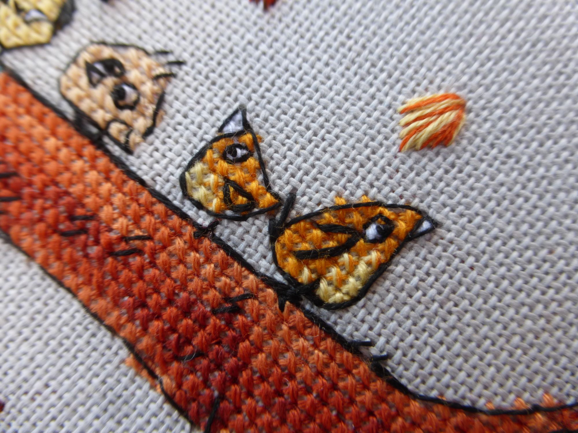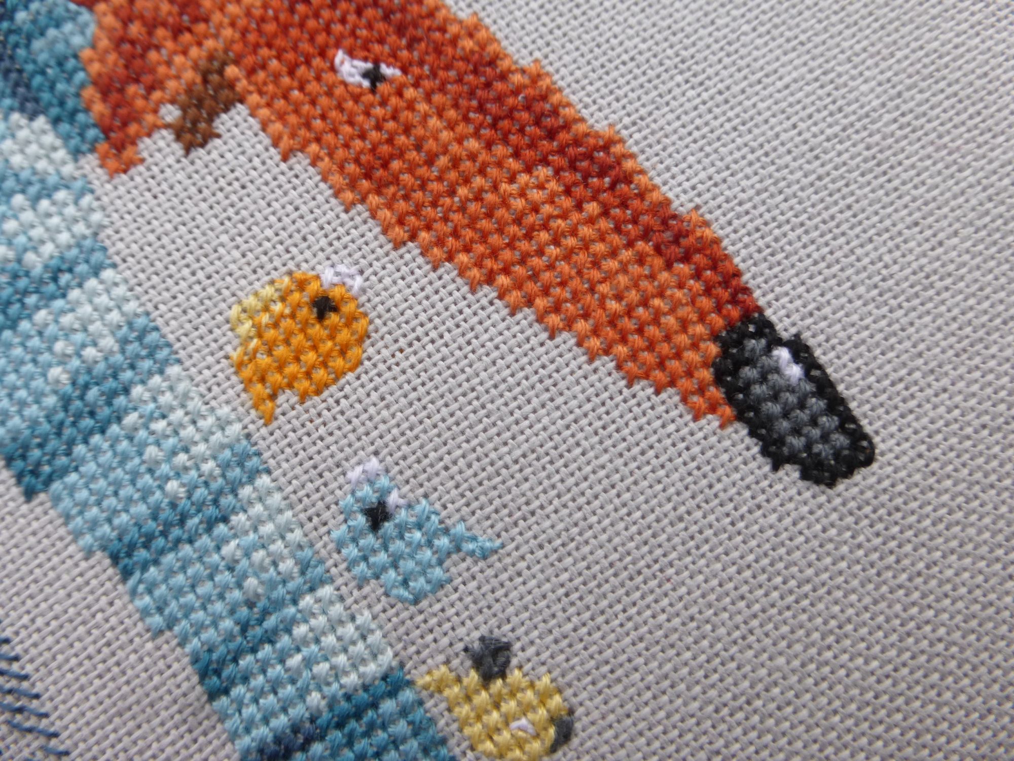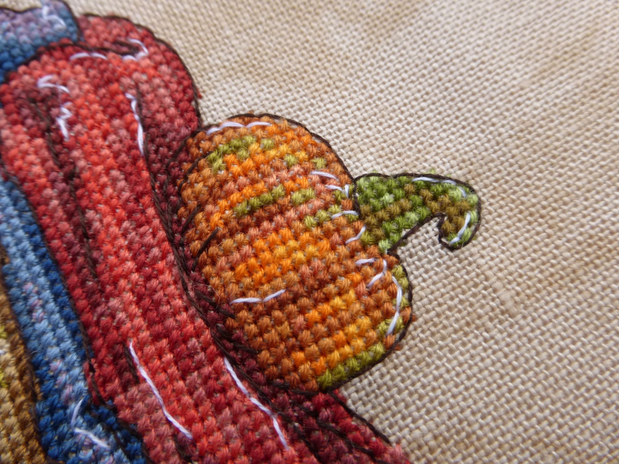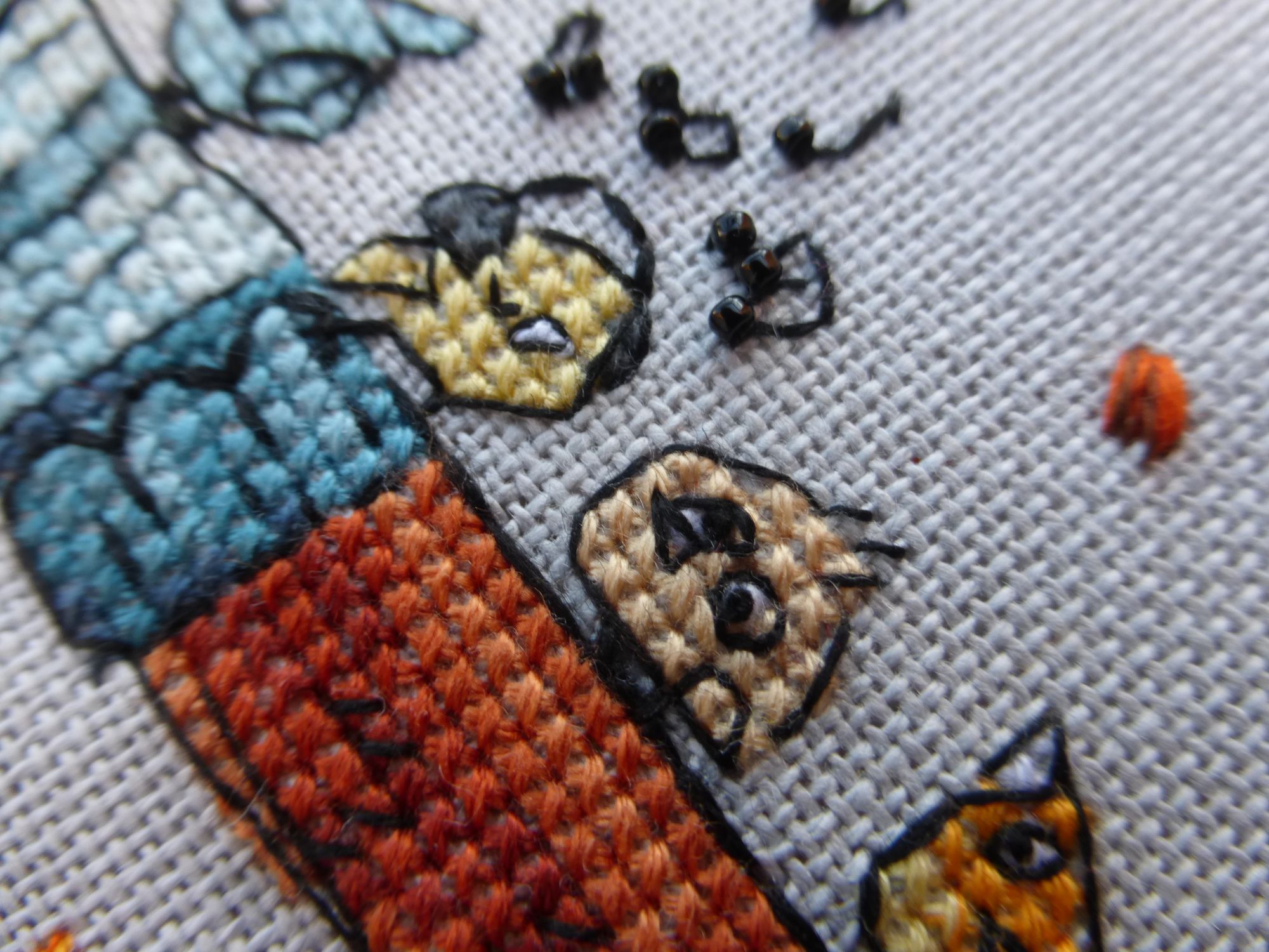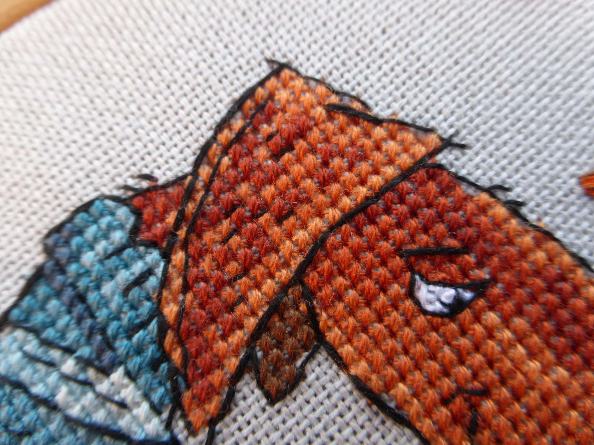 22 октября 2020 Всем привет! Пора домой финиш! Закончился мой уютный процесс. И осень золотая закончилась. Стала холодной, дождливой и ветреной. Самое время укрыться пледом, а тут их полно на любой вкус. Процесс был несложным совсем, особенно в крестиках. Никаких тебе одиночек, никаких мелких группок. Нитка длится и длится. Сам он небольшой, так что смена цветов происходила вовремя. Не успевал надоесть красный, вот тебе синий. Бэк чуть посложнее. Легче шить постоянную линию, чем всякие закорючки разрозненные. Но в целом тоже без особых проблем вышился. Не могу сказать, что схемы Гафенко прям любовь-любовь, но и дальше буду для себя их рассматривать, как возможные. Кстати, чемодан похож на чемодан пилотов, которых мы с Олькой шили раньше. Листопад старт и финиш! по схеме Екатерины Тарасовой, размер 101х64 крестика, 18 цветов А потом я поняла, что соскучилась по своим дурашкам, и мне срочно нужен кто-то новый в процесс. Так вот появился таксик. И так получилось, что процесс сразу стал финишем. Катя - тот же дизайнер, что нарисовала моего мишку-авиатора. Это я к чему, а к тому, что шилась она у меня быстро и с большим удовольствием. Я сначала подумала, что просто вышью пса и птах, а листья - ну зачем они здесь. Вышила, посмотрела, пустовато. Дай, думаю, попробую. Если что, распустить недолго. И не смогла оторваться. Листья здесь чуть ли не главная изюминка, один из основных компонентов гармоничности картинки. Они делаются блендом в три нити, я кое-где сделала в две. Сложно крепятся из-за этого, но результат стоит того, хоть и не сильно передается на фотках. Нотки тоже не стала делать фрузелками, добавила объема за счет мелкого бисера. Довольна страшно. А у Кати еще полно всяких забавных схем. На этом прощаюсь до следующей недели. Всем удачи и настроения творить )) IrnKA, Кисуля, vasilisa-1977 и 62 других сказали спасибо Поделиться сообщением Ссылка на сообщение