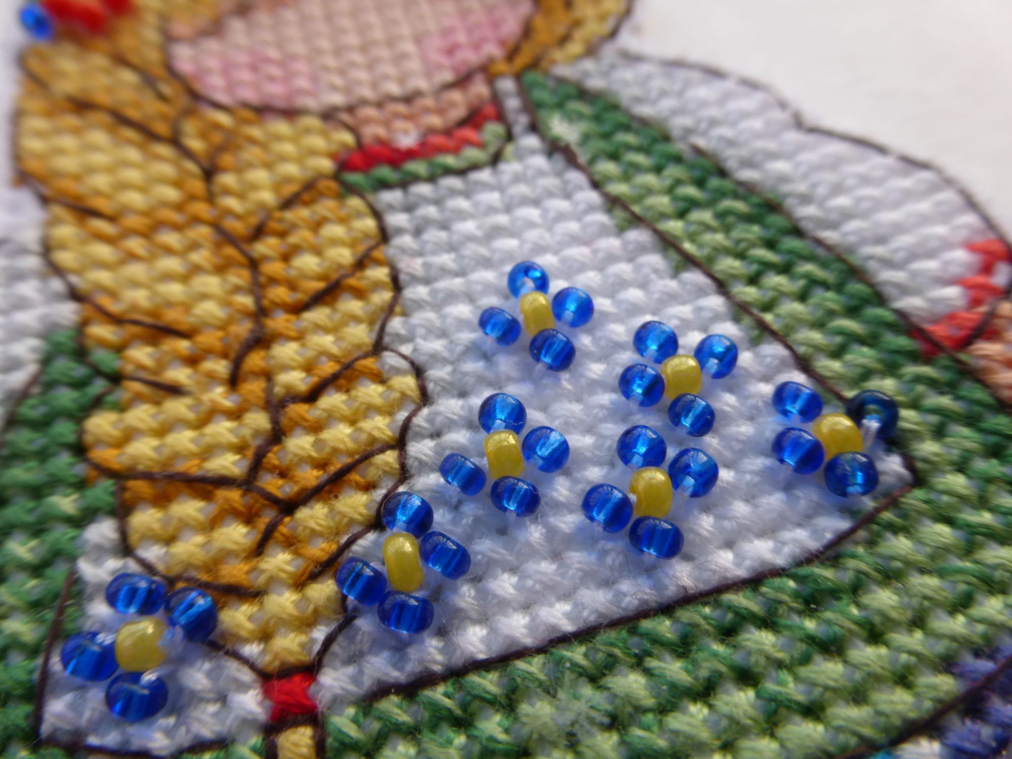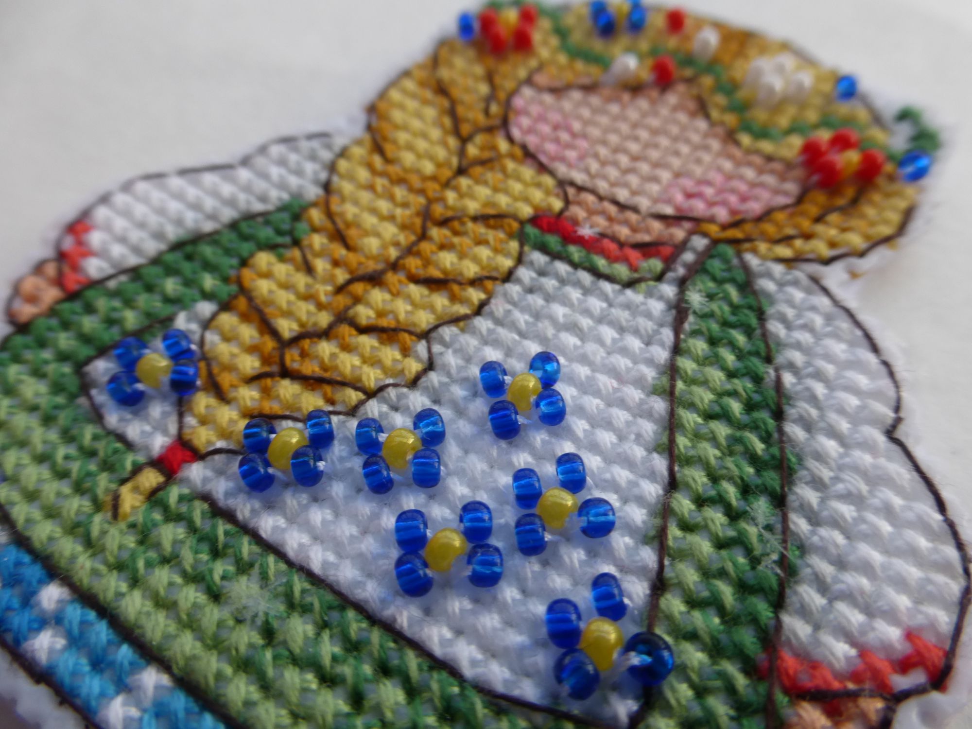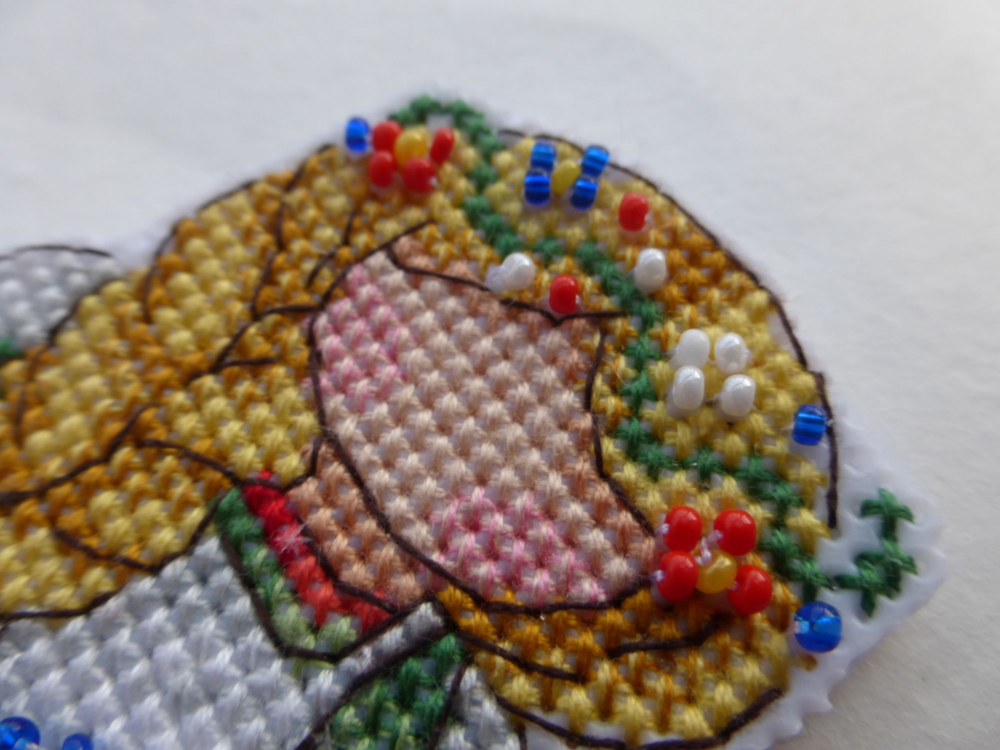 11 февраля 2021 Всем привет! Неделя выдалась спокойная. Так что почти все процессы, которые шью, получили продвижение. Весна скоро финиш! Мой любимчик внезапно закончился. Он принес мне просто массу позитива при отшиве, что в крестиковой, что в бэковой части. Сам бэк легкий. Небольшое затруднение вызвала прямая линия по пустому пространству, на льне вечно уезжает она в сторону. А сама рожица полностью счетная и такая забавная. Не зря взяла этот лен, он великолепно подошел под дизайн. Конкурс костюмов Тут просто чудо, а не процесс. Да немного трудоемок бэк, но лишь из-за двойной белой, она стремится расползаться на 2 при любом удобном случае. Все никак себя не соберу в кучку и не попробую перле, чтобы в одну ниточку. Это лишь от лени, честное слово. Надо же вставать и что-то брать. А в остальном очень оптимистичная картинка. Ну и остался самый мимими с кучей розового и фиолетового. Потираю ручки в предвкушении. И думаю, может второму лисенку пуговки настоящие пришить, как думаете? Первый снег Тут тоже никаких сложностей, даже бэковых. Процесс, когда надо отключить голову и отдохнуть. Единственное что в нем немного не так - это отличие от обложки. Довольно сильное. Обложка прилично высветлена, а здесь более насыщенные цвета получаются. Верхние листики по превью скорее желтые, а не оранжевые. Да и нижний лист менее бордо. Пока не критично, но контрастнее, чем мне хотелось бы. Впрочем, буду смотреть на готовую уже, возможно уравновесятся. Овечки и клубочки Мысль вышить овечку фрузиками пришла внезапно. Вспомнился мне мой баран от Ирины Наниашвили с 1000 фрузелей, и я решила, а чего бы нет. Только взяла шерсть из набора Риолис, да иголку потолще. Получилось очень клево. Крутилось легко, да и забавная вышла бяшка по итогу. Как будто ей костюмчик чуток маловат. Русские обереги старт! МП Студия Р-338 Как-то сидела я, смотрела киношку и захотелось мне чего-то маленького и простого. Ну и вот. Взяла обережки от МП, не выбирала особенно, просто первую схему вытащила и стала шить. В отличии от шарика с рябиной, это меня совсем не раздражало, скорее нравилось даже. Столкнулась с известной ошибкой в наборах МП, где они вкладывают светлый серый вместо более темного. Из-за этого теряется переход от белого к серому, и совсем исчезает необходимость бленда из них. В итоге распустила и взяла более темный из другого набора МП. Стало лучше, но имхо надо бы еще темнее, но где ж их взять? ))) Ну и захотелось мне бисер использовать из остатков, чтобы было пообъемнее и веселее. Вроде бы даже и ничего так получилась куколка. На этом прощаюсь до следующей недели. Всем здоровья и вышивача. maui, TheSunniestDay, titania и 55 других сказали спасибо Поделиться сообщением Ссылка на сообщение