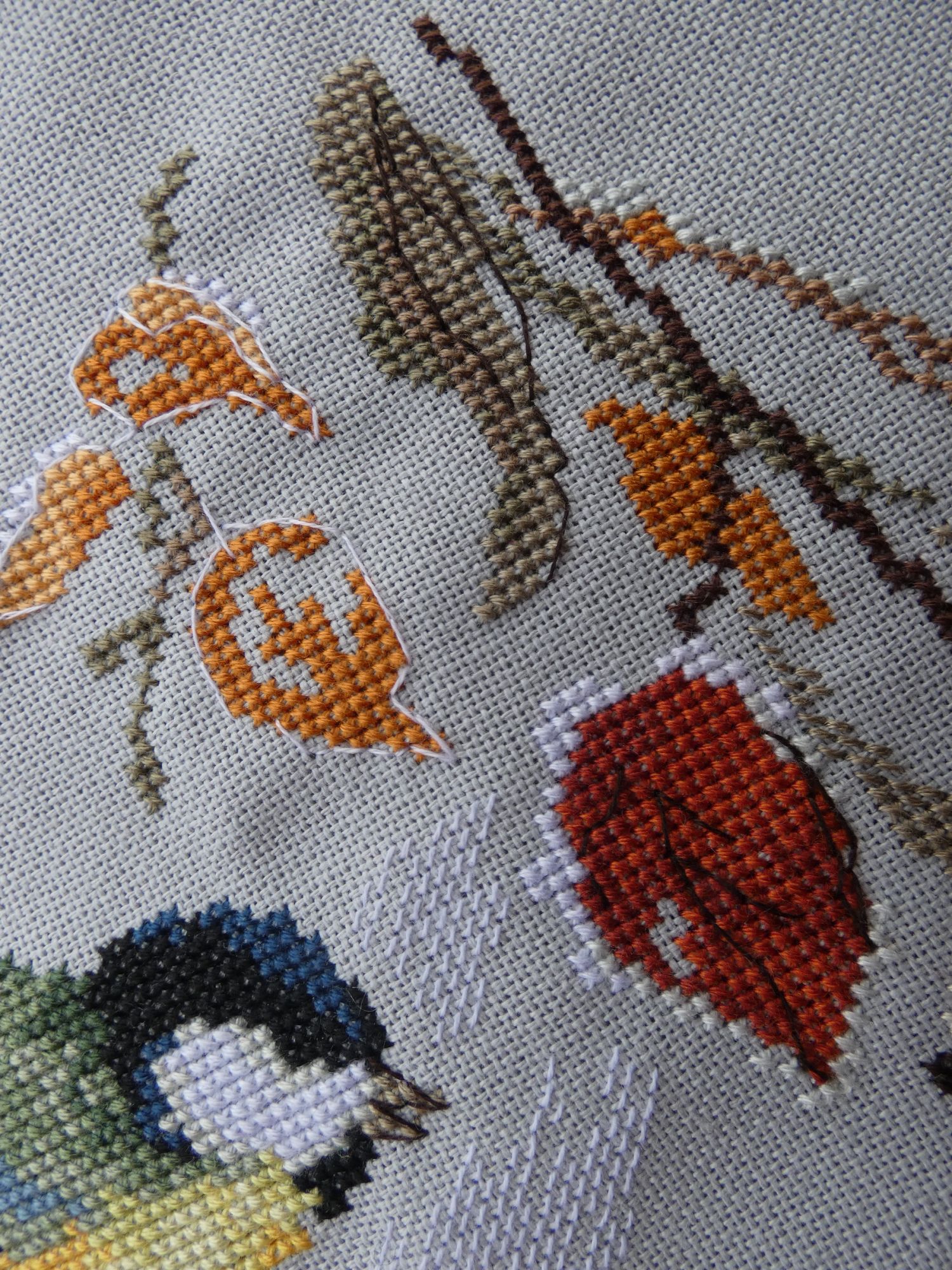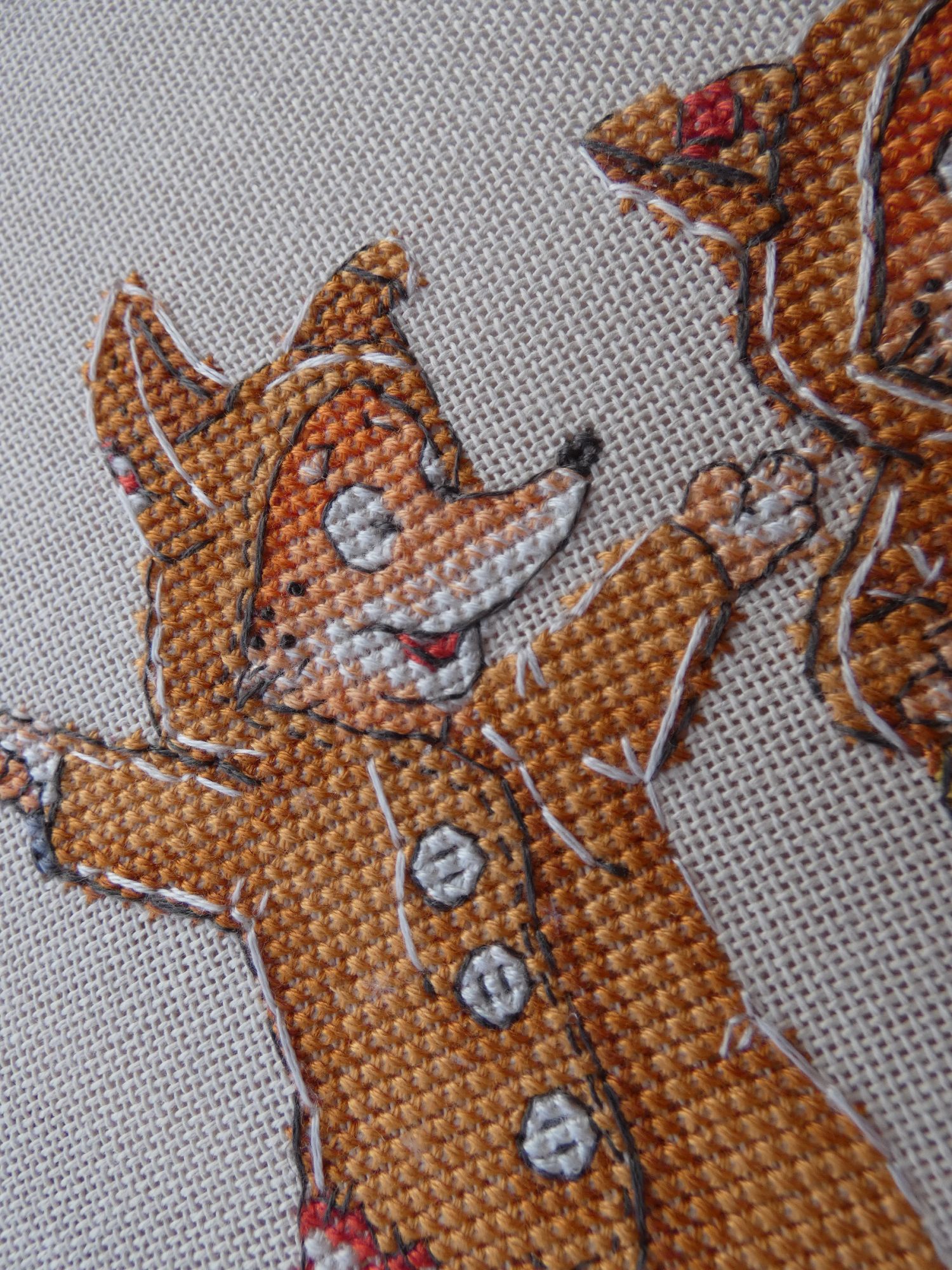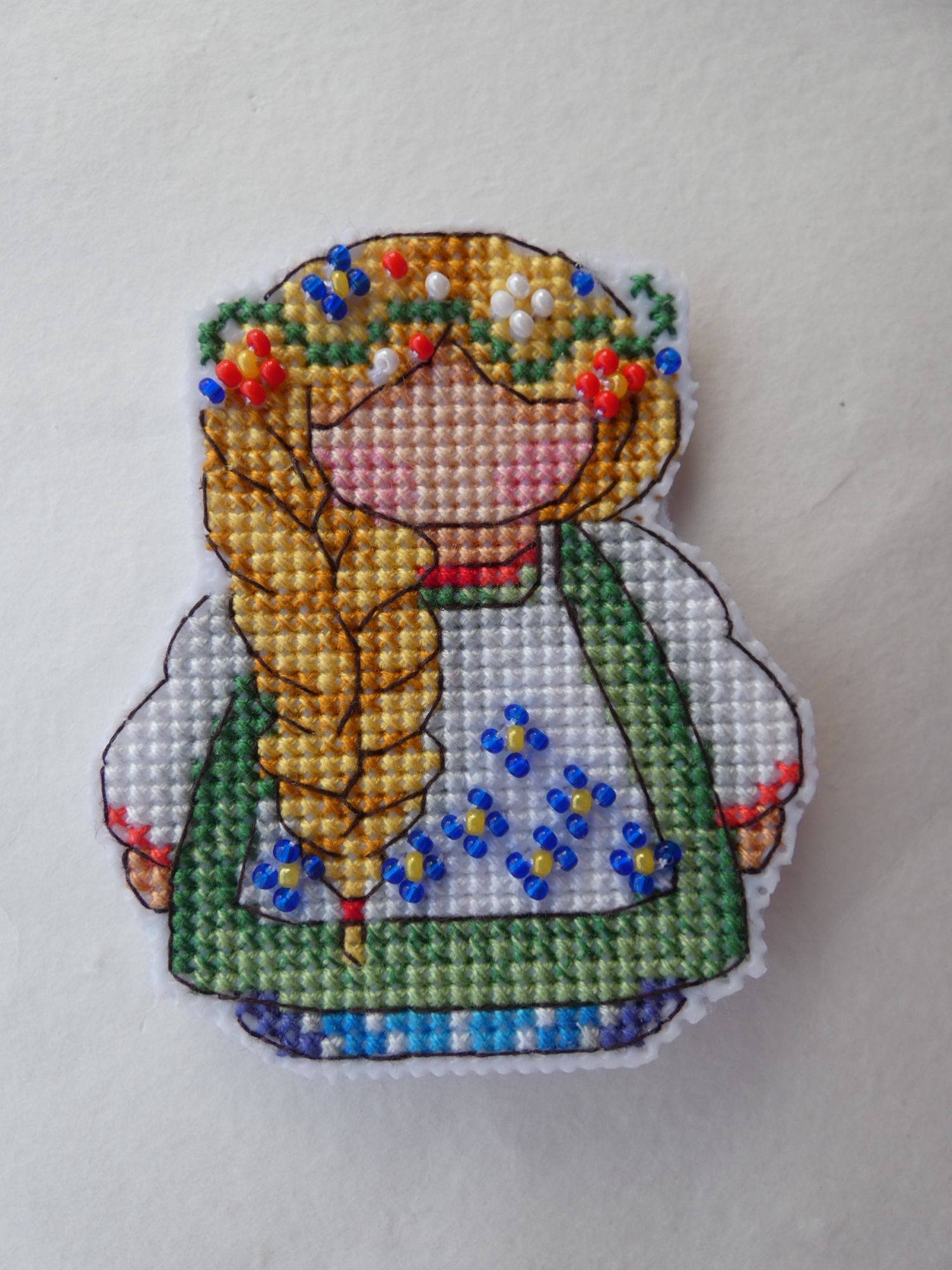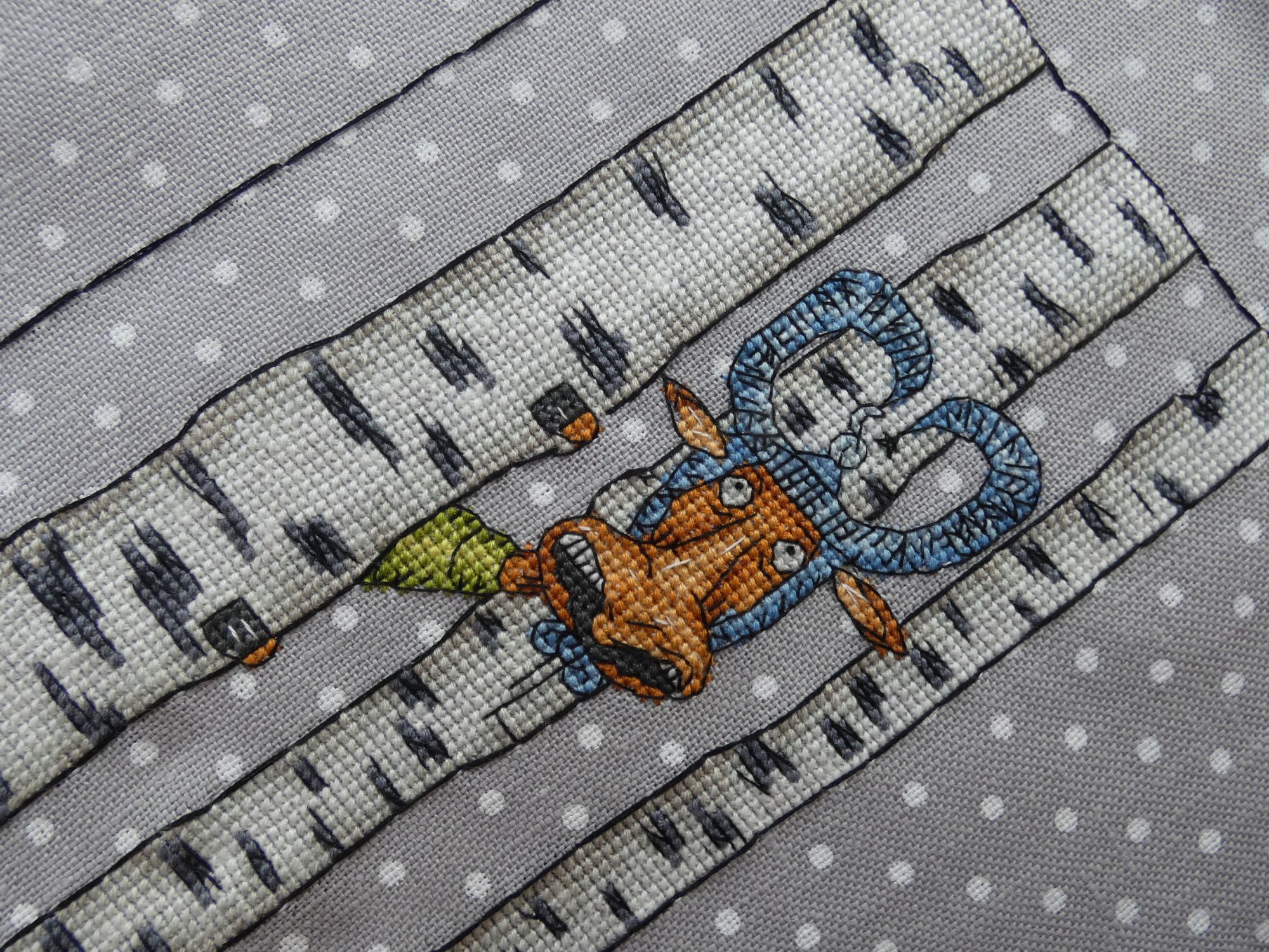 11 февраля 2021 Всем привет! Неделя выдалась спокойная. Так что почти все процессы, которые шью, получили продвижение. Весна скоро финиш! Мой любимчик внезапно закончился. Он принес мне просто массу позитива при отшиве, что в крестиковой, что в бэковой части. Сам бэк легкий. Небольшое затруднение вызвала прямая линия по пустому пространству, на льне вечно уезжает она в сторону. А сама рожица полностью счетная и такая забавная. Не зря взяла этот лен, он великолепно подошел под дизайн. Конкурс костюмов Тут просто чудо, а не процесс. Да немного трудоемок бэк, но лишь из-за двойной белой, она стремится расползаться на 2 при любом удобном случае. Все никак себя не соберу в кучку и не попробую перле, чтобы в одну ниточку. Это лишь от лени, честное слово. Надо же вставать и что-то брать. А в остальном очень оптимистичная картинка. Ну и остался самый мимими с кучей розового и фиолетового. Потираю ручки в предвкушении. И думаю, может второму лисенку пуговки настоящие пришить, как думаете? Первый снег Тут тоже никаких сложностей, даже бэковых. Процесс, когда надо отключить голову и отдохнуть. Единственное что в нем немного не так - это отличие от обложки. Довольно сильное. Обложка прилично высветлена, а здесь более насыщенные цвета получаются. Верхние листики по превью скорее желтые, а не оранжевые. Да и нижний лист менее бордо. Пока не критично, но контрастнее, чем мне хотелось бы. Впрочем, буду смотреть на готовую уже, возможно уравновесятся. Овечки и клубочки Мысль вышить овечку фрузиками пришла внезапно. Вспомнился мне мой баран от Ирины Наниашвили с 1000 фрузелей, и я решила, а чего бы нет. Только взяла шерсть из набора Риолис, да иголку потолще. Получилось очень клево. Крутилось легко, да и забавная вышла бяшка по итогу. Как будто ей костюмчик чуток маловат. Русские обереги старт! МП Студия Р-338 Как-то сидела я, смотрела киношку и захотелось мне чего-то маленького и простого. Ну и вот. Взяла обережки от МП, не выбирала особенно, просто первую схему вытащила и стала шить. В отличии от шарика с рябиной, это меня совсем не раздражало, скорее нравилось даже. Столкнулась с известной ошибкой в наборах МП, где они вкладывают светлый серый вместо более темного. Из-за этого теряется переход от белого к серому, и совсем исчезает необходимость бленда из них. В итоге распустила и взяла более темный из другого набора МП. Стало лучше, но имхо надо бы еще темнее, но где ж их взять? ))) Ну и захотелось мне бисер использовать из остатков, чтобы было пообъемнее и веселее. Вроде бы даже и ничего так получилась куколка. На этом прощаюсь до следующей недели. Всем здоровья и вышивача. maui, TheSunniestDay, titania и 55 других сказали спасибо Поделиться сообщением Ссылка на сообщение